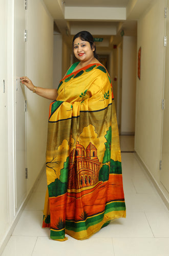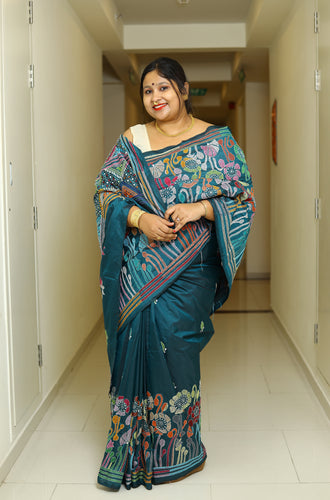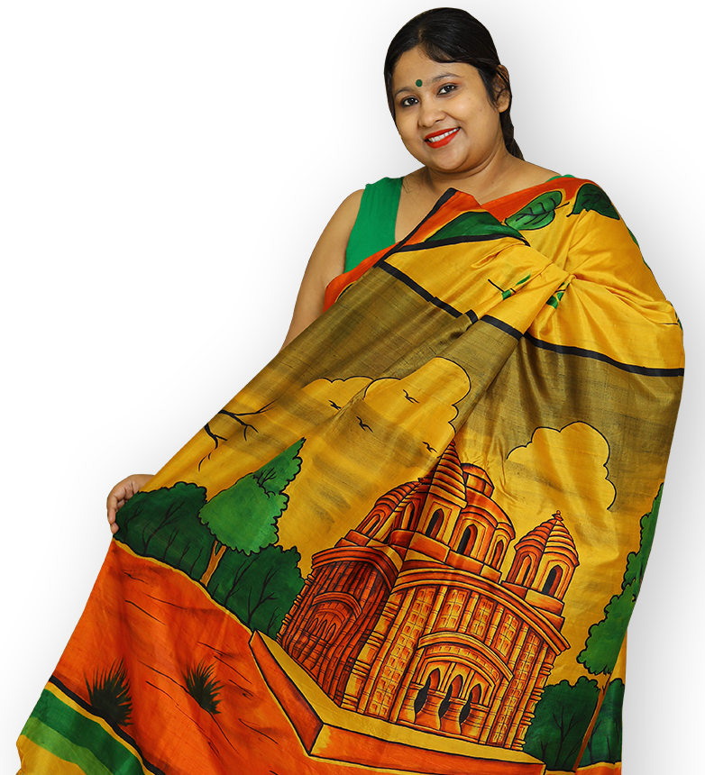 A vibrant fusion of tradition and art - hand-painted luxurious silk canvas