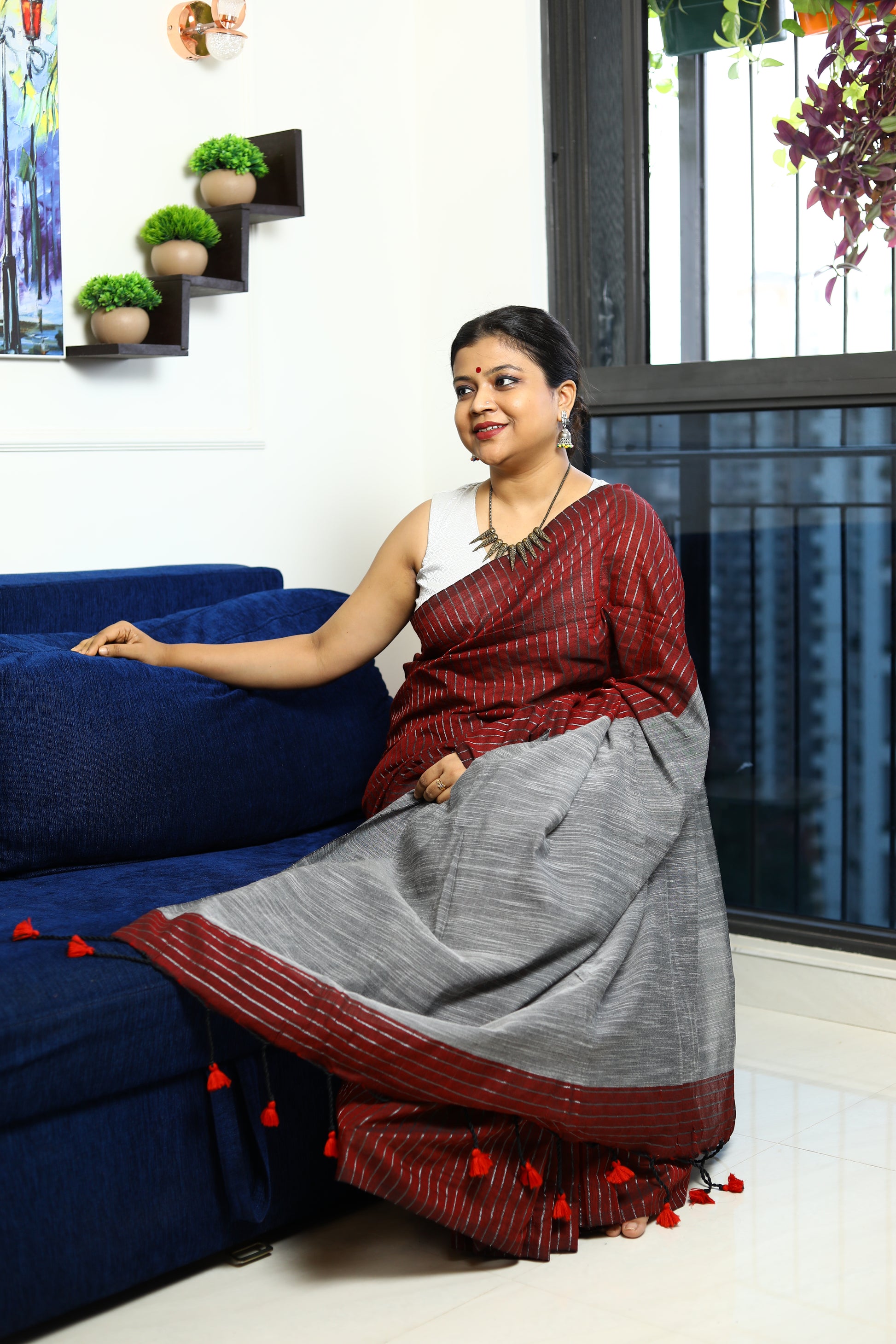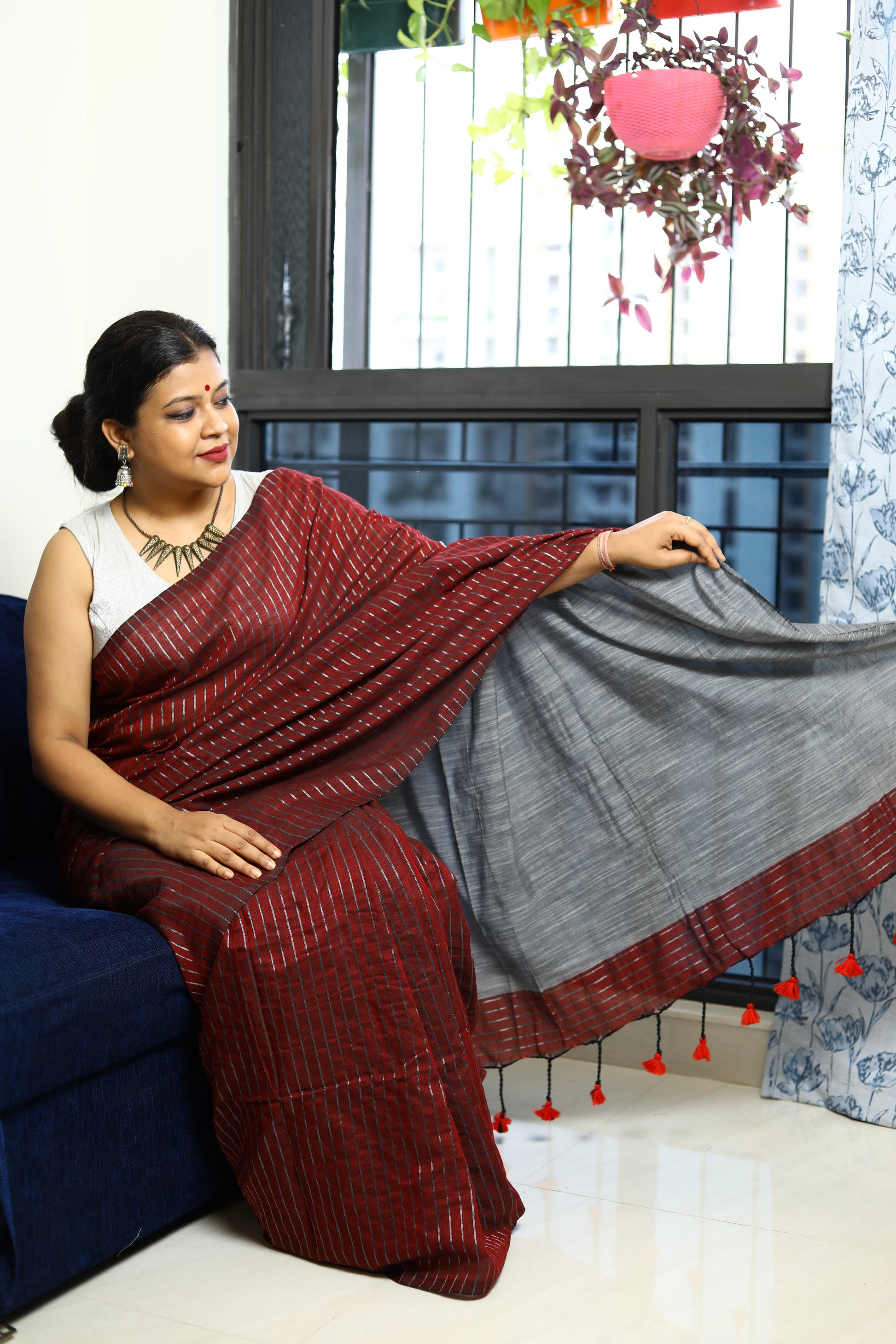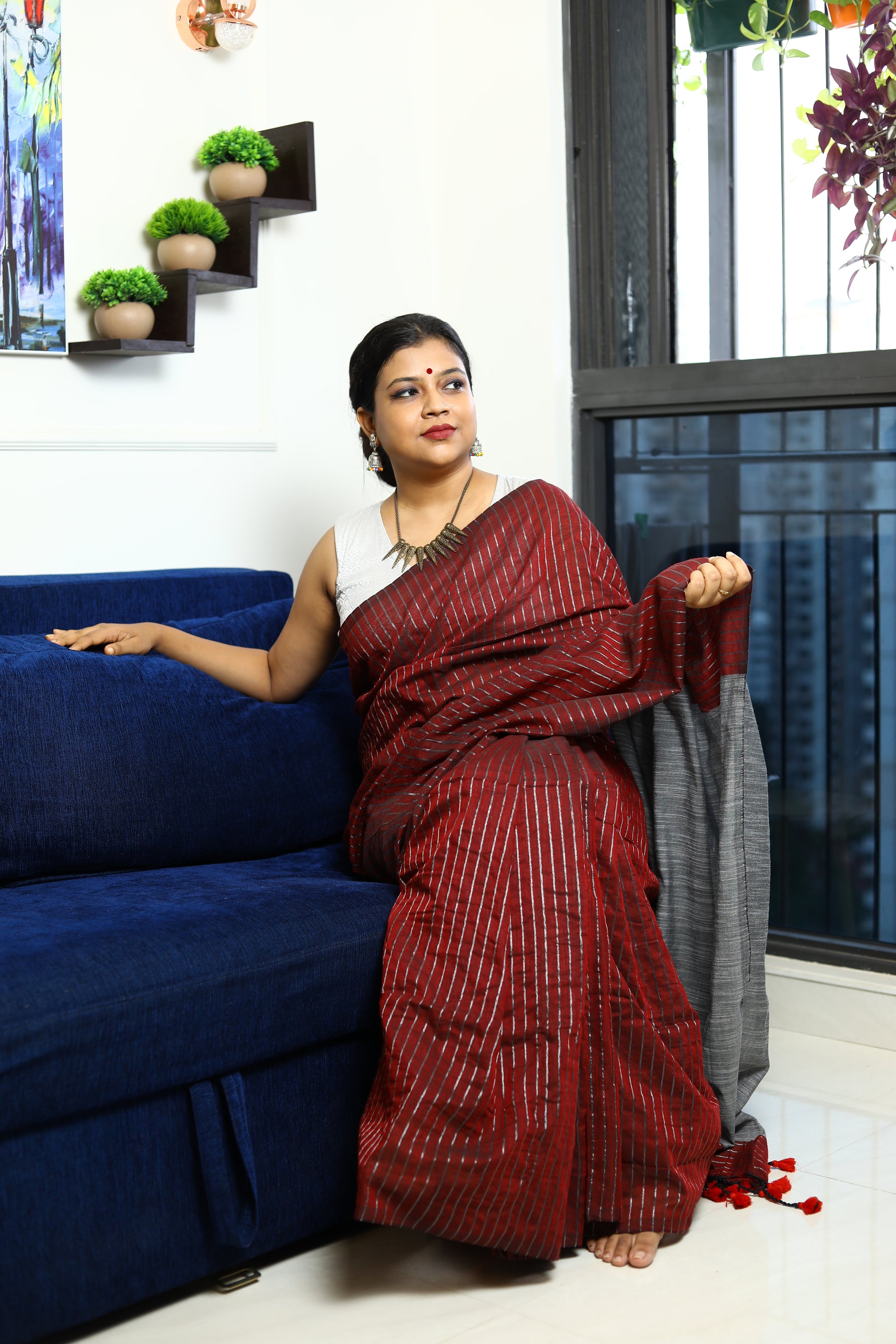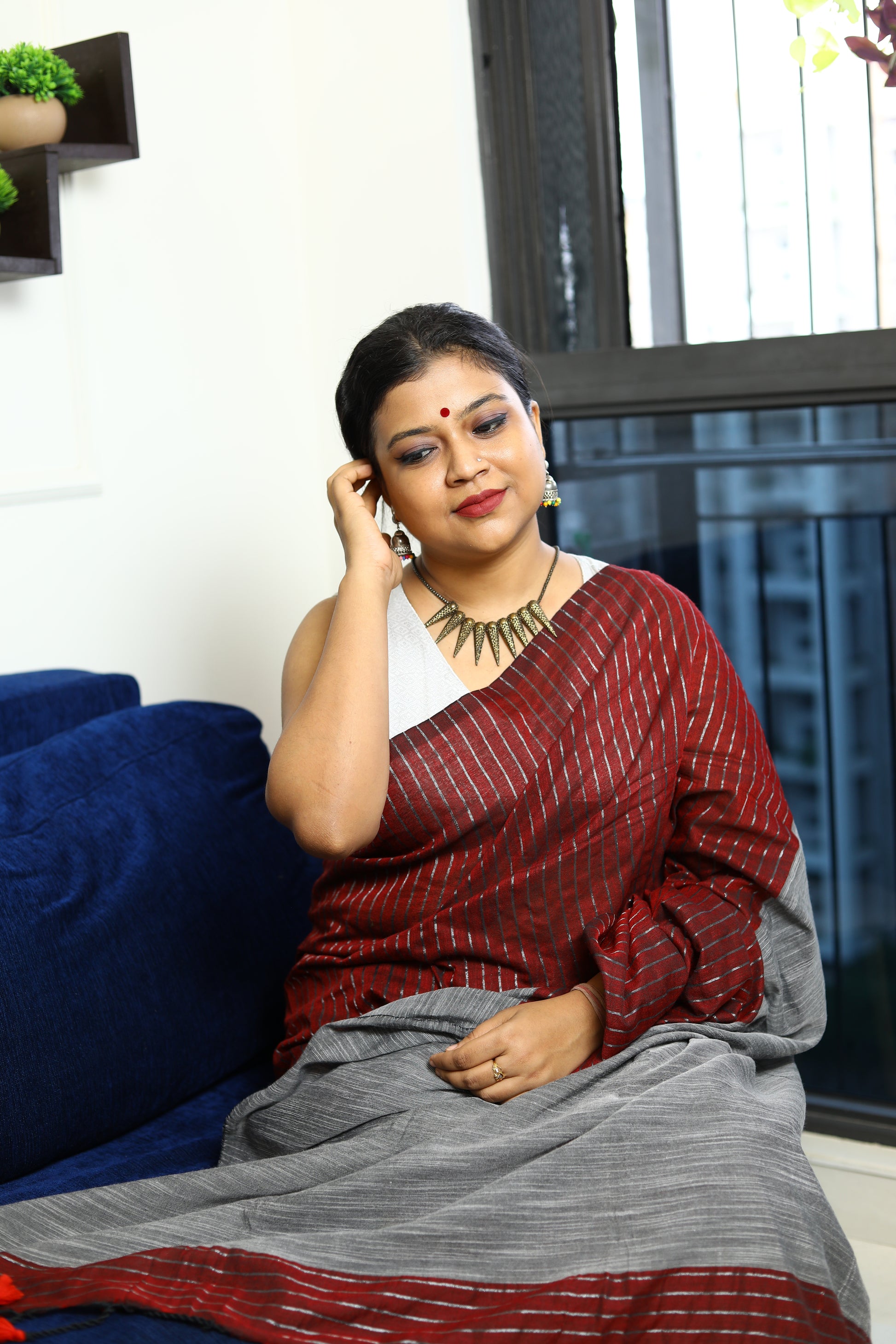 Pair it with a tailored blouse for a polished look or a chic tunic for a more relaxed vibe. Choose the Khadi Cotton Handloom Saree to make a sustainable fashion statement while enjoying everyday elegance.
