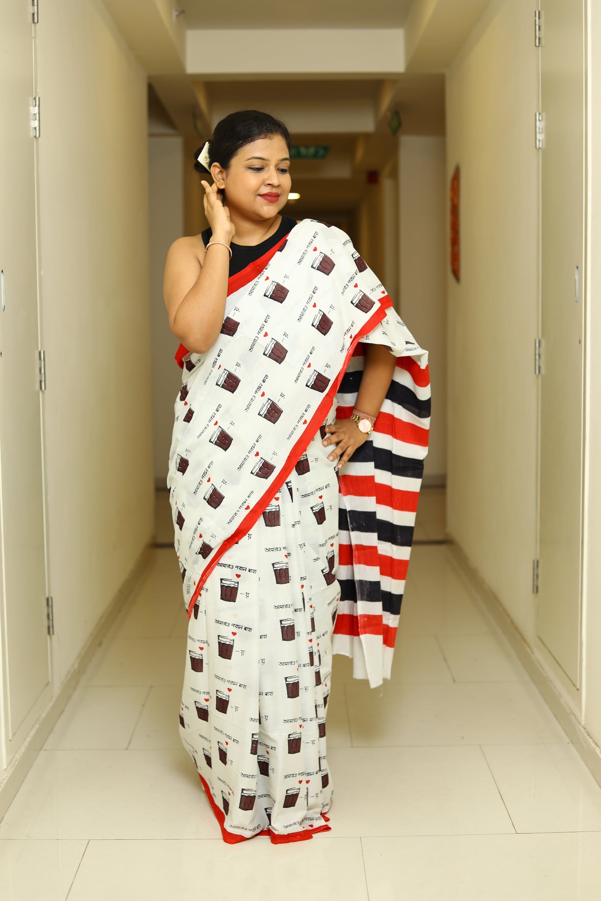 Details - Dabu Printed Mul Cotton Saree