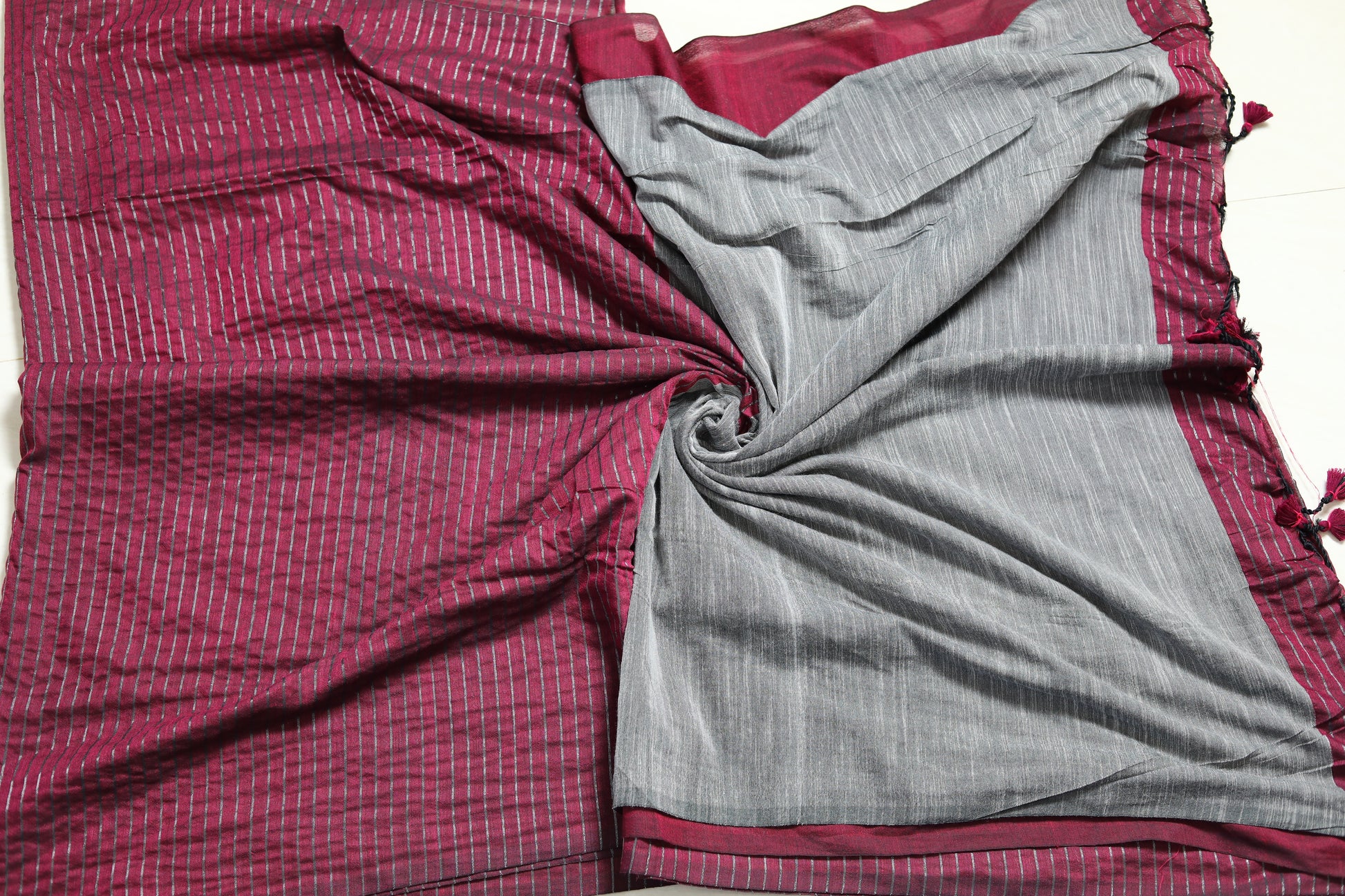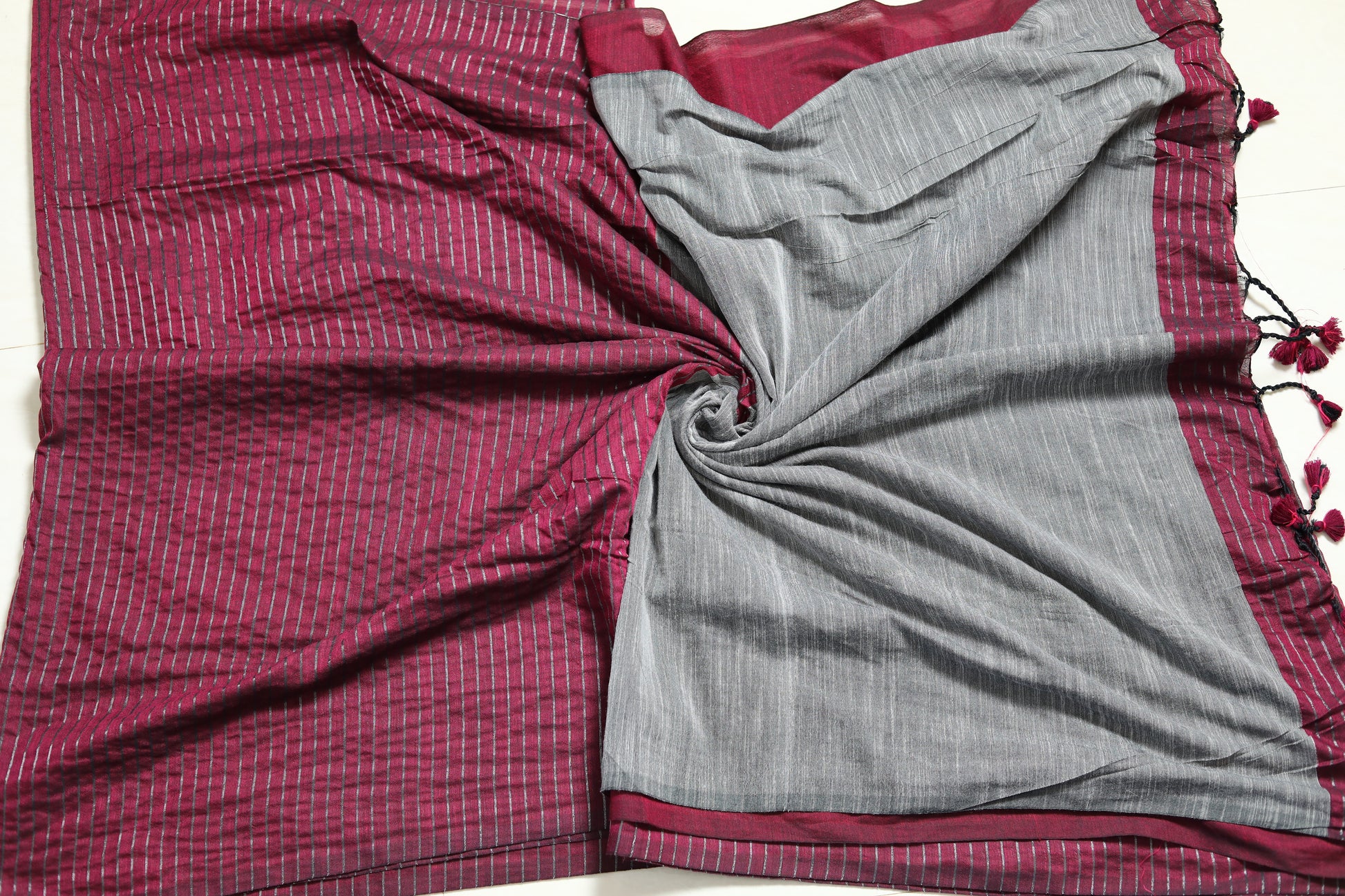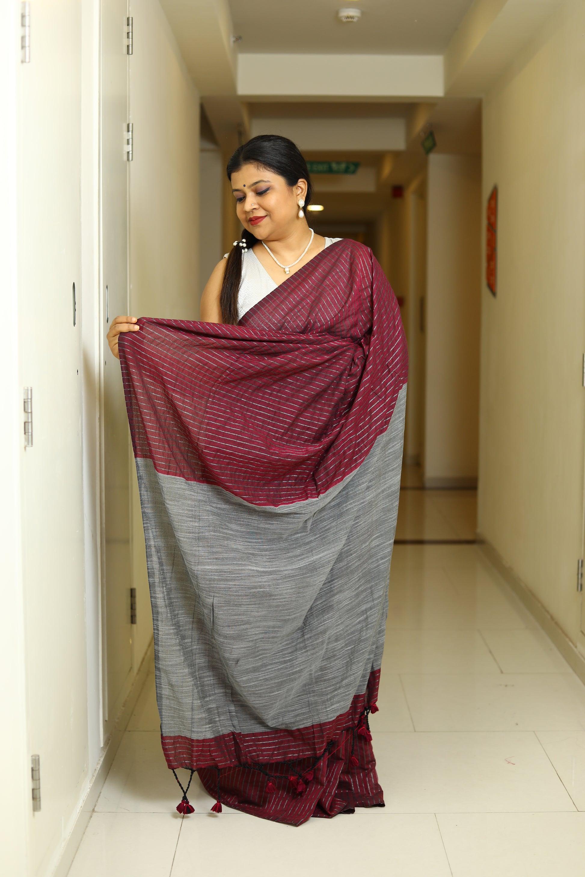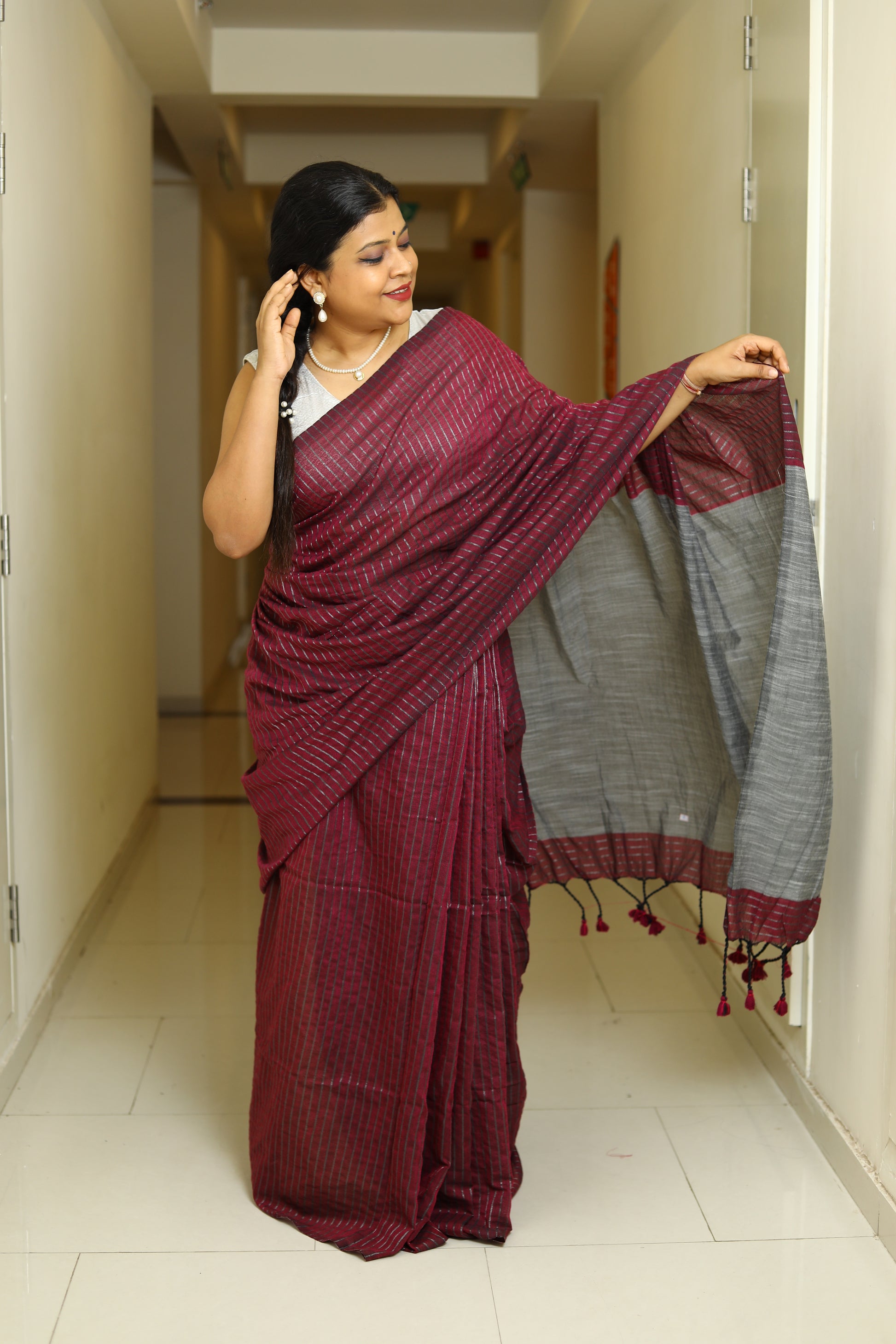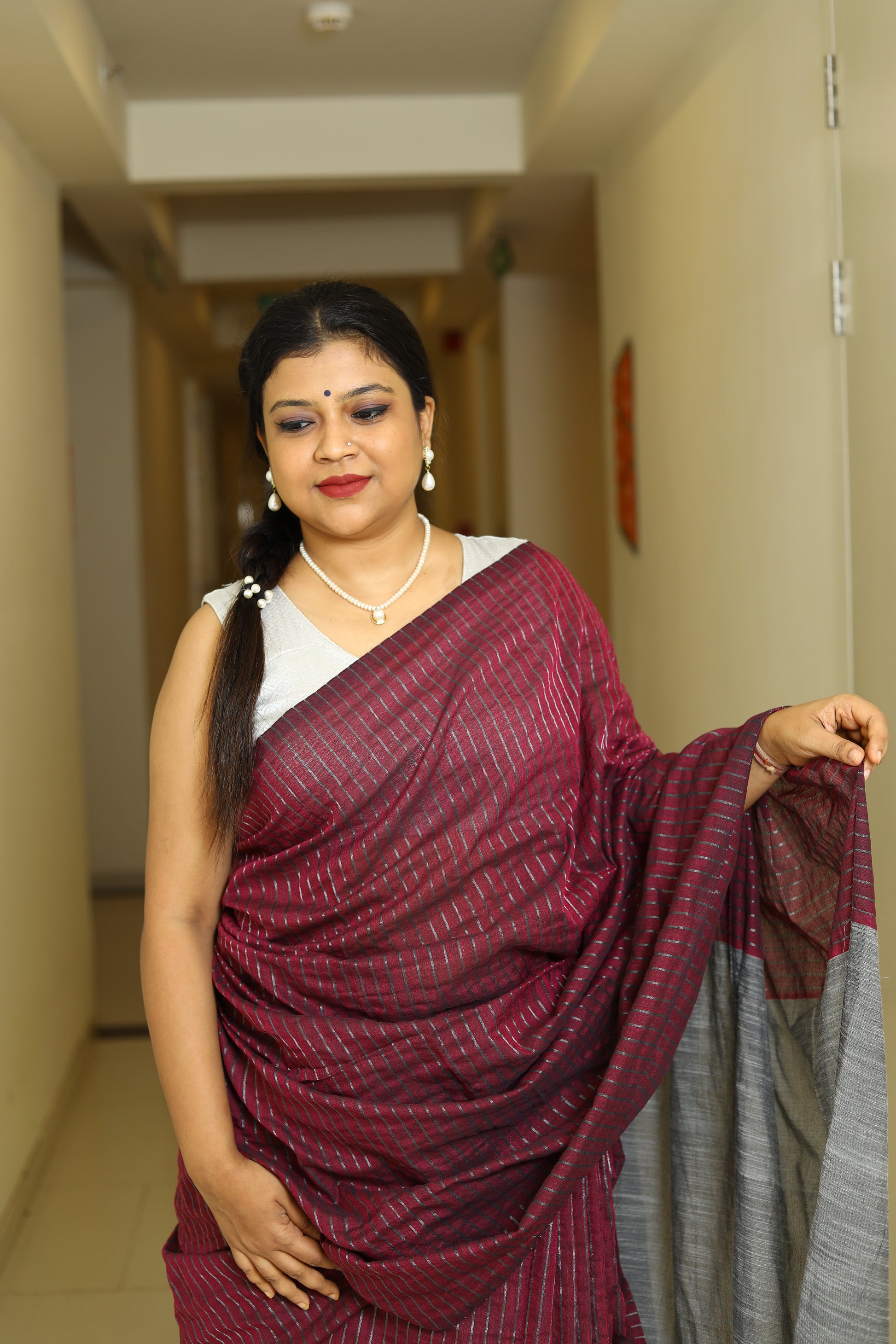 Pair it with a tailored blouse for a polished look or a chic tunic for a more relaxed vibe. Choose the Khadi Cotton Handloom Saree to make a sustainable fashion statement while enjoying everyday elegance.