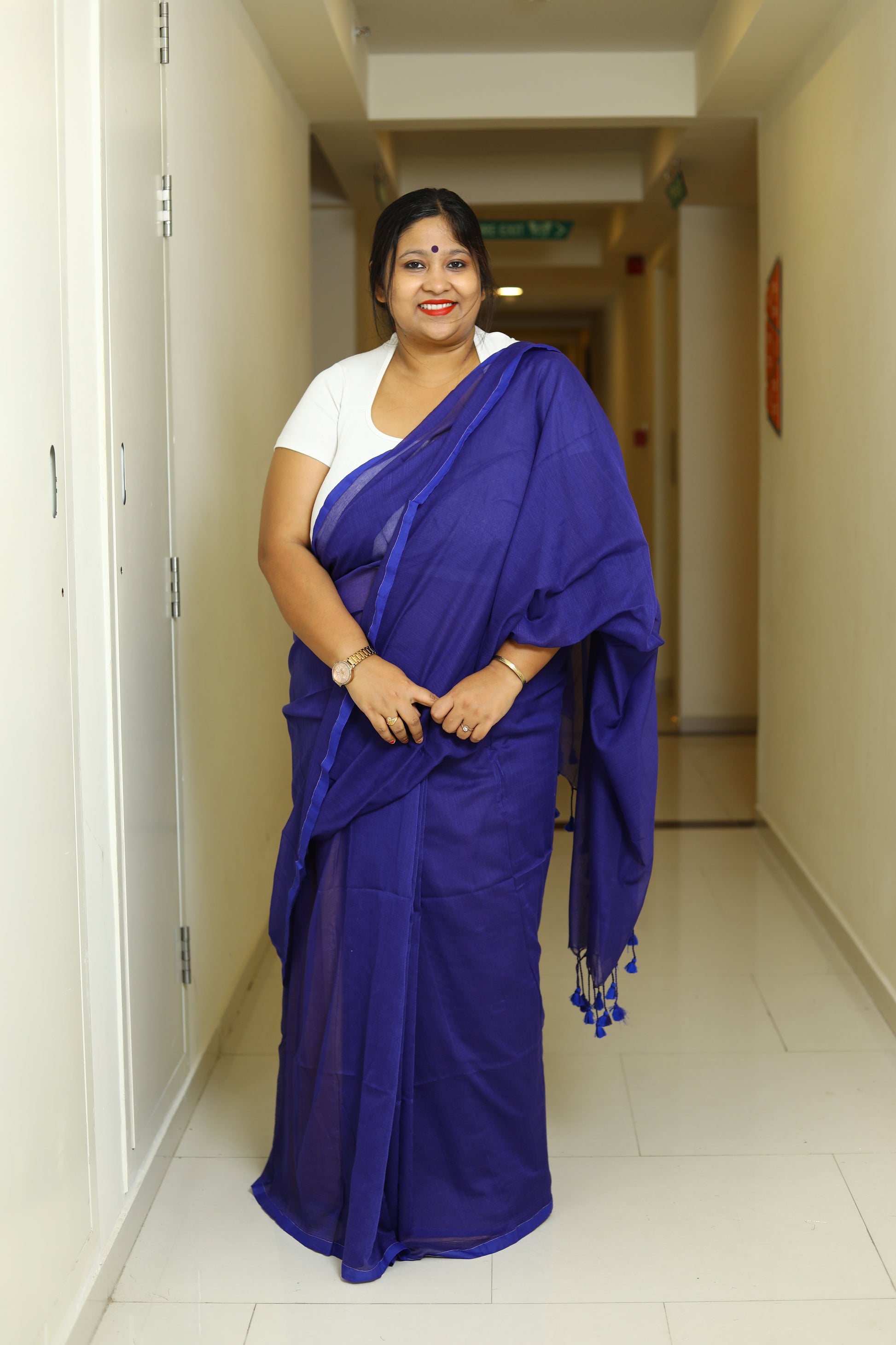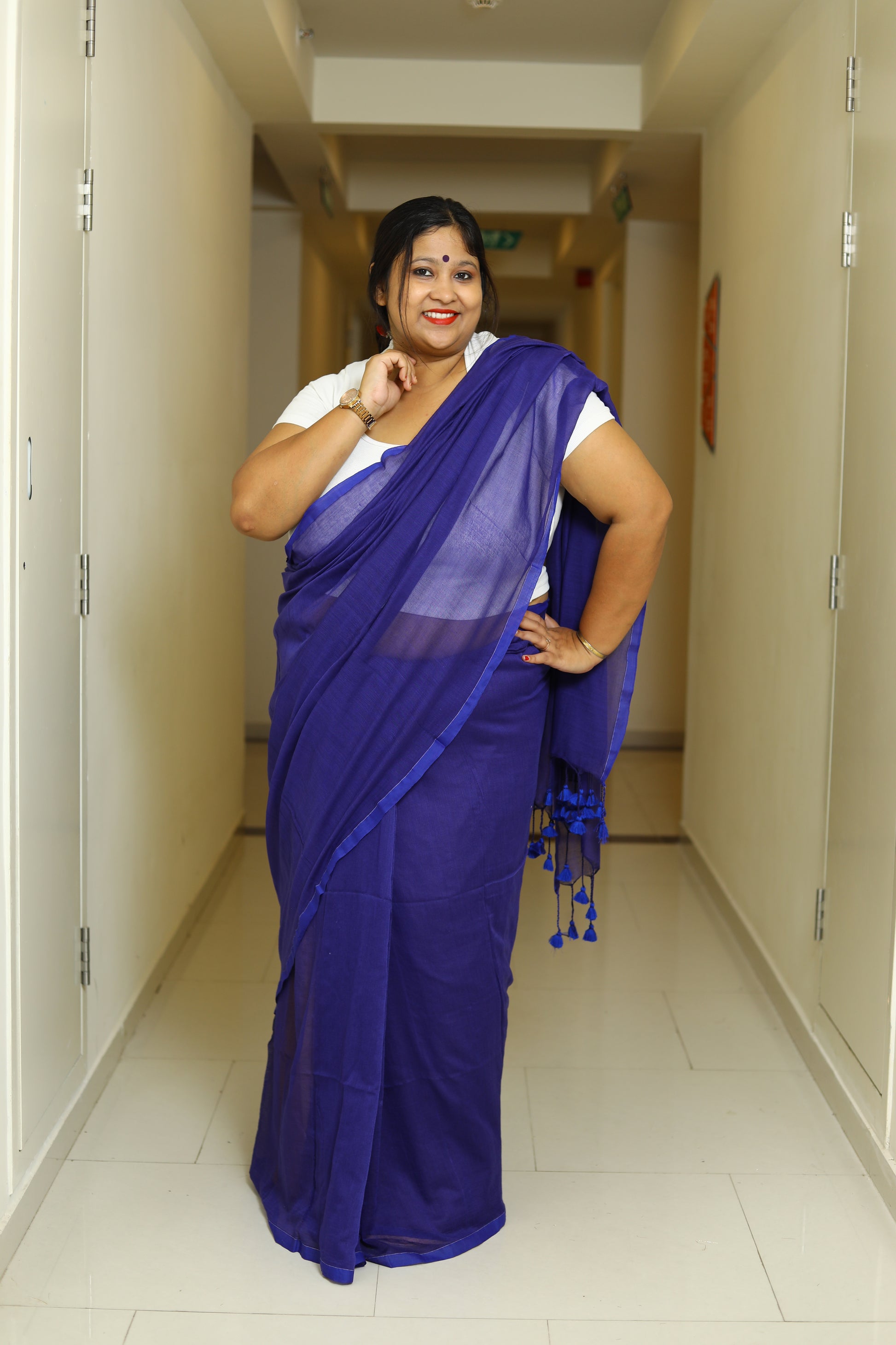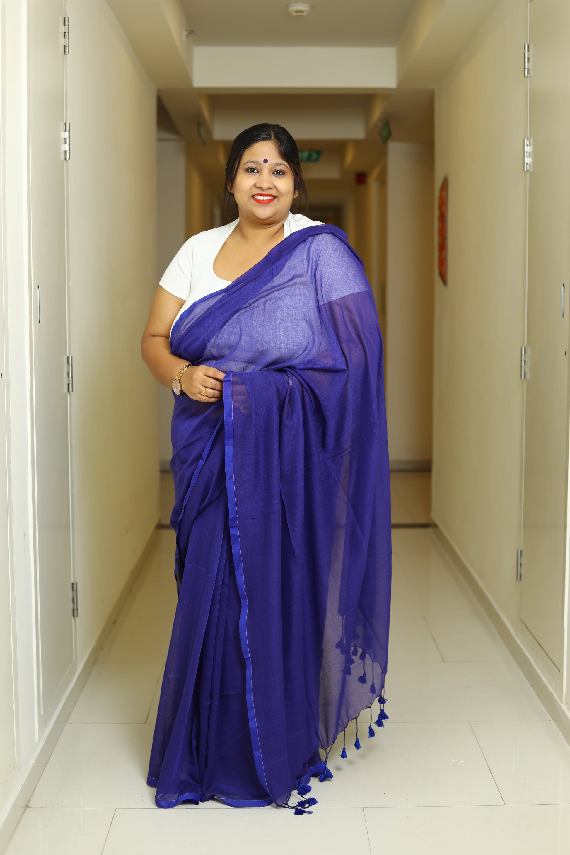 Fabric – Handloomed Mul cotton saree with a thread count of 100