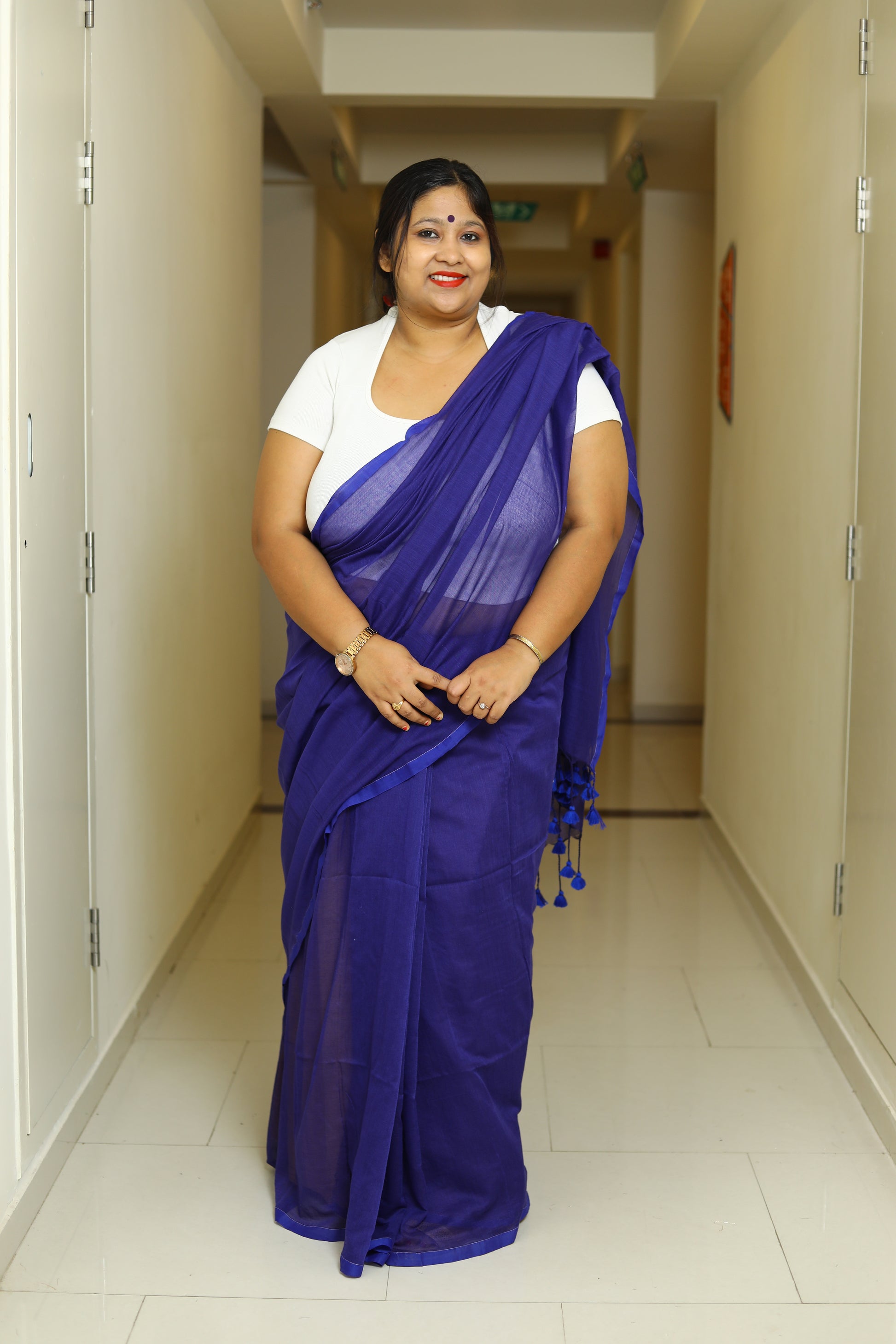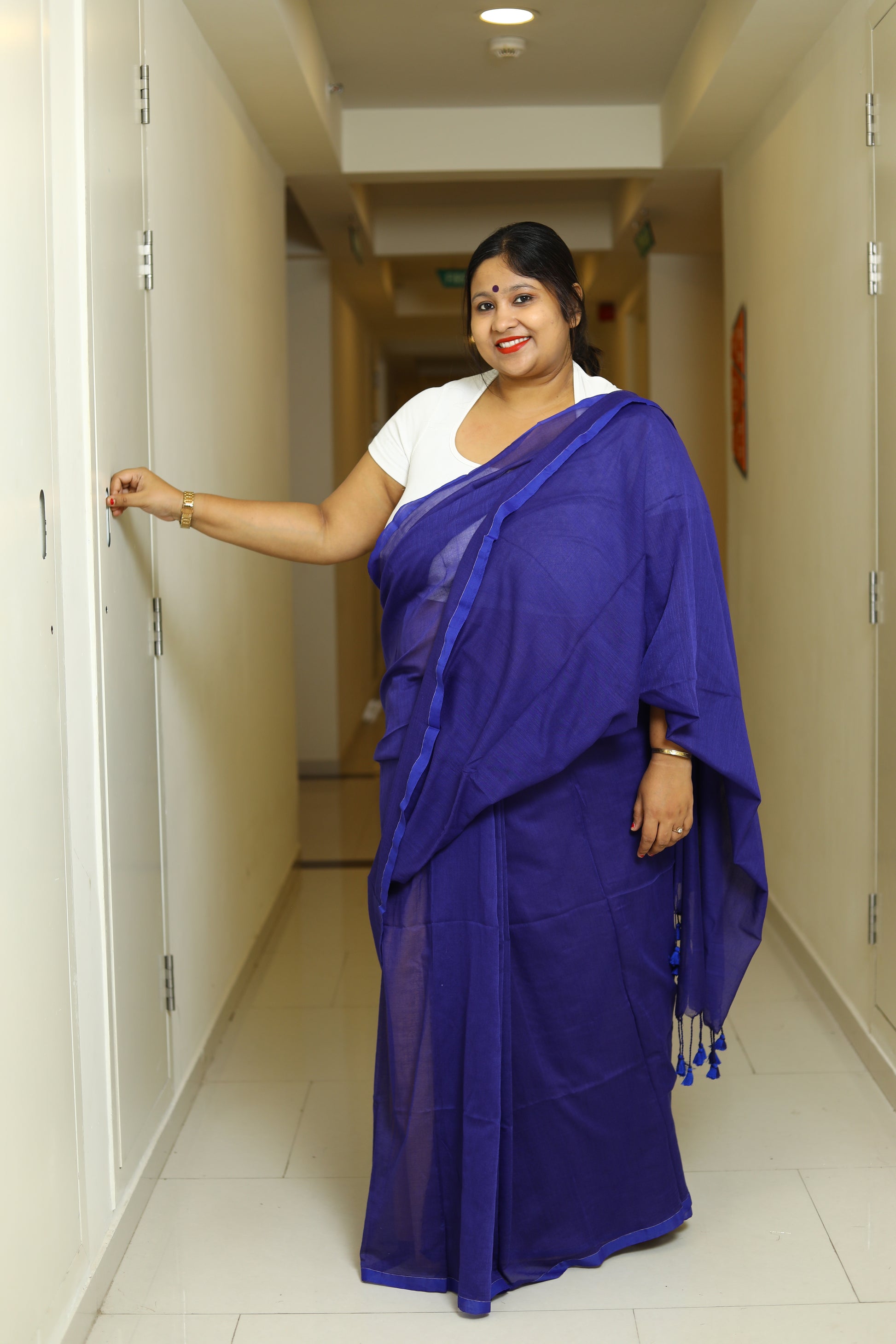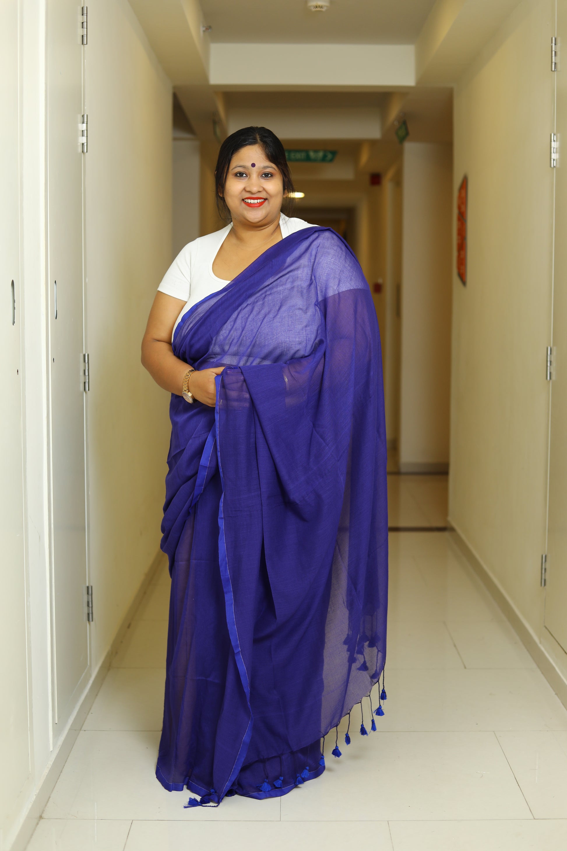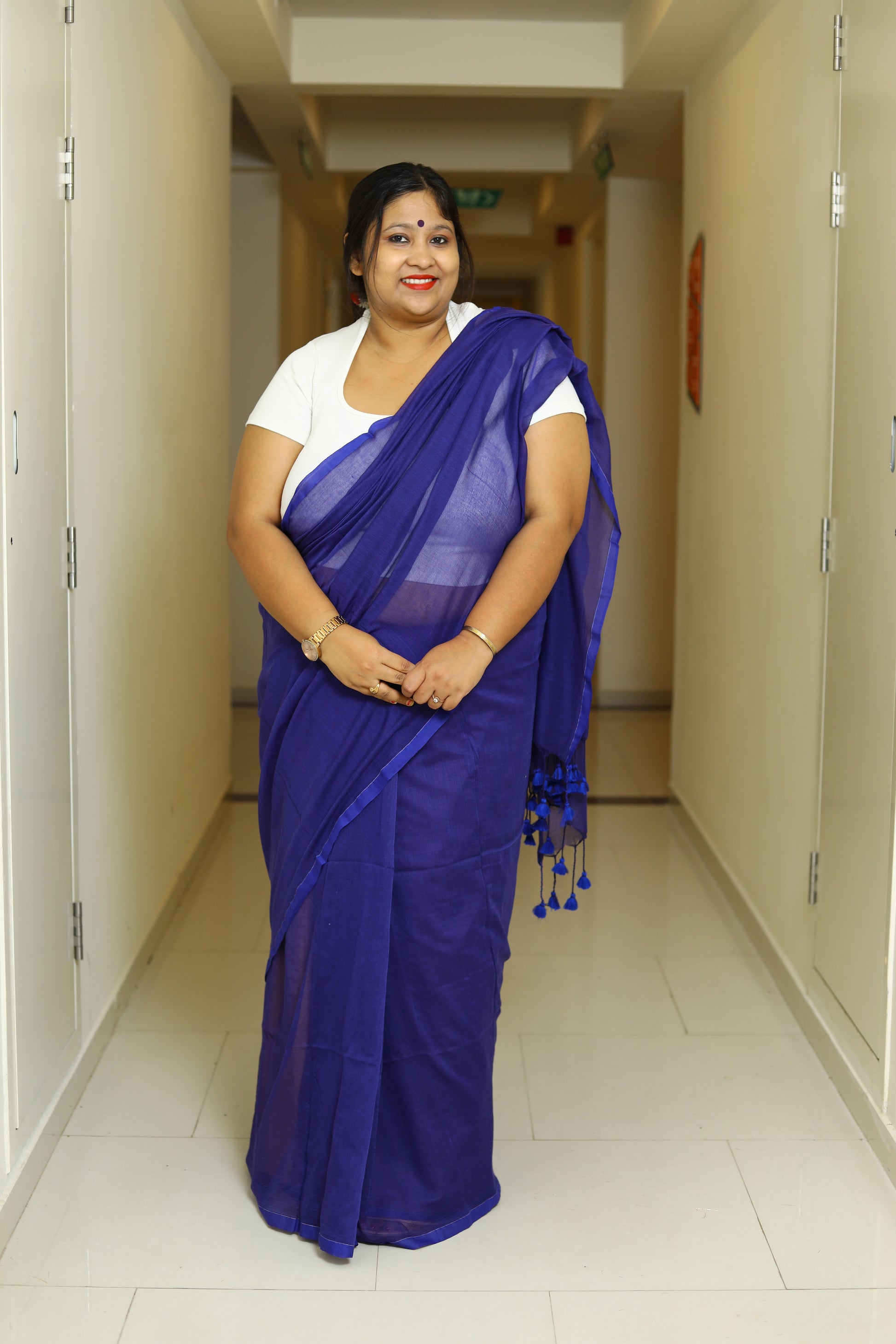 Fabric – Handloomed Mul cotton saree with a thread count of 100