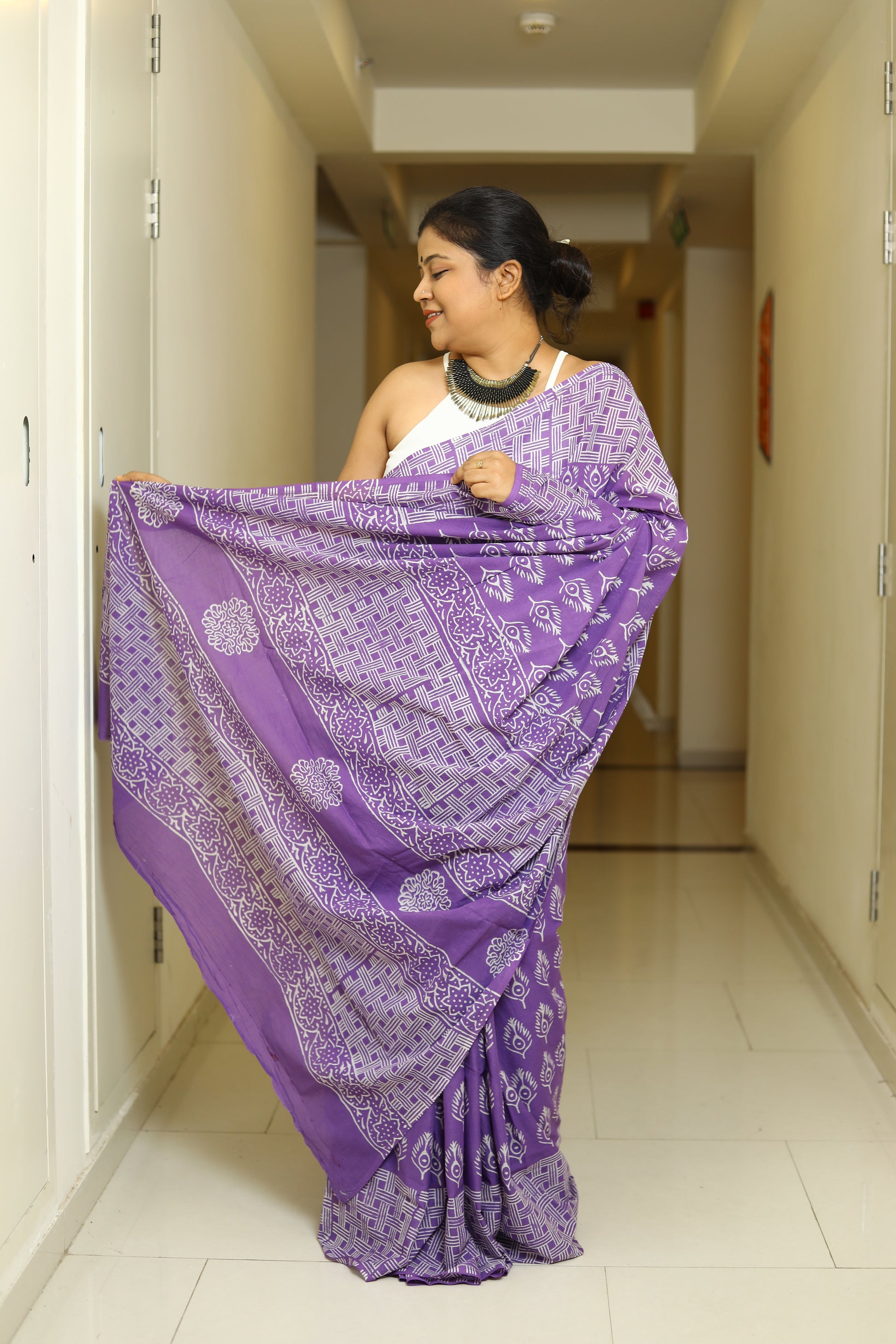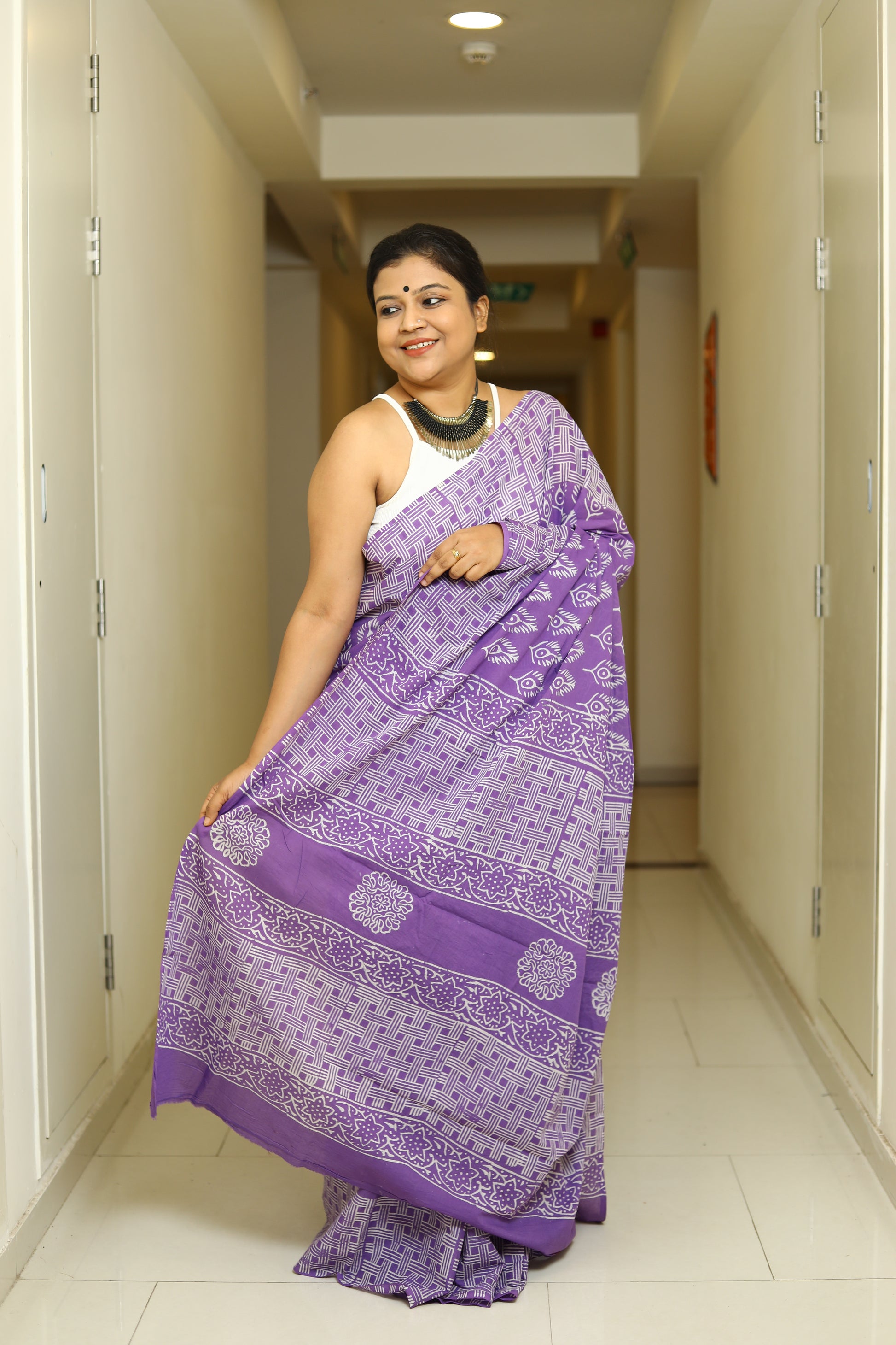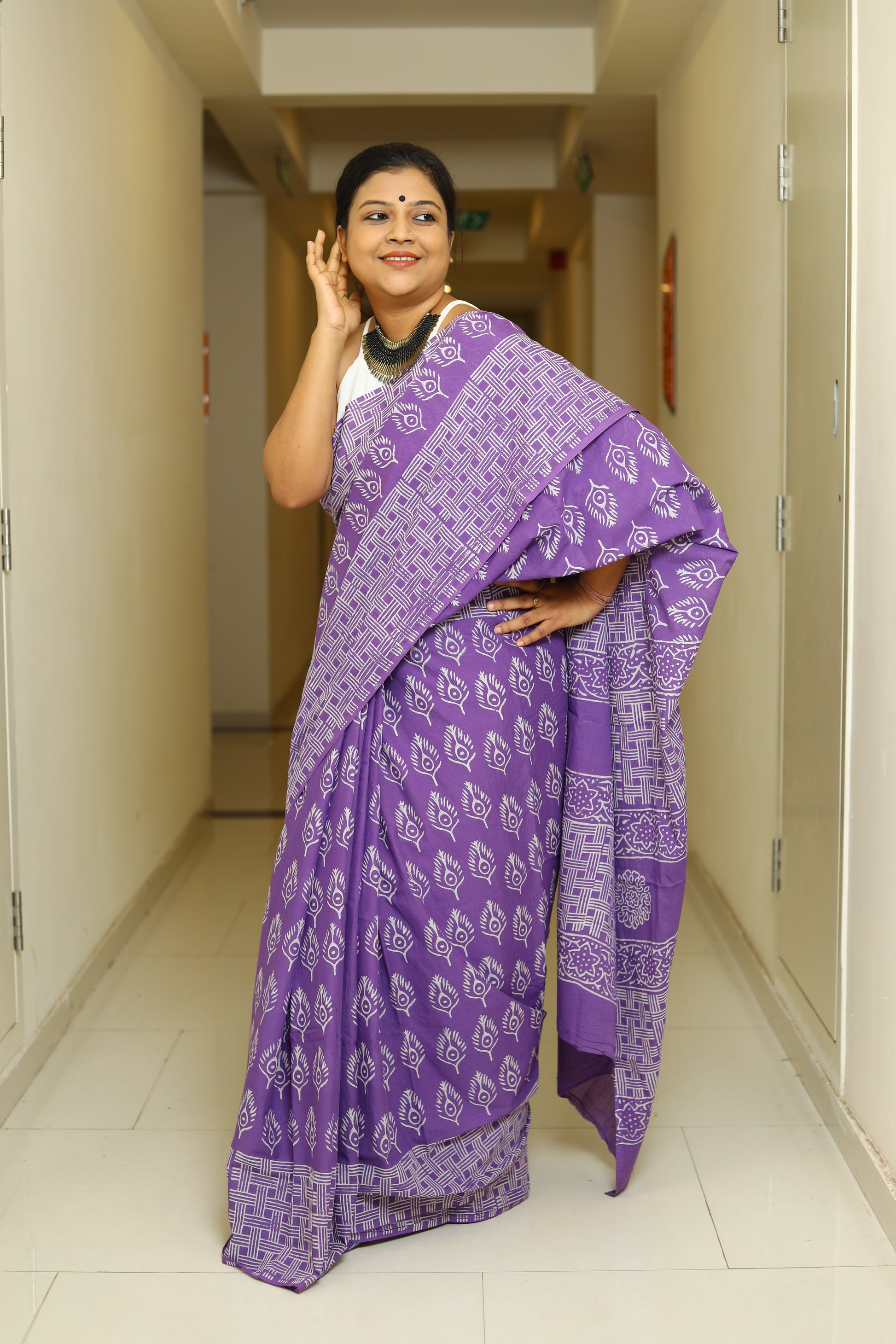 Details - Dabu Printed Mul Cotton Saree
