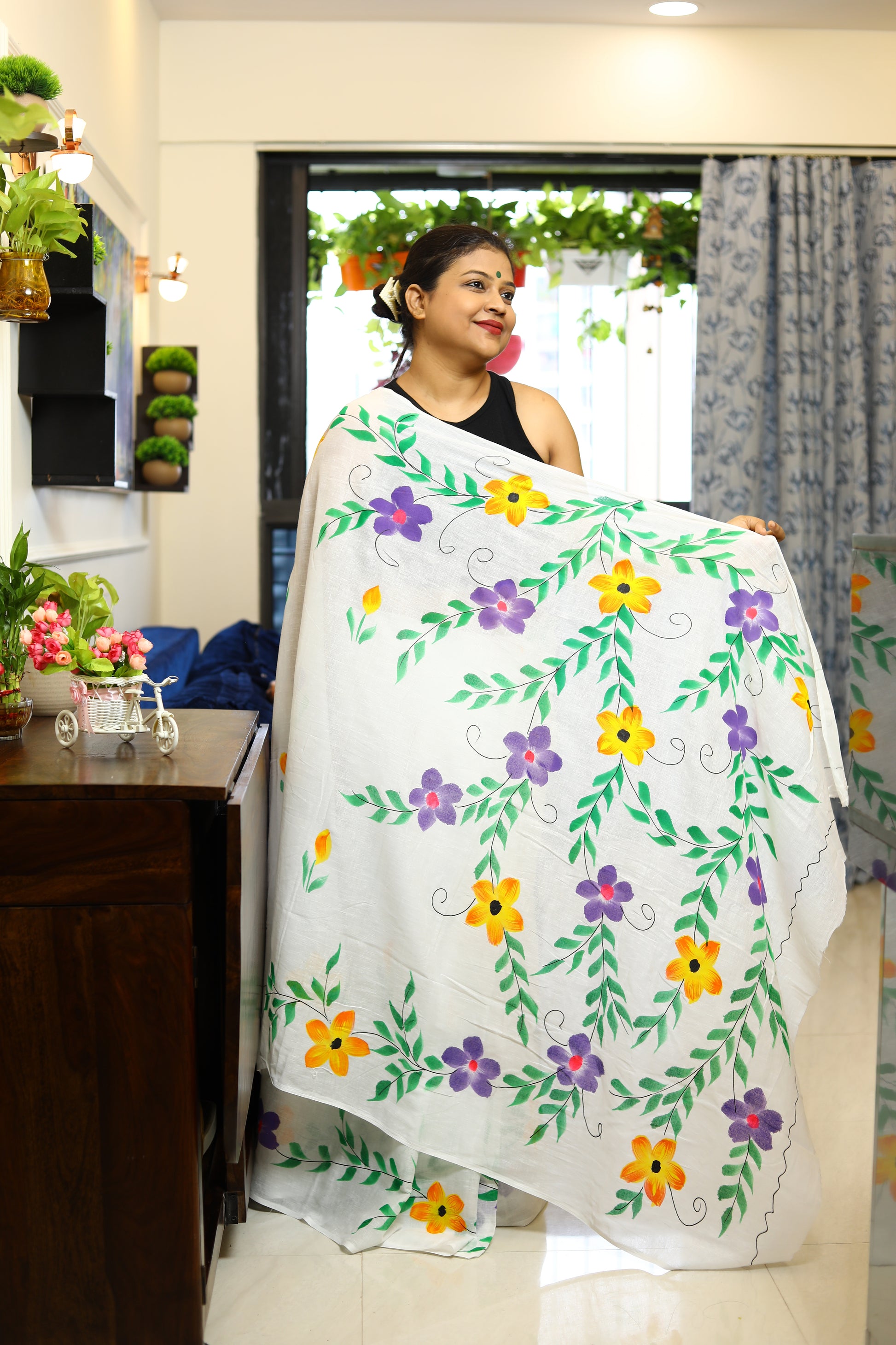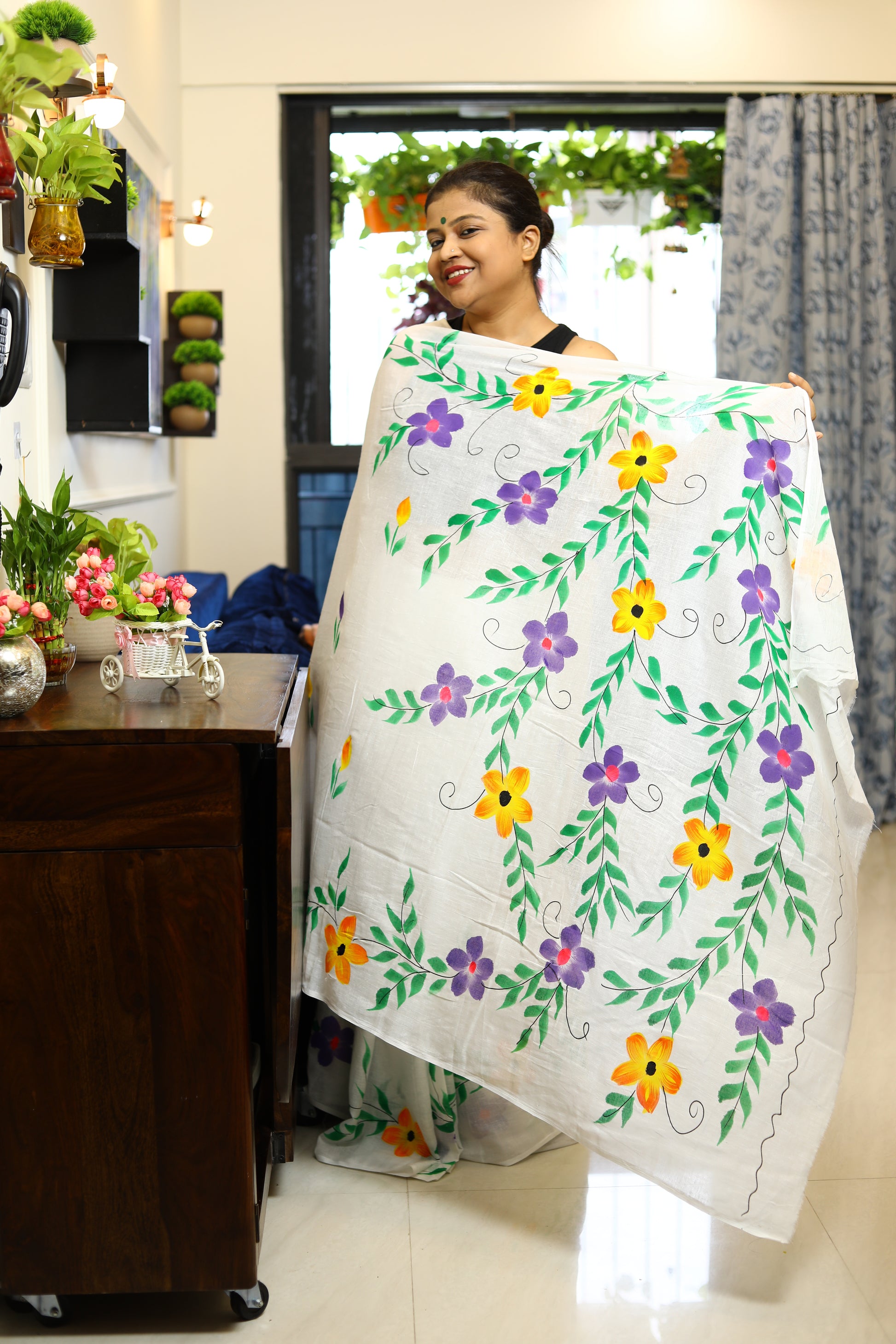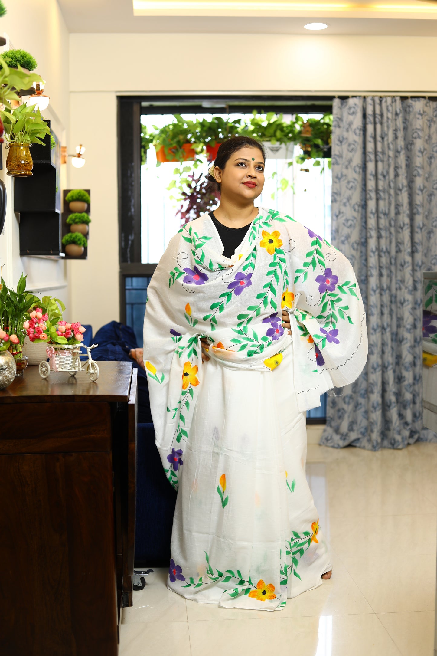 Discover the charm of our floral painted mul cotton sarees, designed for the modern woman. With their vibrant floral motifs and soft, breathable fabric, these sarees offer exceptional comfort and style for everyday wear. Lightweight and budget-friendly, they make it easy to embrace traditional elegance without compromising on ease. Whether you're heading to work, running errands, or enjoying a casual outing, our floral sarees are the perfect choice for effortless sophistication. Elevate your daily wardrobe with the beauty of nature!