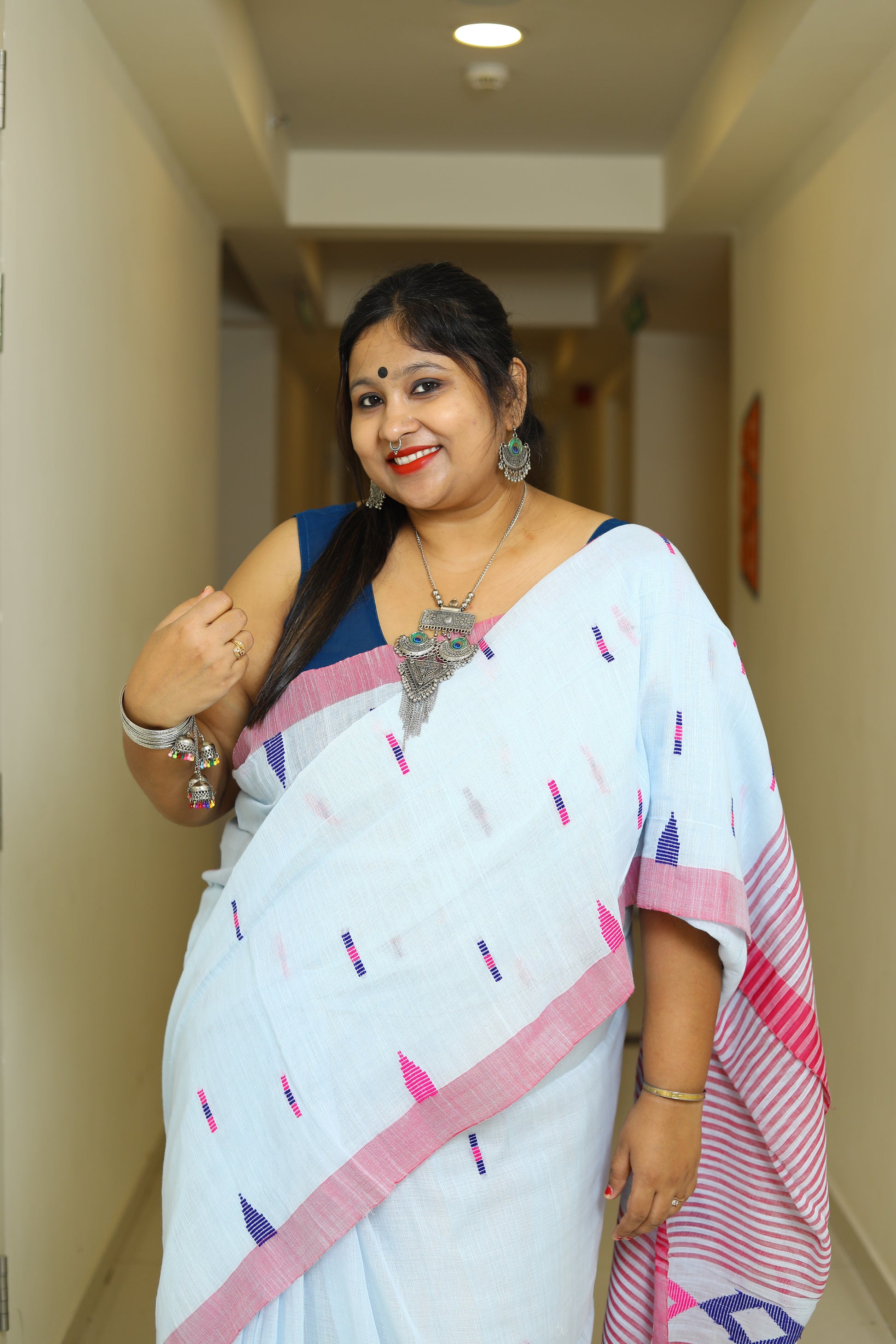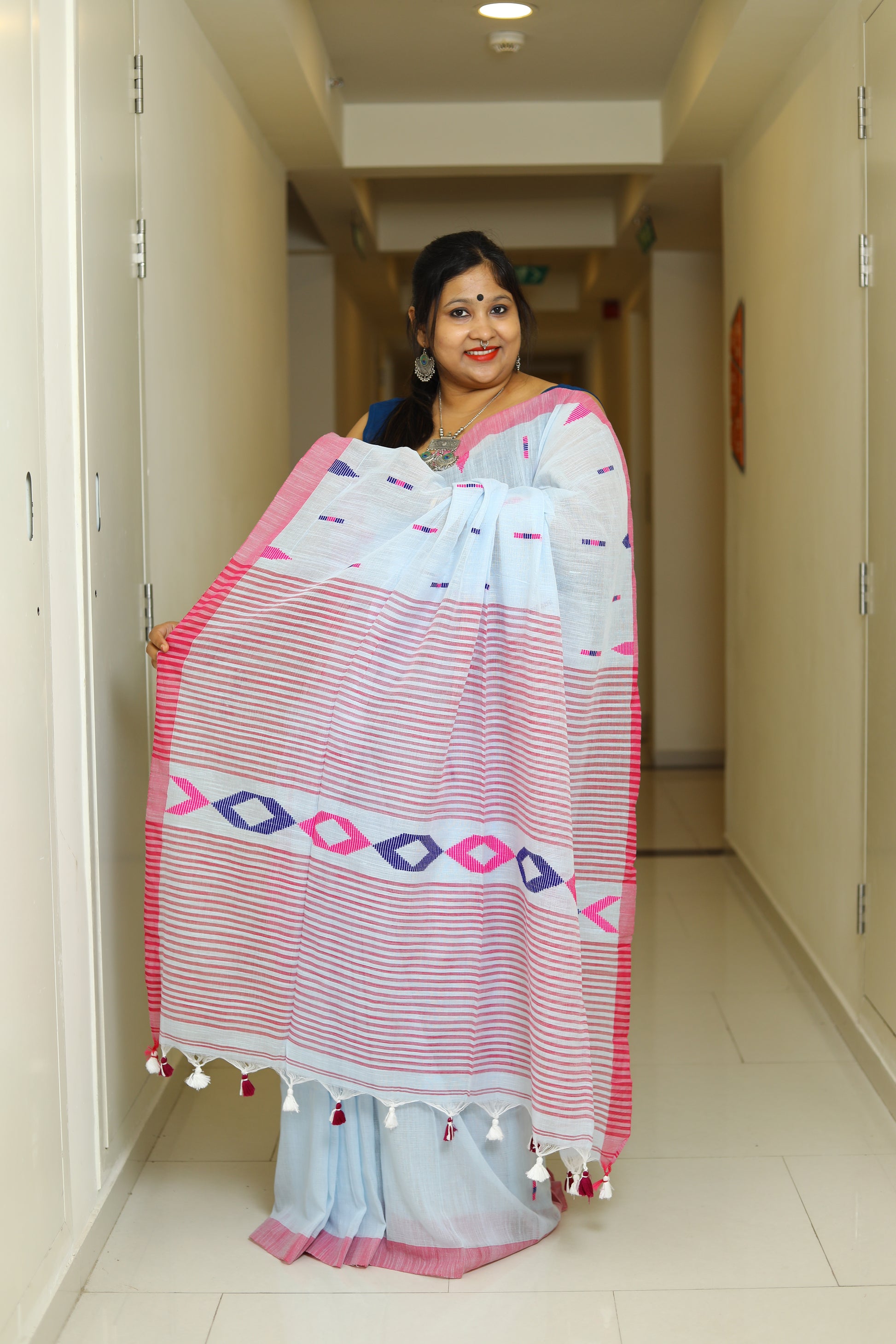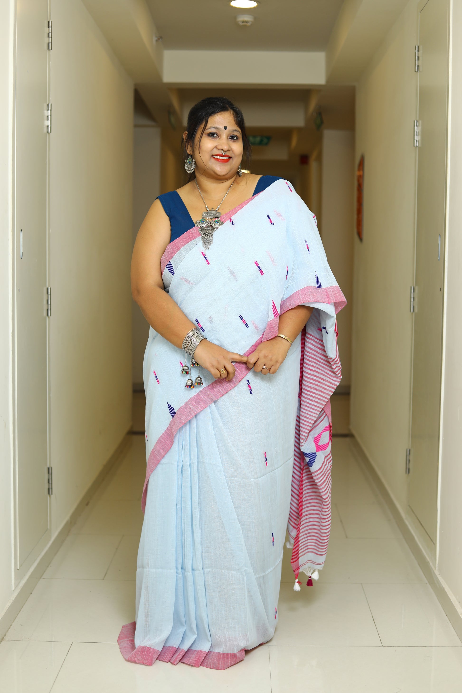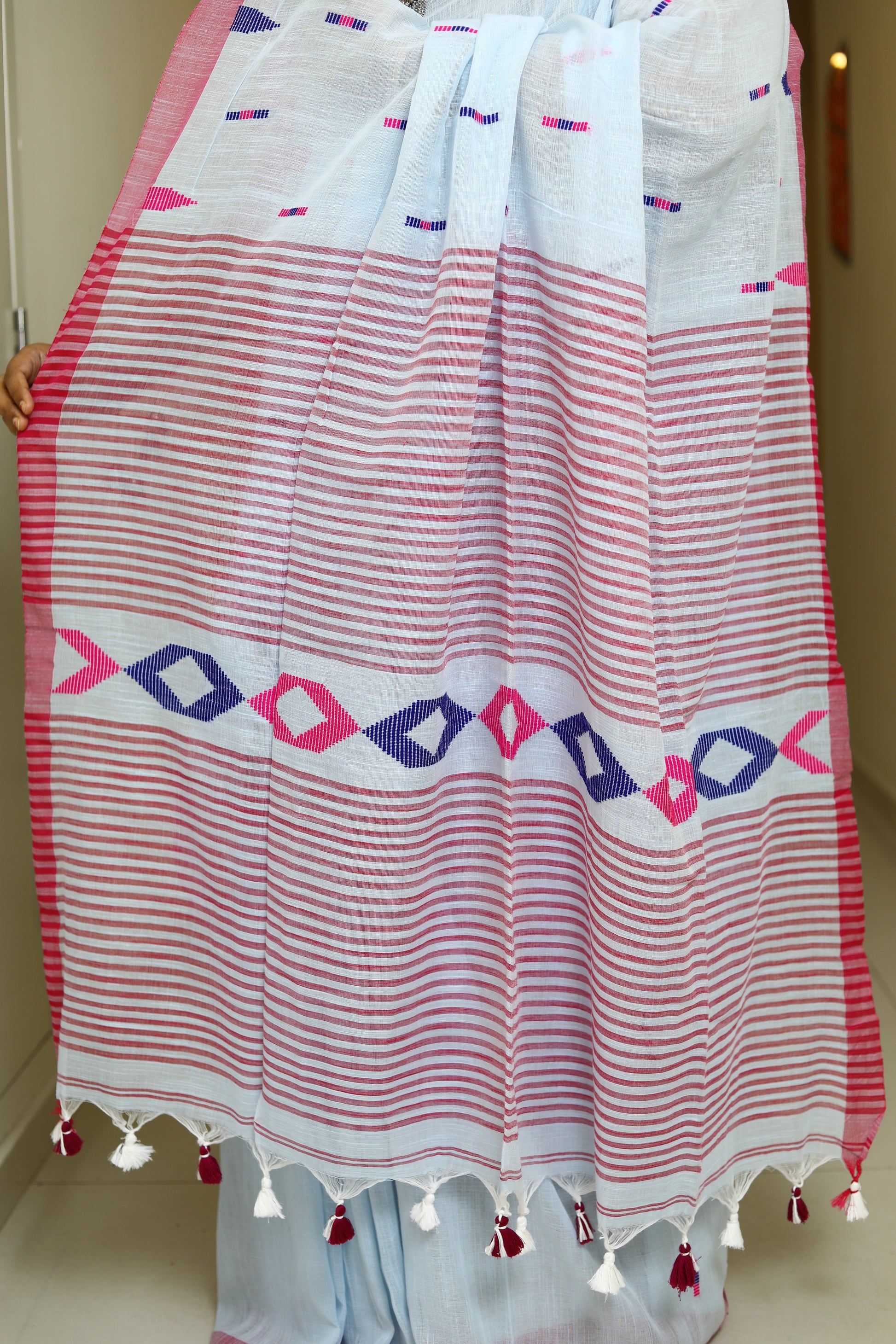 Details - Pure Cotton Handloom Saree with All-Over Thread Work