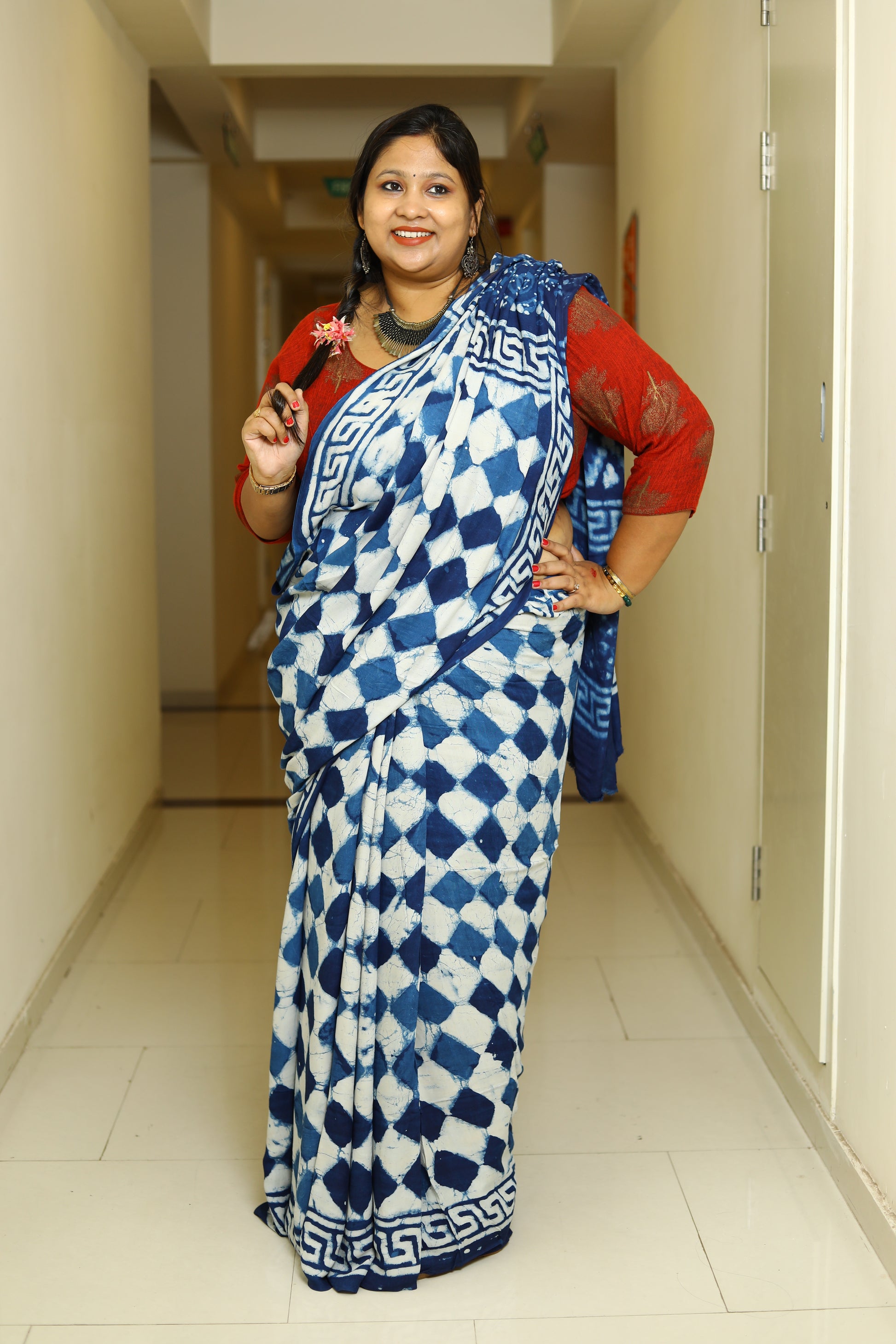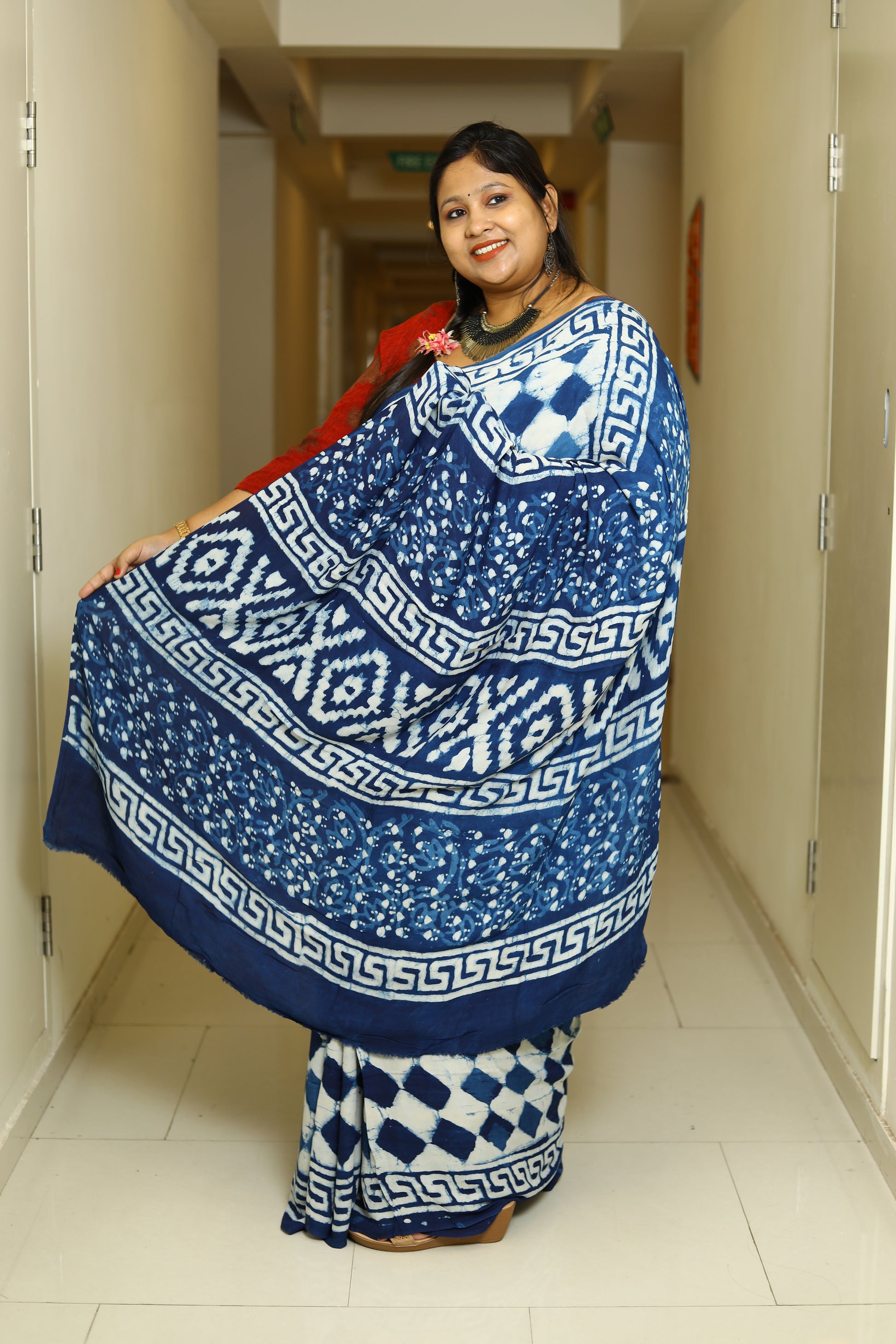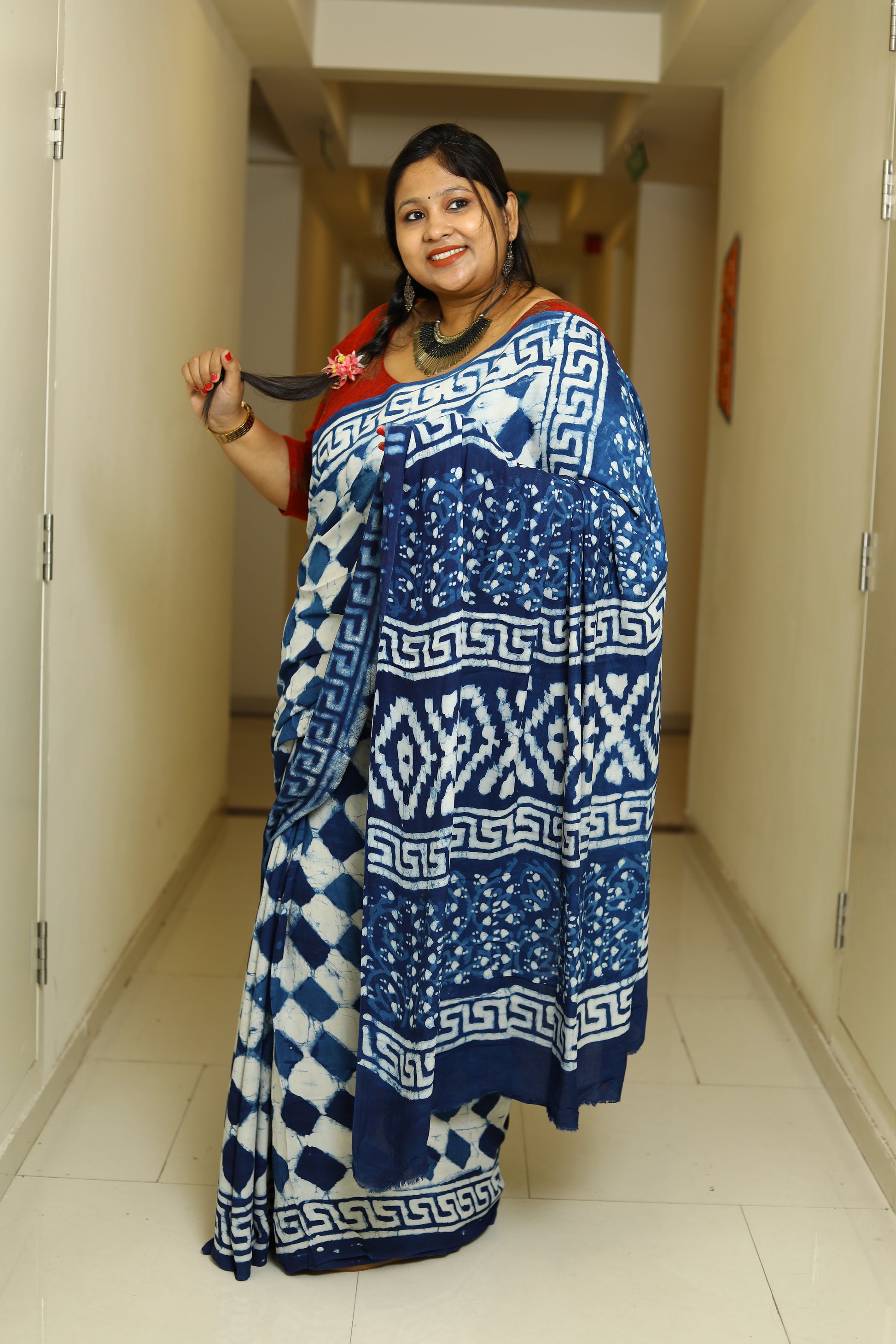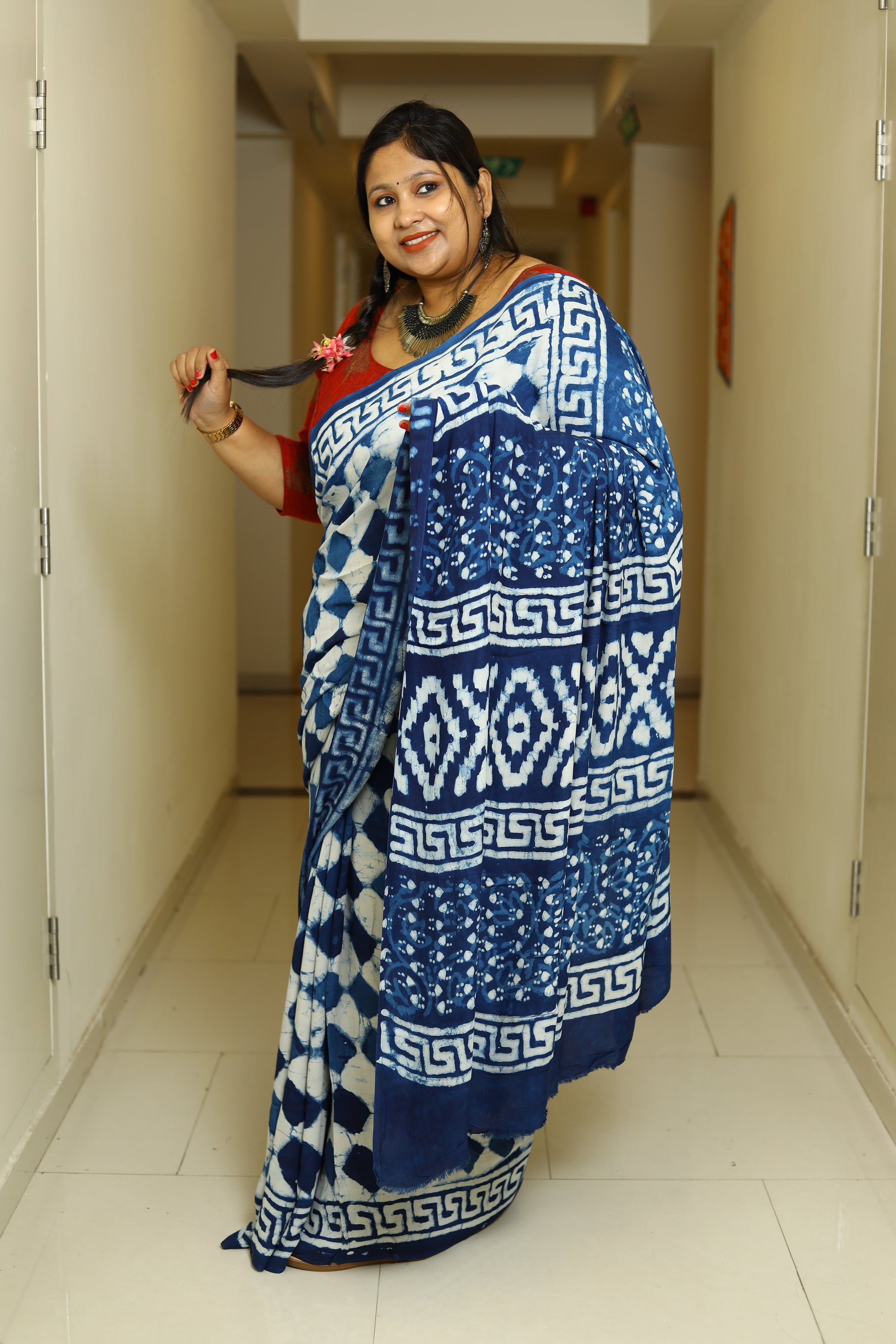 Fabric – Ajrakh printed Modal Silk saree