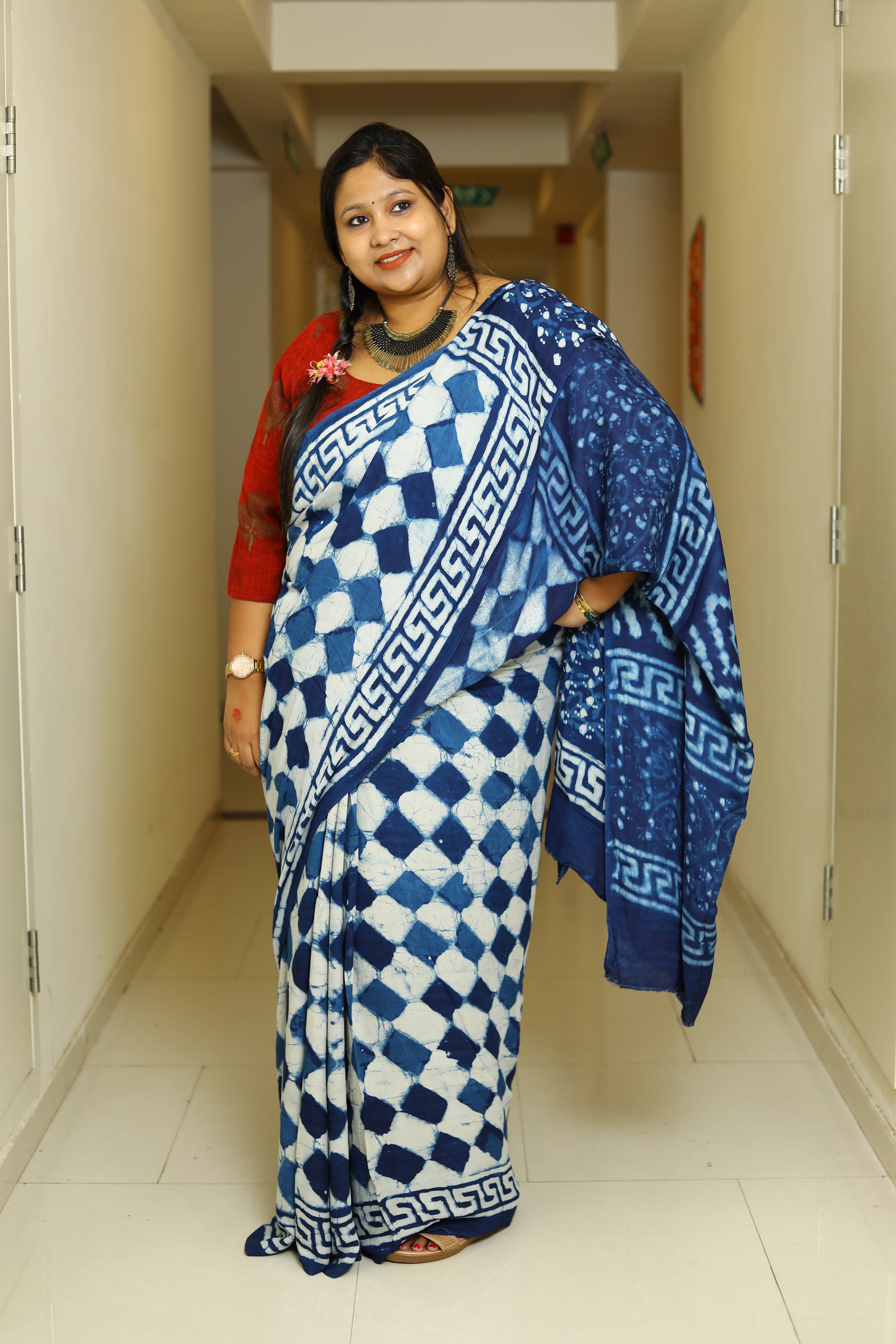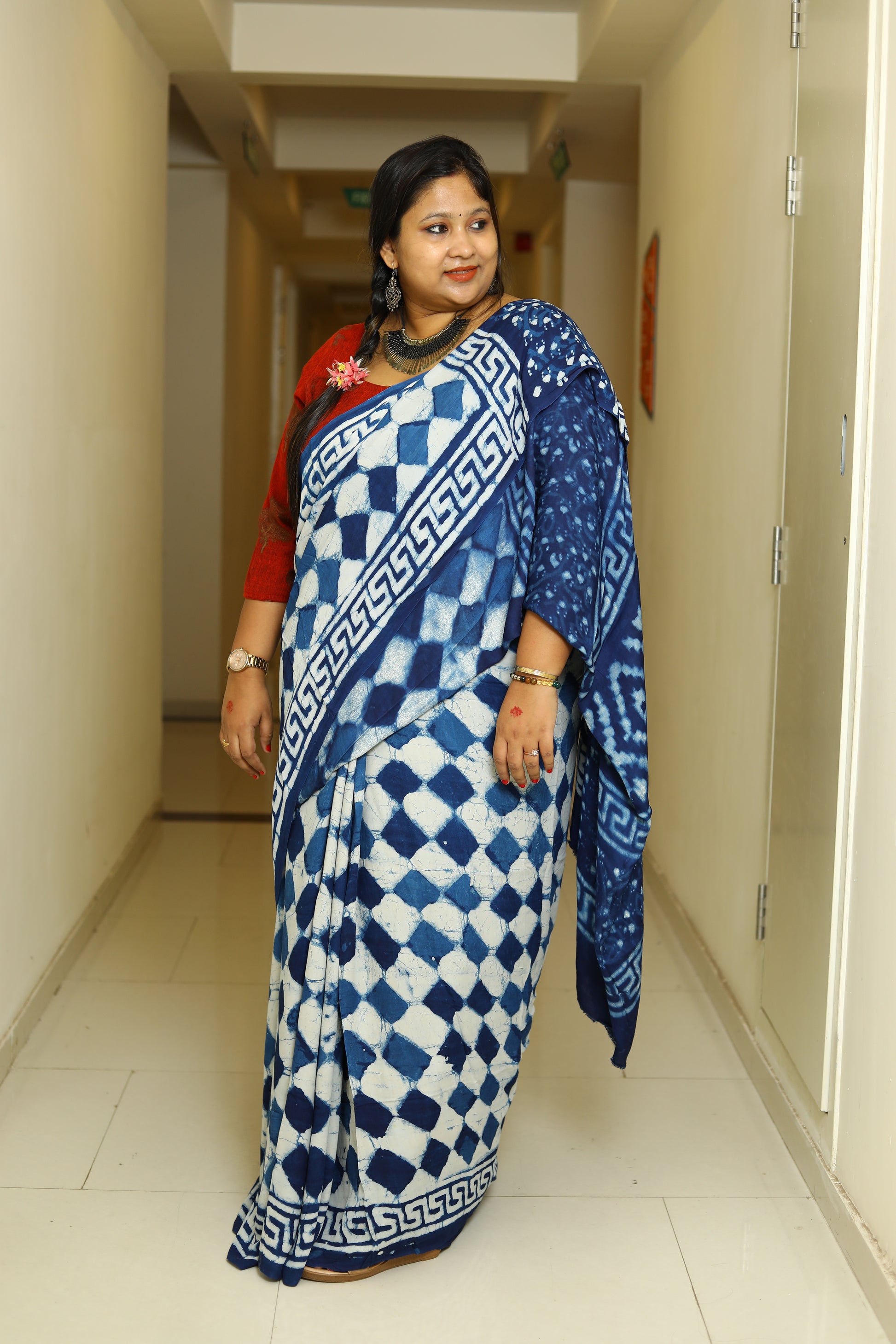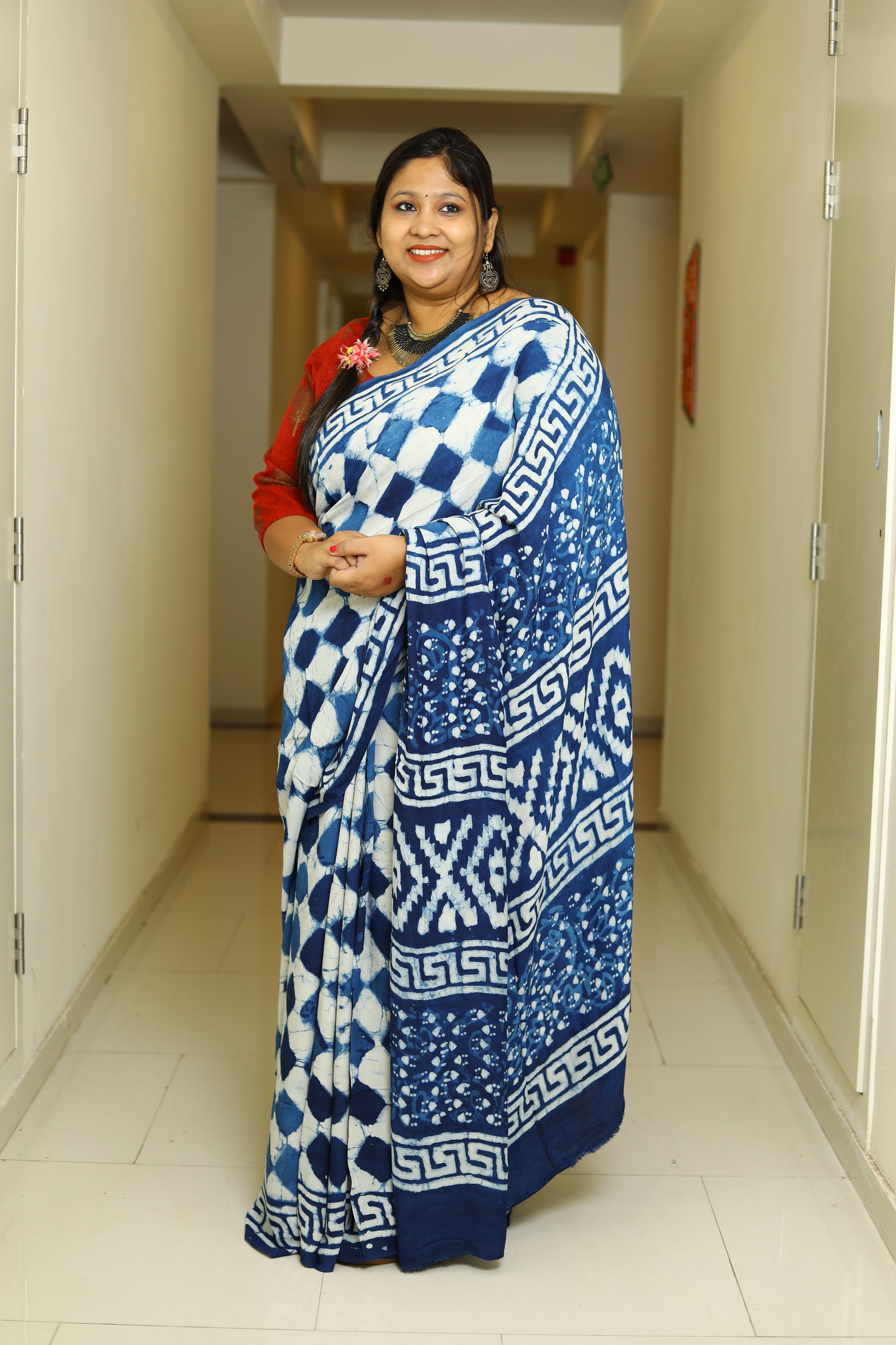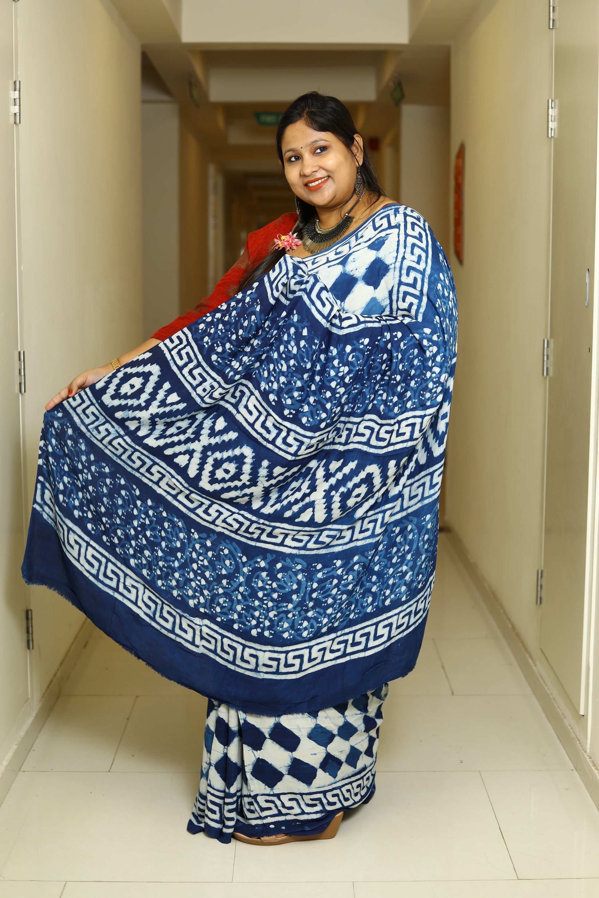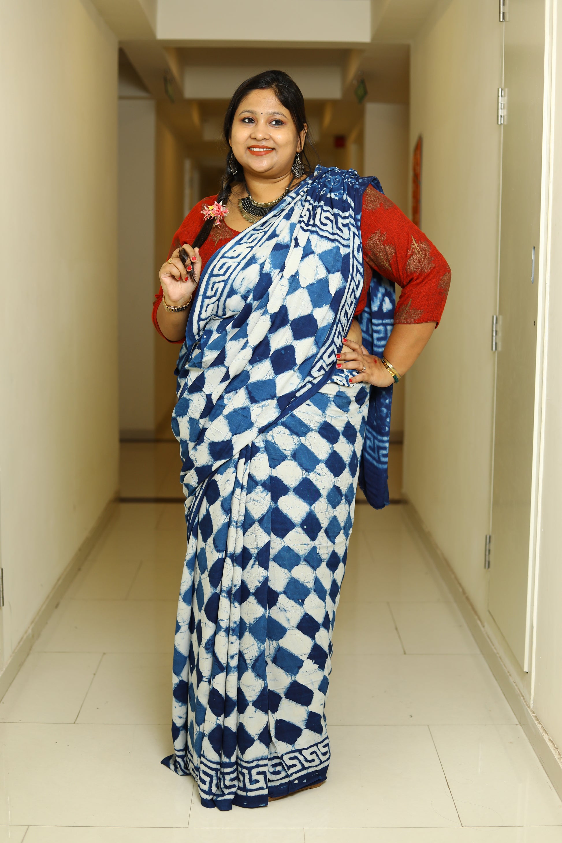 Fabric – Ajrakh printed Modal Silk saree