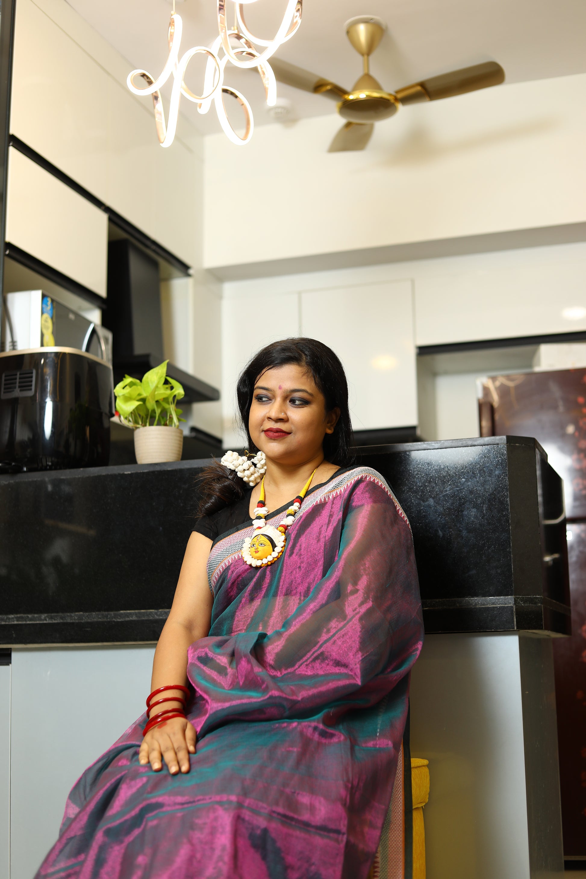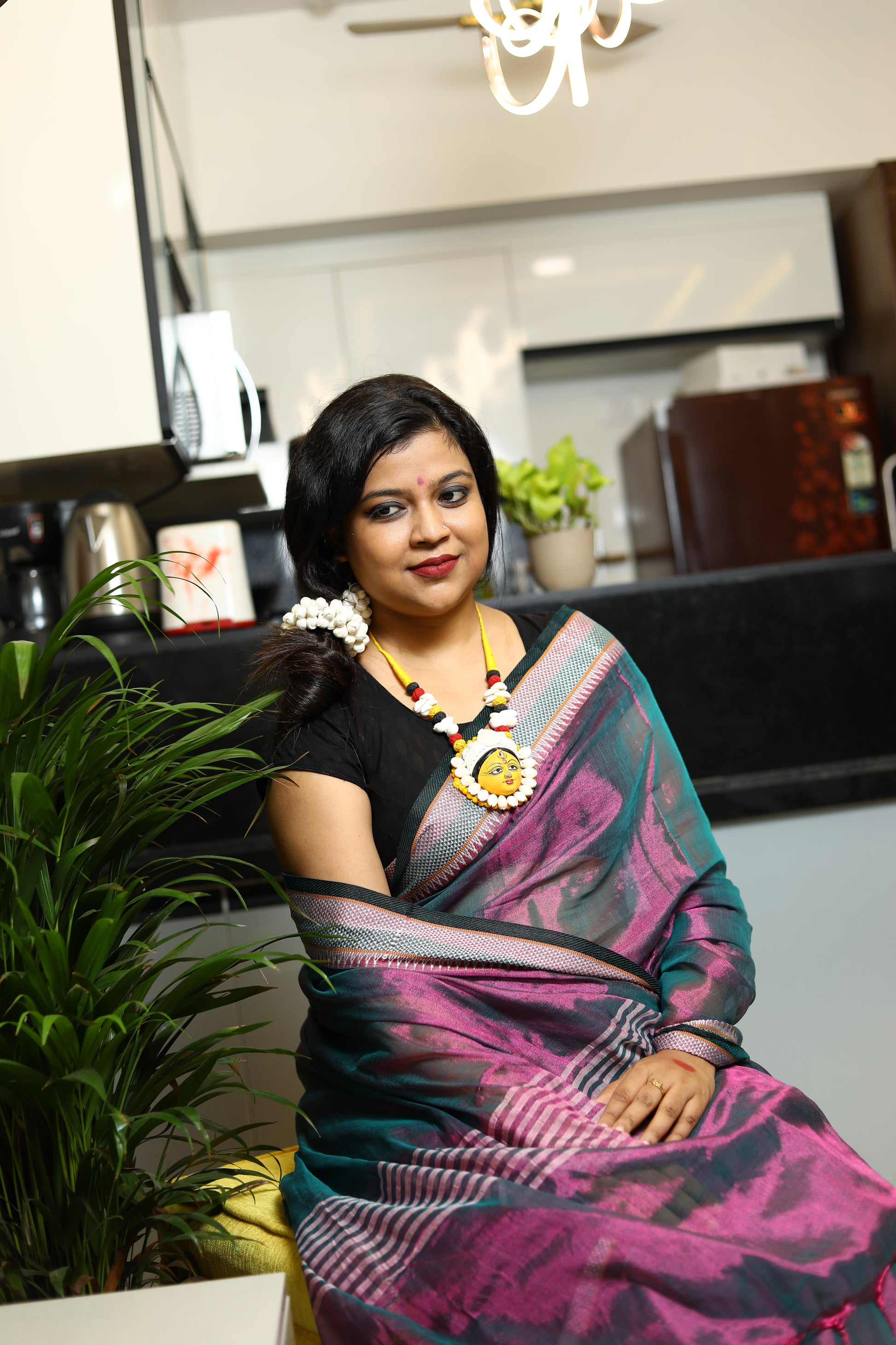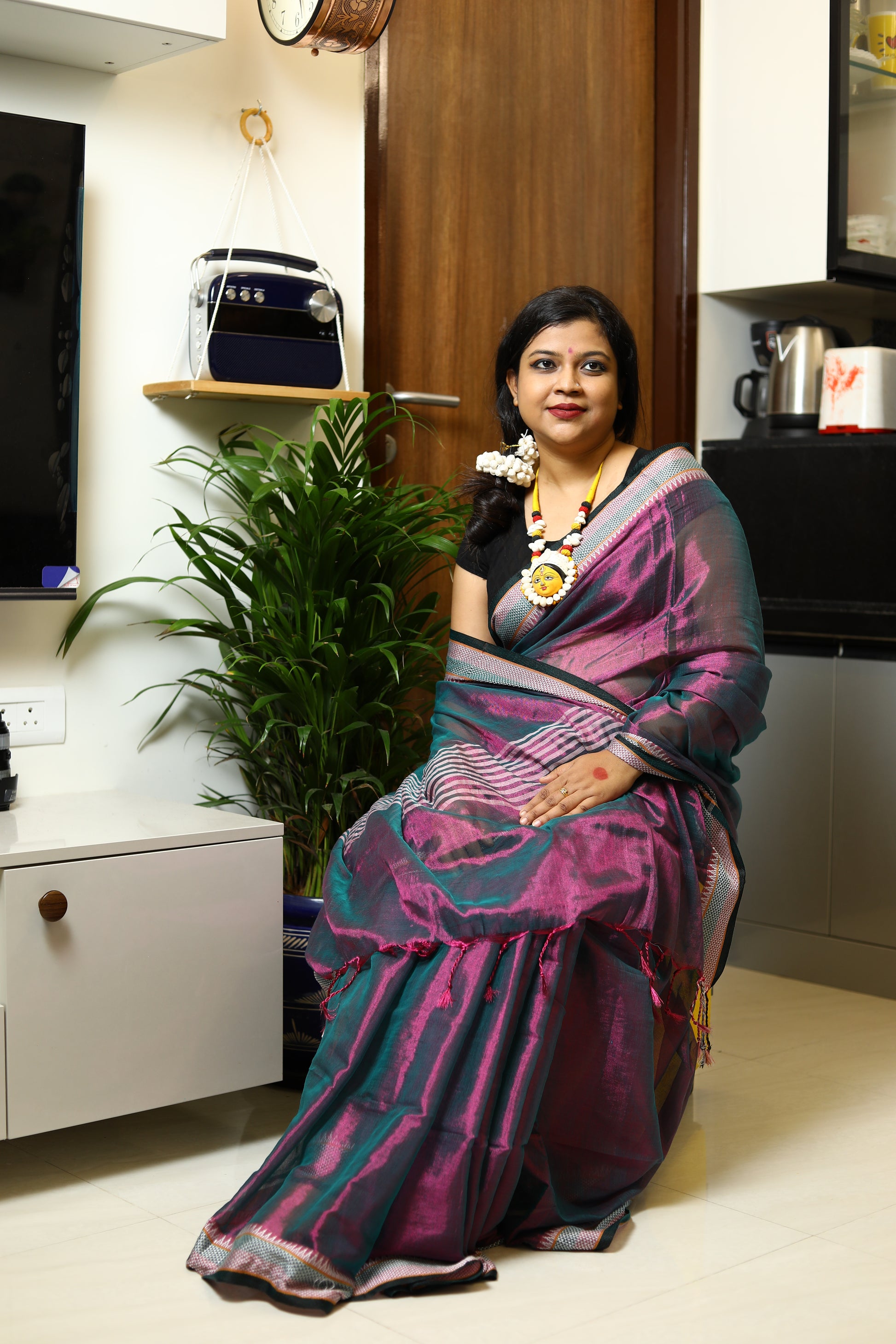 A stunning blend of elegance and comfort, crafted to make you shine on every occasion. This gorgeous saree features a delicate shimmer, while the linen base ensures a breathable, lightweight feel. Whether you're attending a festive celebration, a wedding, or a special event, this saree drapes effortlessly, offering both grace and ease. Its subtle sheen adds a touch of glamour, making it the perfect choice for those who seek a refined, timeless look.