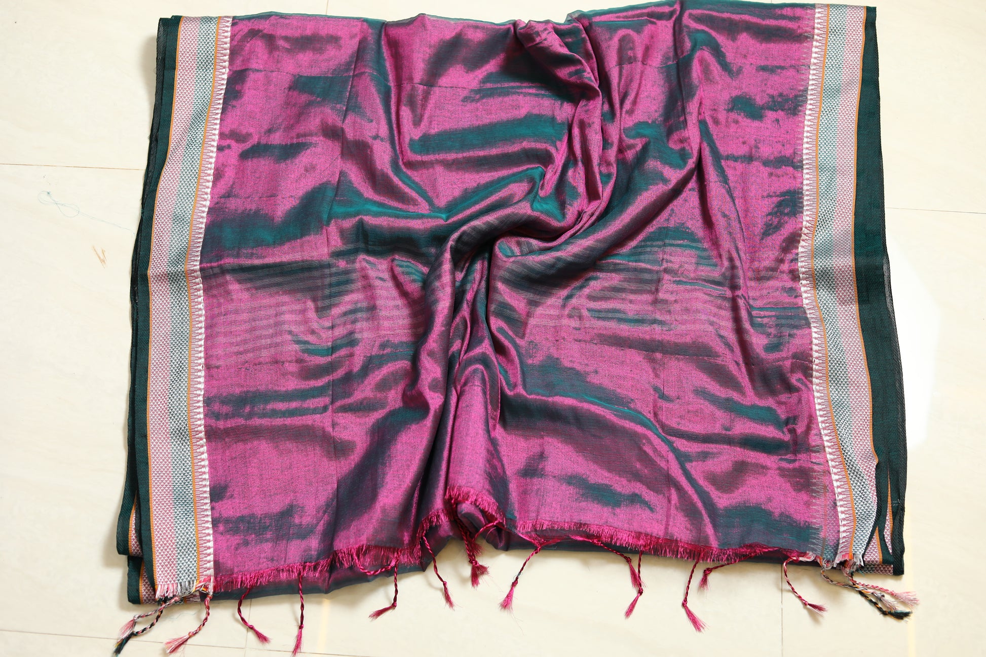 Embrace sophistication with our Tissue Linen Saree—a celebration of tradition and modernity!