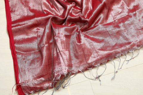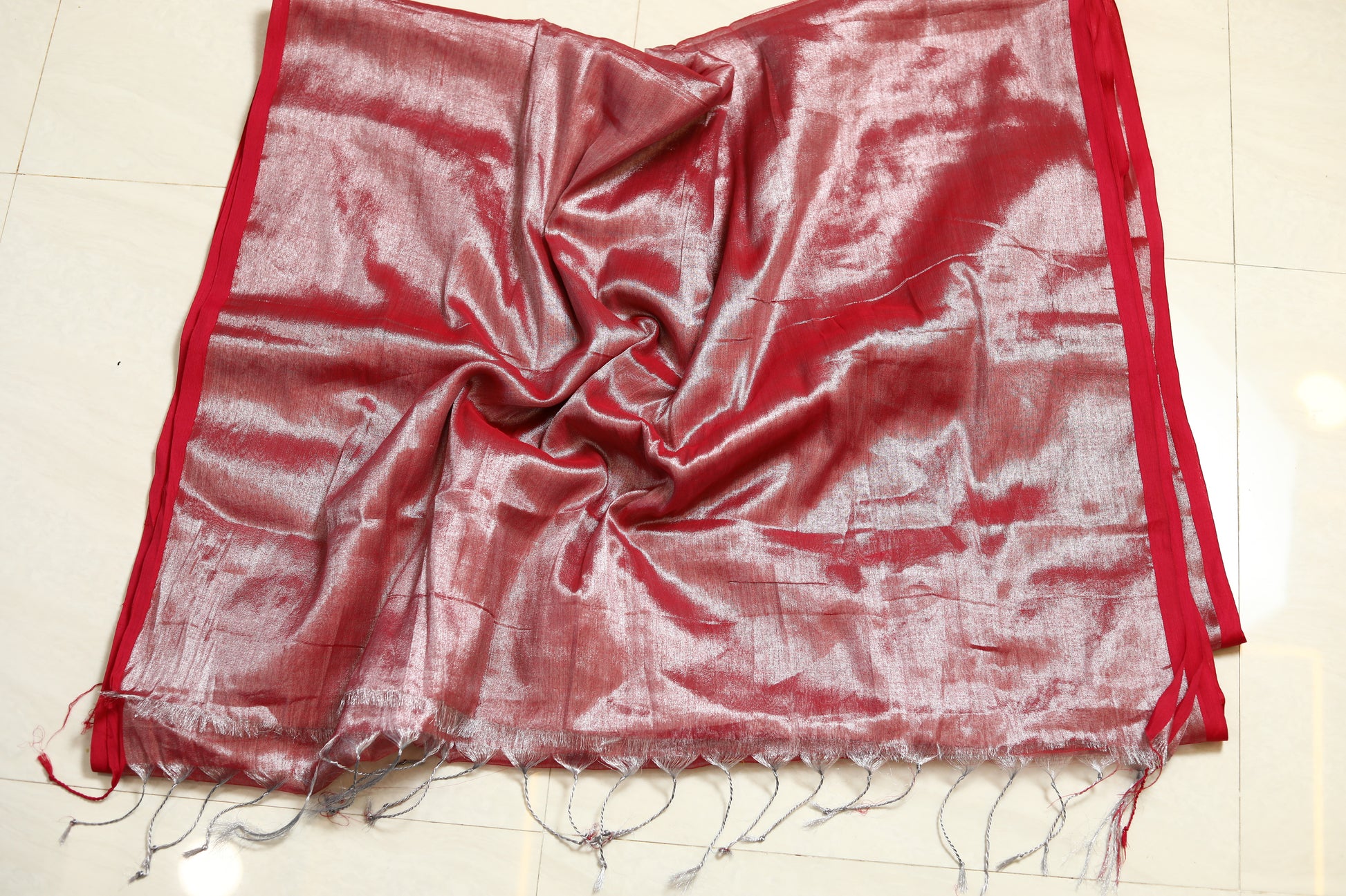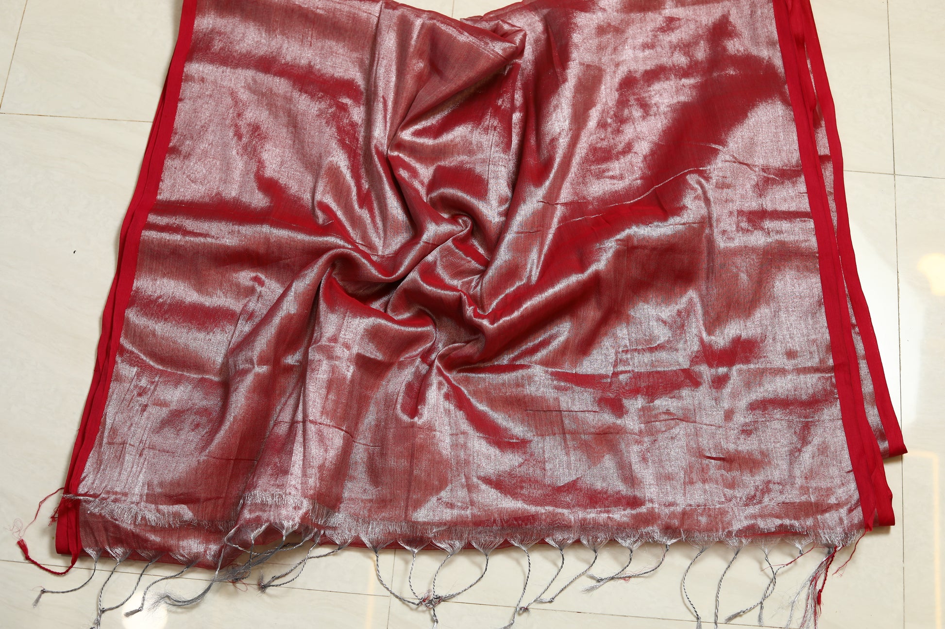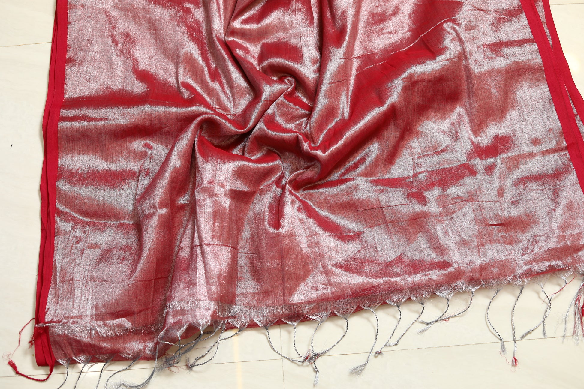 A stunning blend of elegance and comfort, crafted to make you shine on every occasion. This gorgeous saree features a delicate shimmer, while the linen base ensures a breathable, lightweight feel. Whether you're attending a festive celebration, a wedding, or a special event, this saree drapes effortlessly, offering both grace and ease. Its subtle sheen adds a touch of glamour, making it the perfect choice for those who seek a refined, timeless look.
