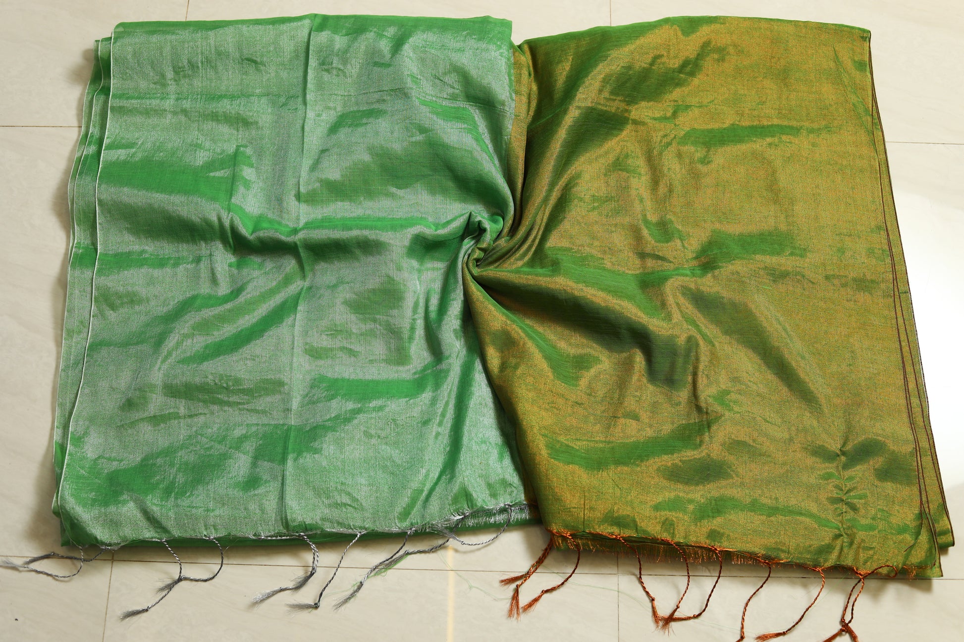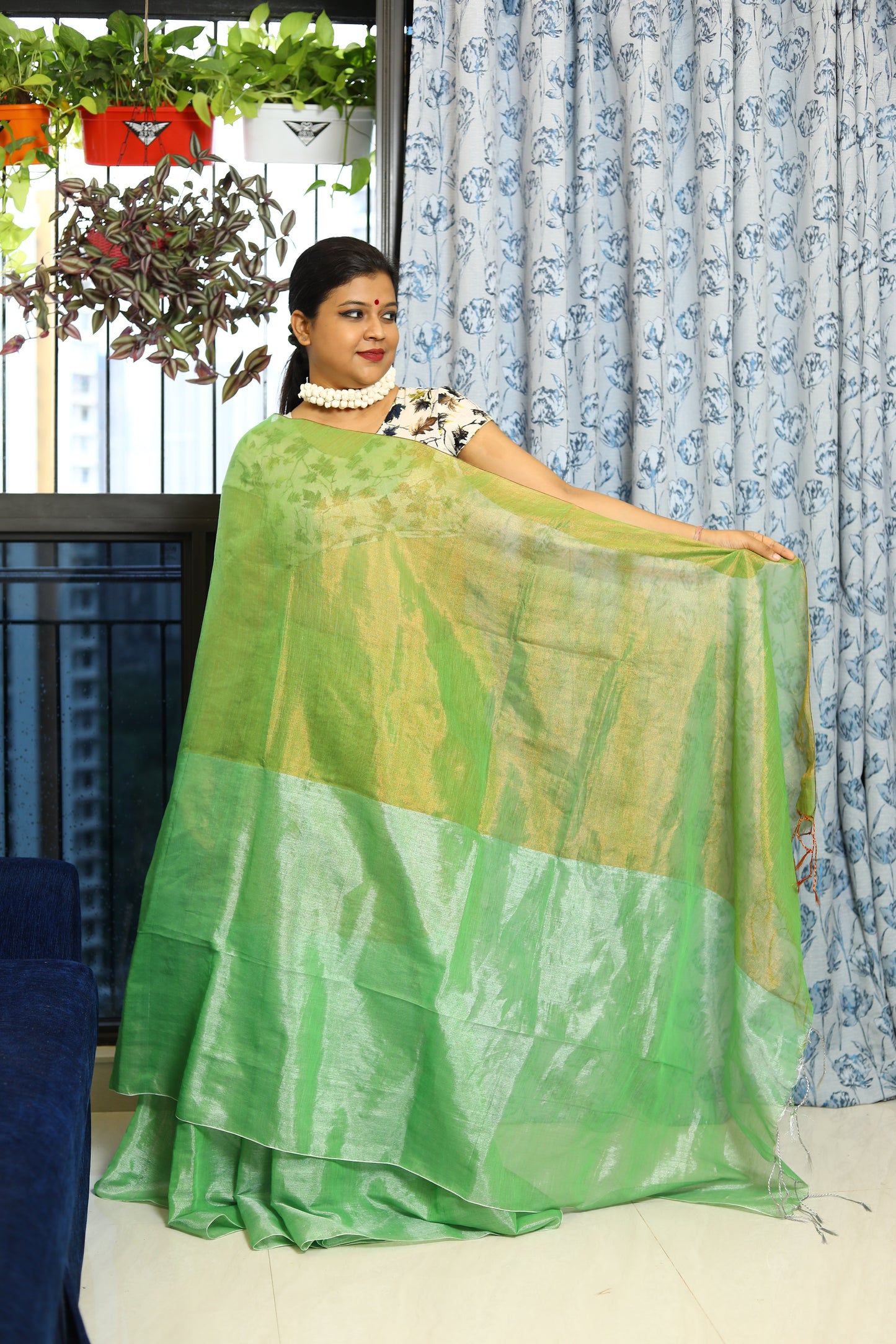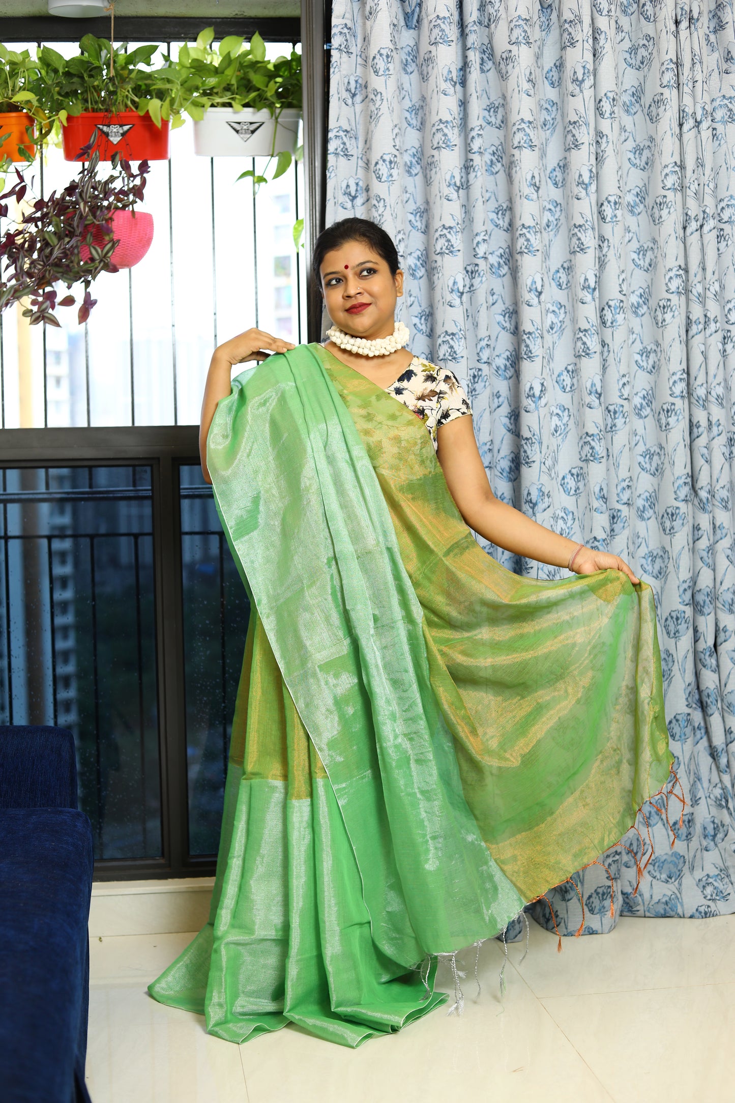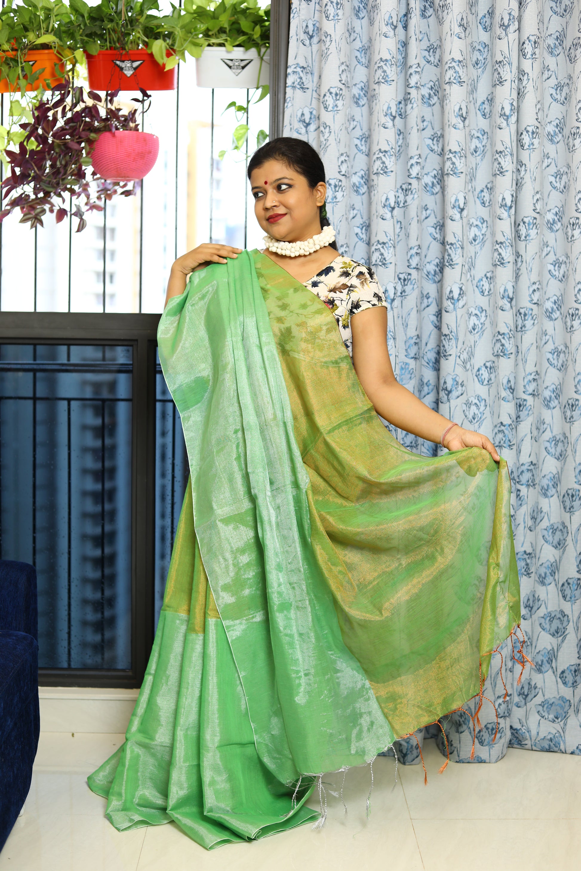 Embrace sophistication with our Tissue Linen Saree—a celebration of tradition and modernity!