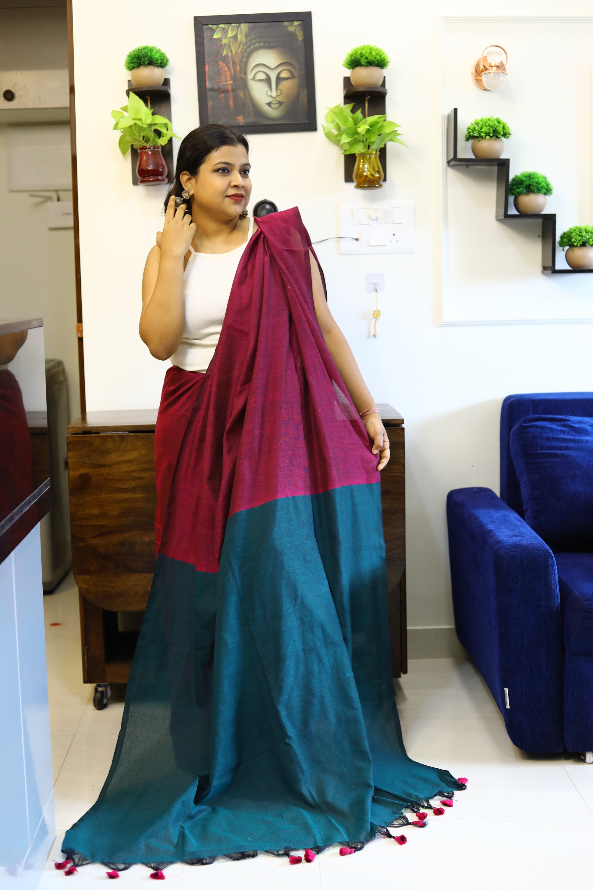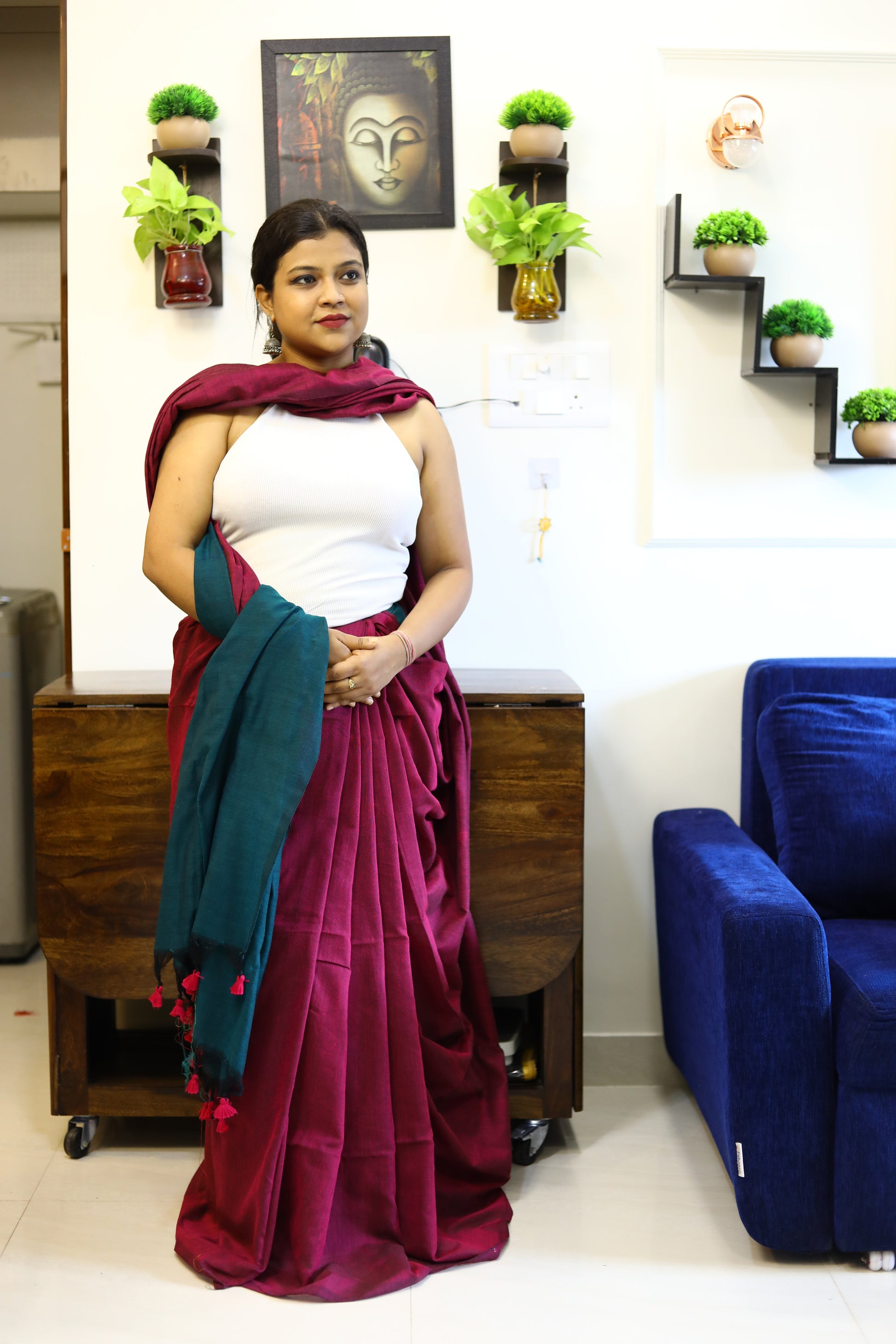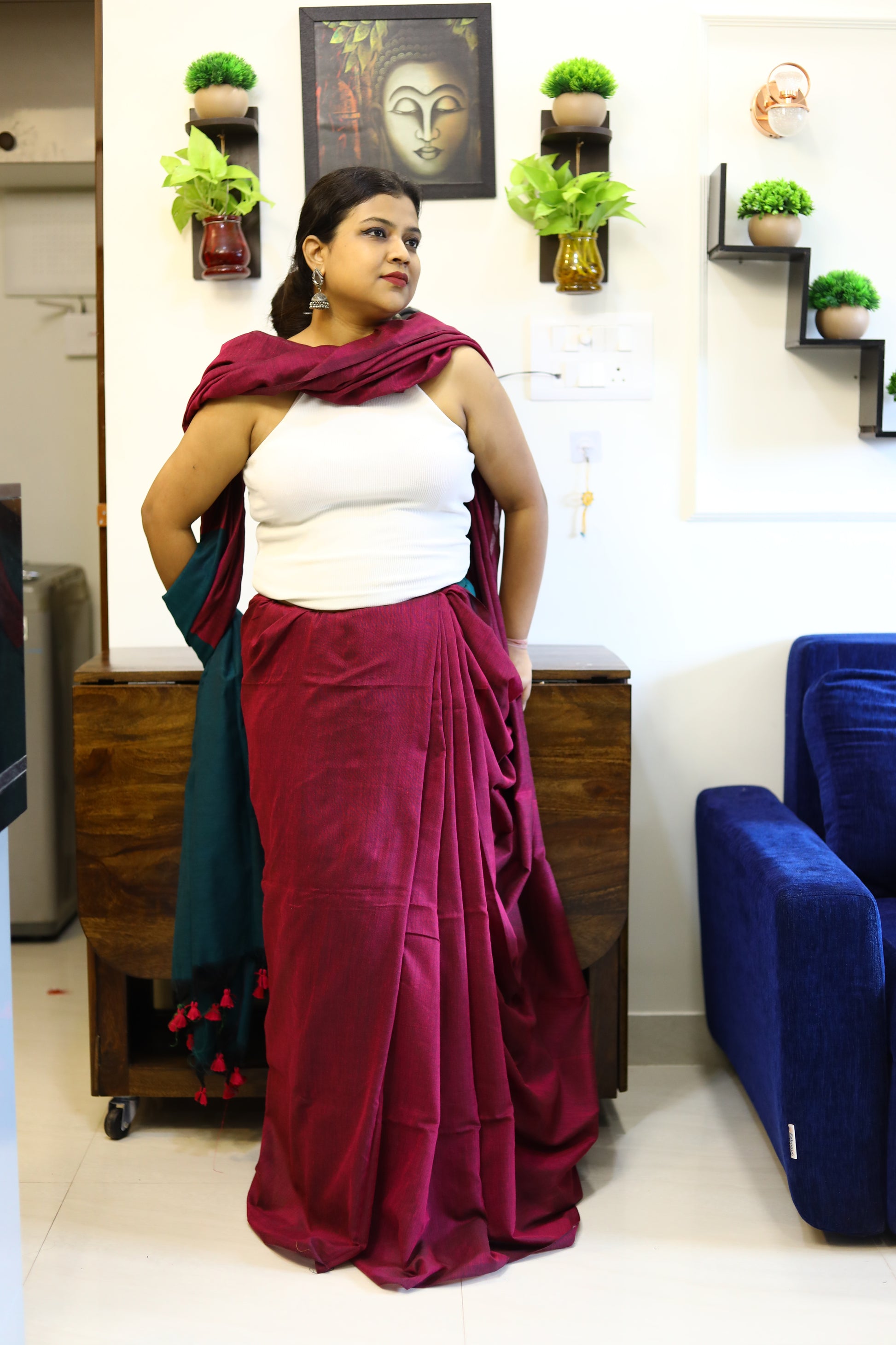 Pair it with a tailored blouse for a polished look or a chic tunic for a more relaxed vibe. Choose the Khadi Cotton Handloom Saree to make a sustainable fashion statement while enjoying everyday elegance.