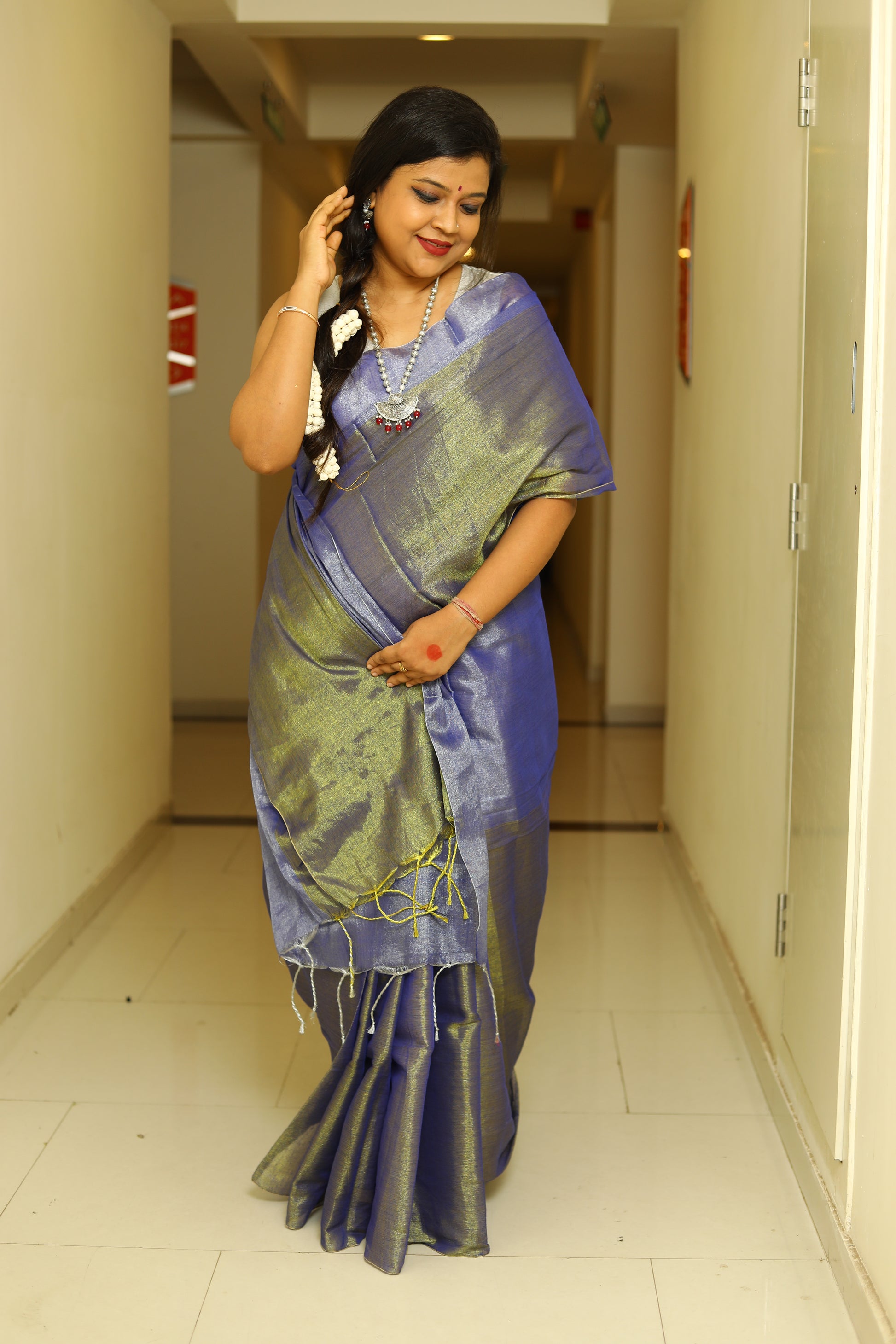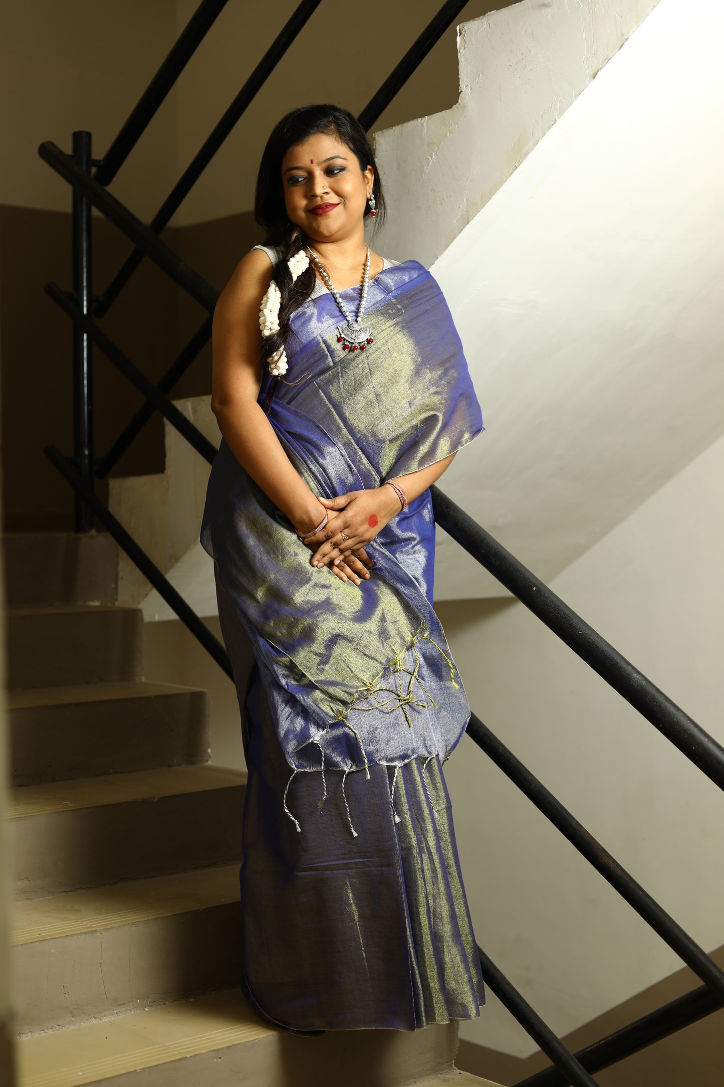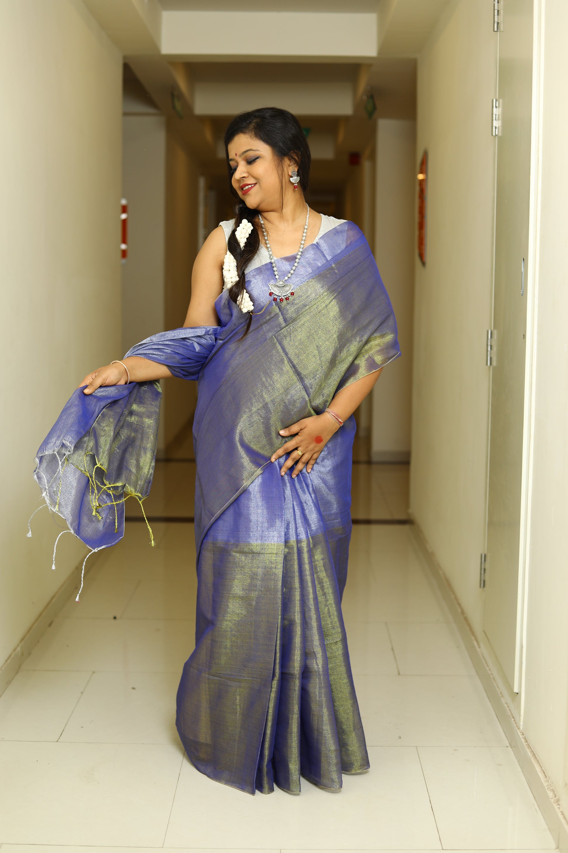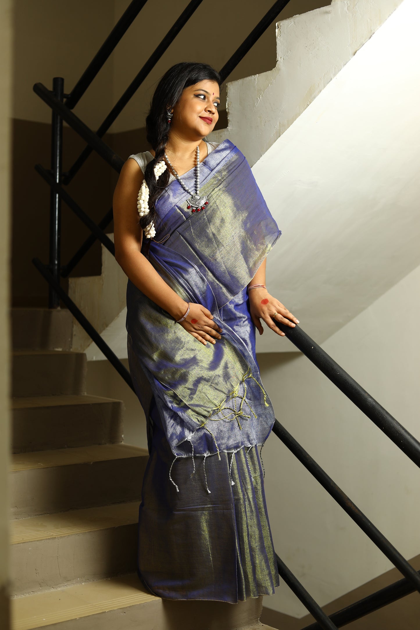 Embrace sophistication with our Tissue Linen Saree—a celebration of tradition and modernity!