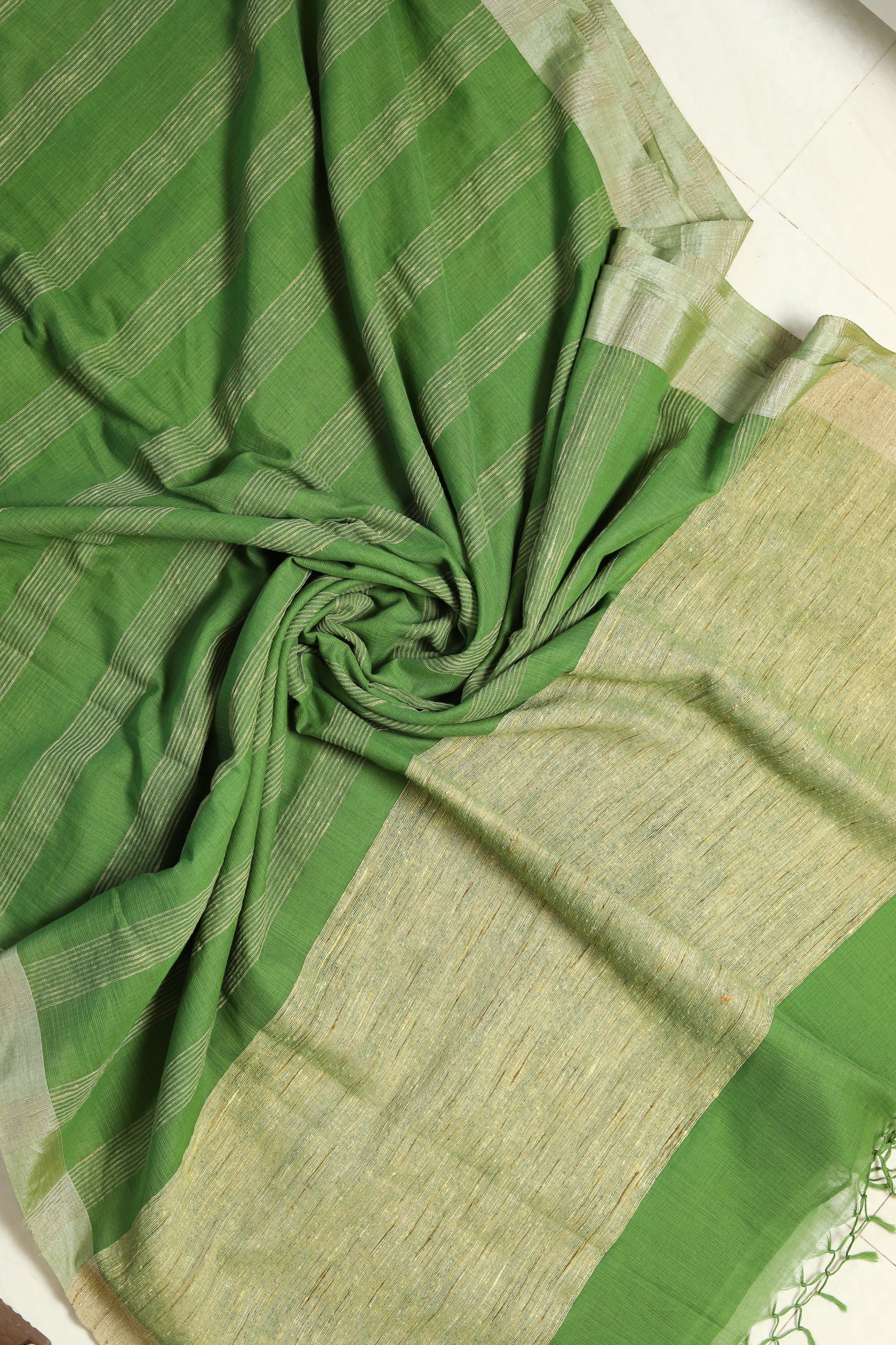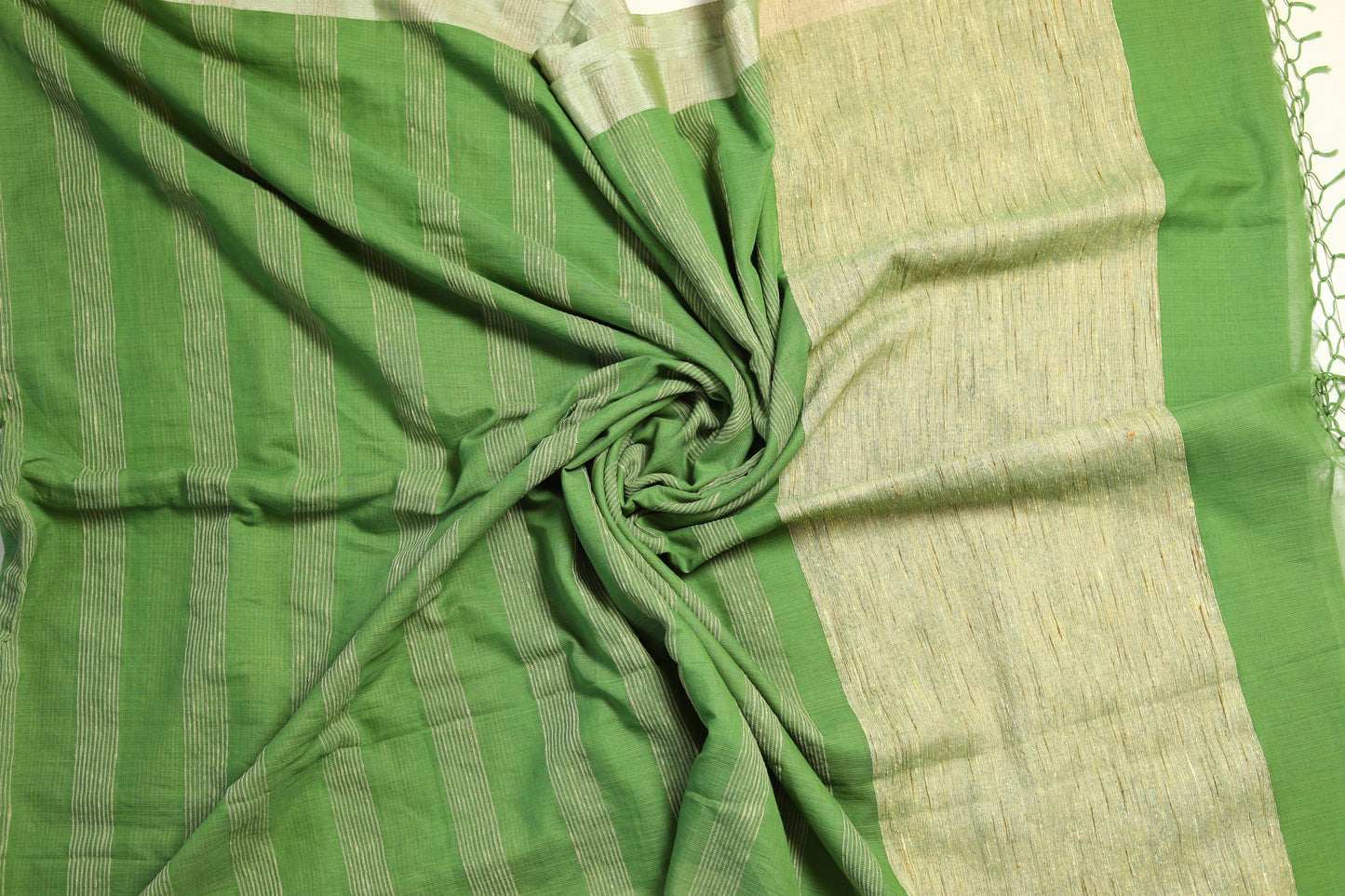 Details - Tussar bordered pure cotton handloomed saree with jute work on pallu