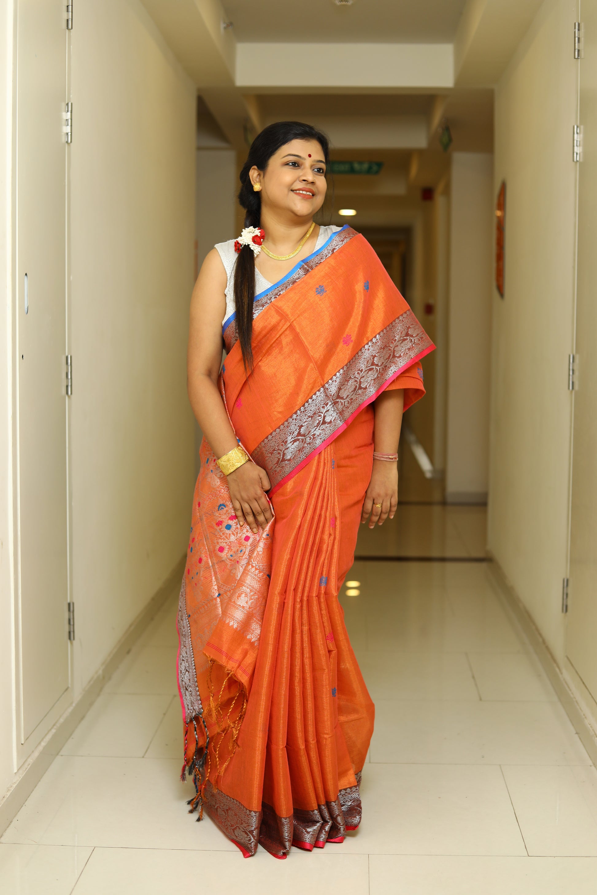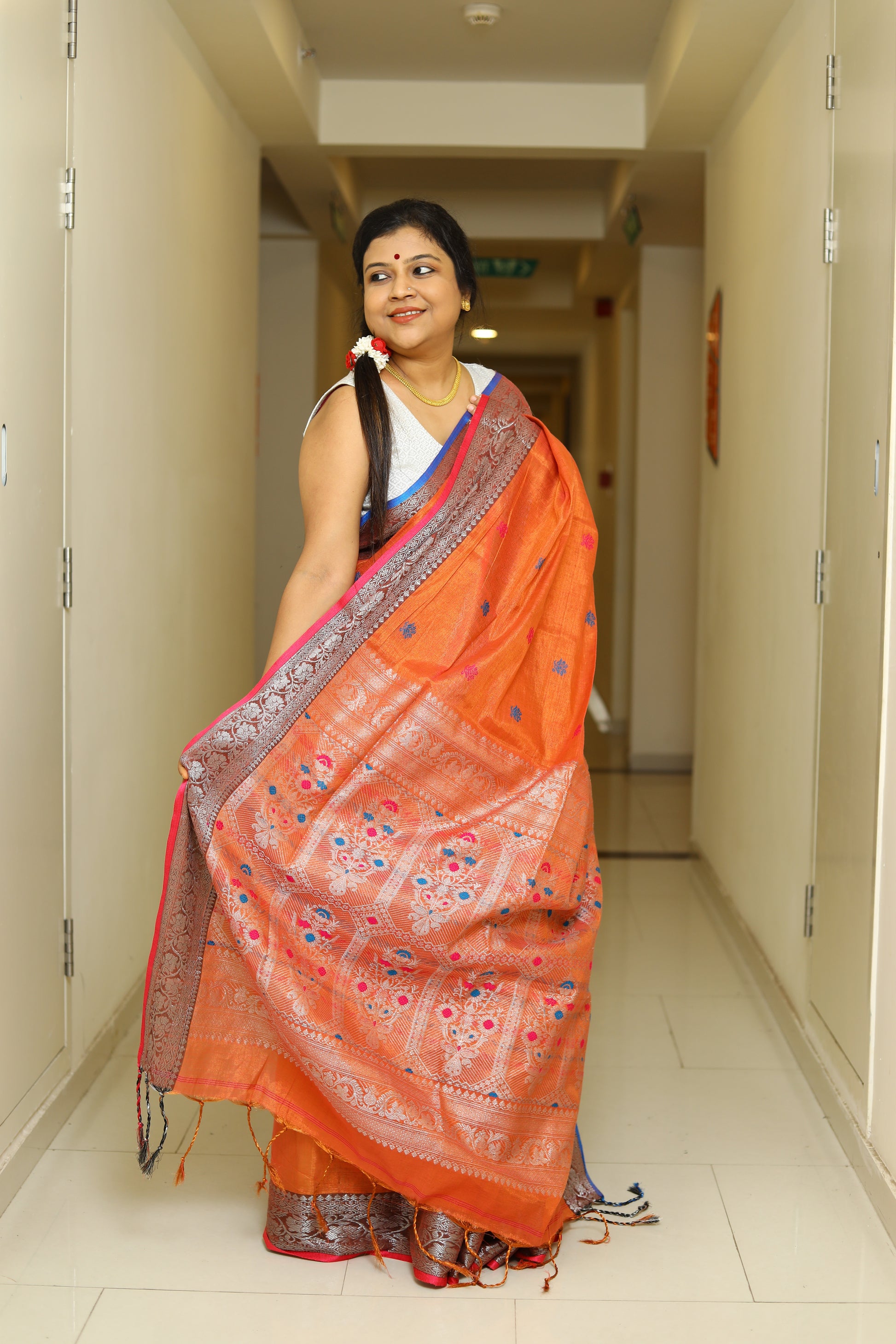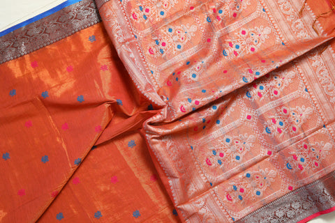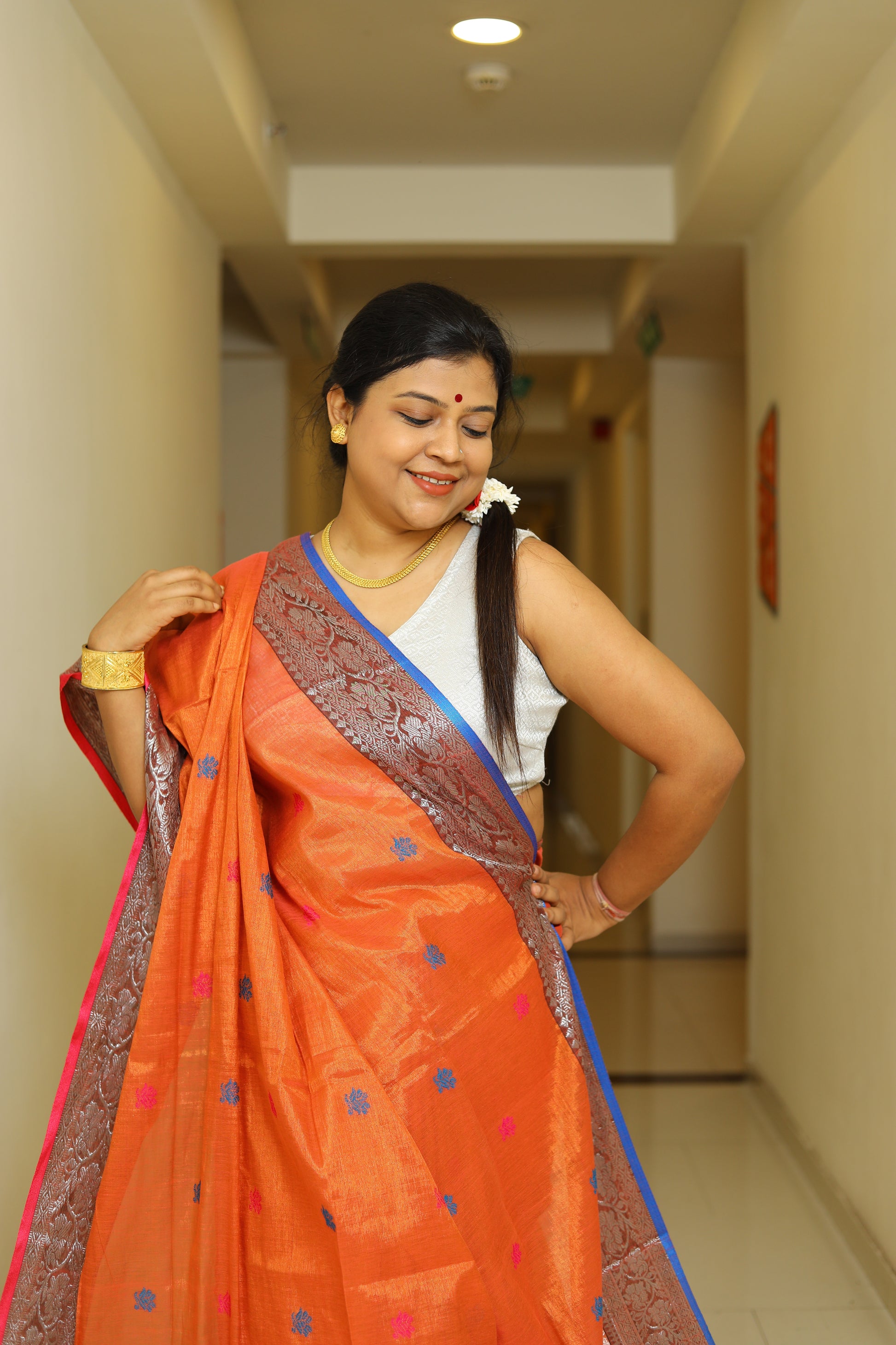 Embrace the spirit of the festive season with our stunning tissue linen Benarasi saree. This exquisite piece combines the lightweight elegance of tissue linen with the rich heritage of Benarasi weaving, making it a perfect choice for celebrations. Adorned with intricate designs and a lustrous sheen, the saree drapes beautifully, enhancing your natural grace. Ideal for festive gatherings, family celebrations, or traditional events, this saree offers comfort without compromising on style. Elevate your festive wardrobe and make a statement with this timeless piece that reflects artistry and tradition. Celebrate in style and let your elegance shine!