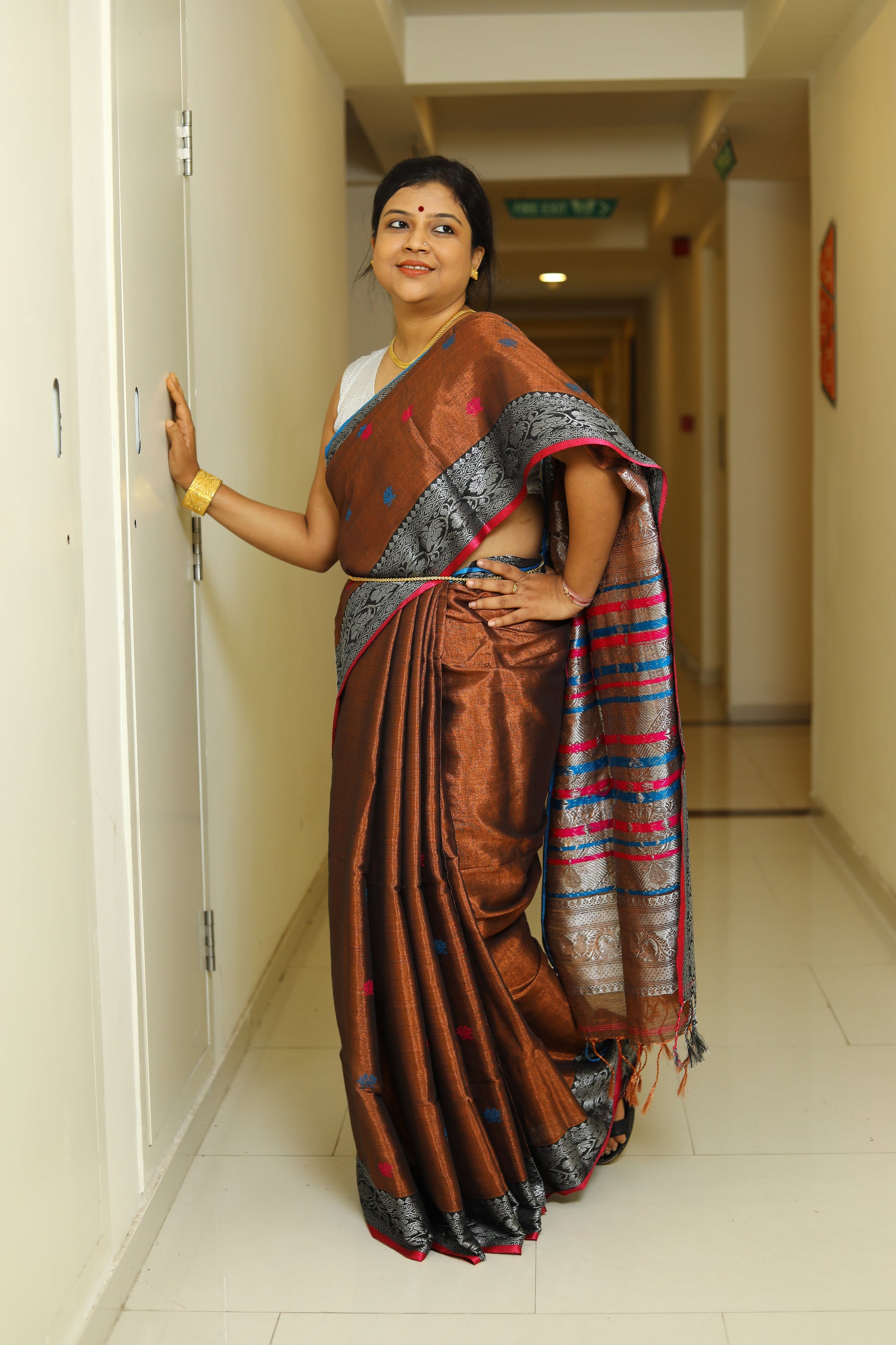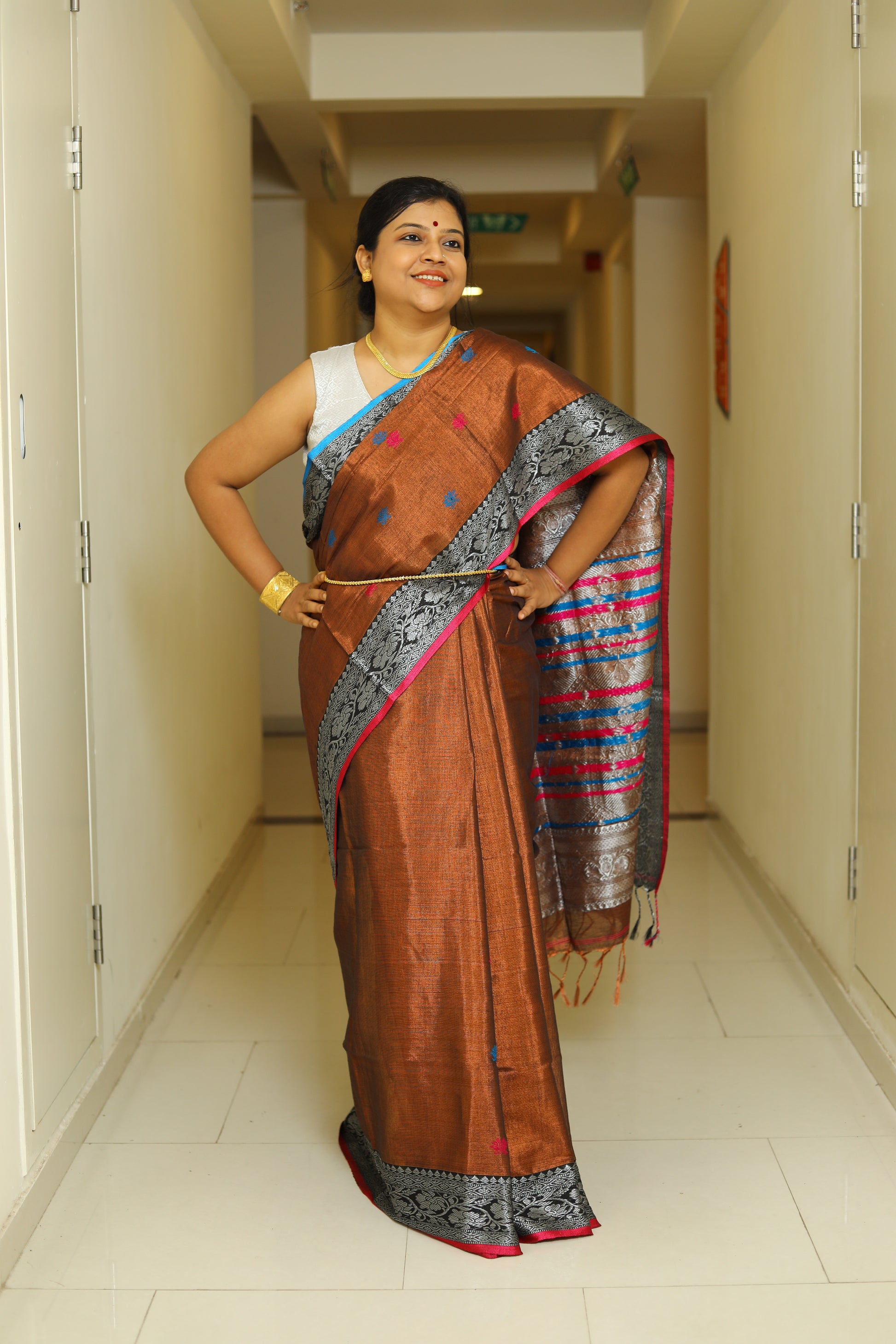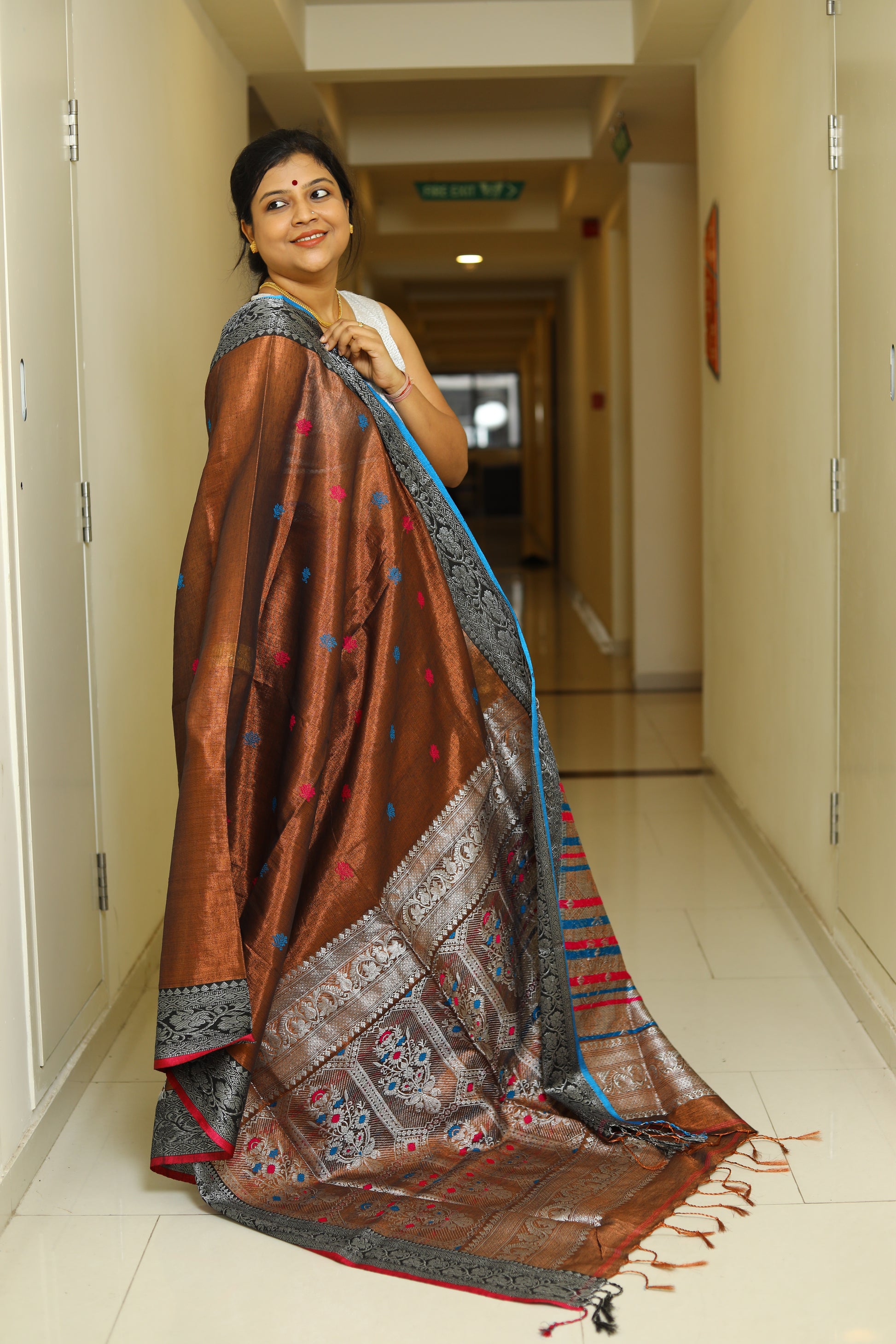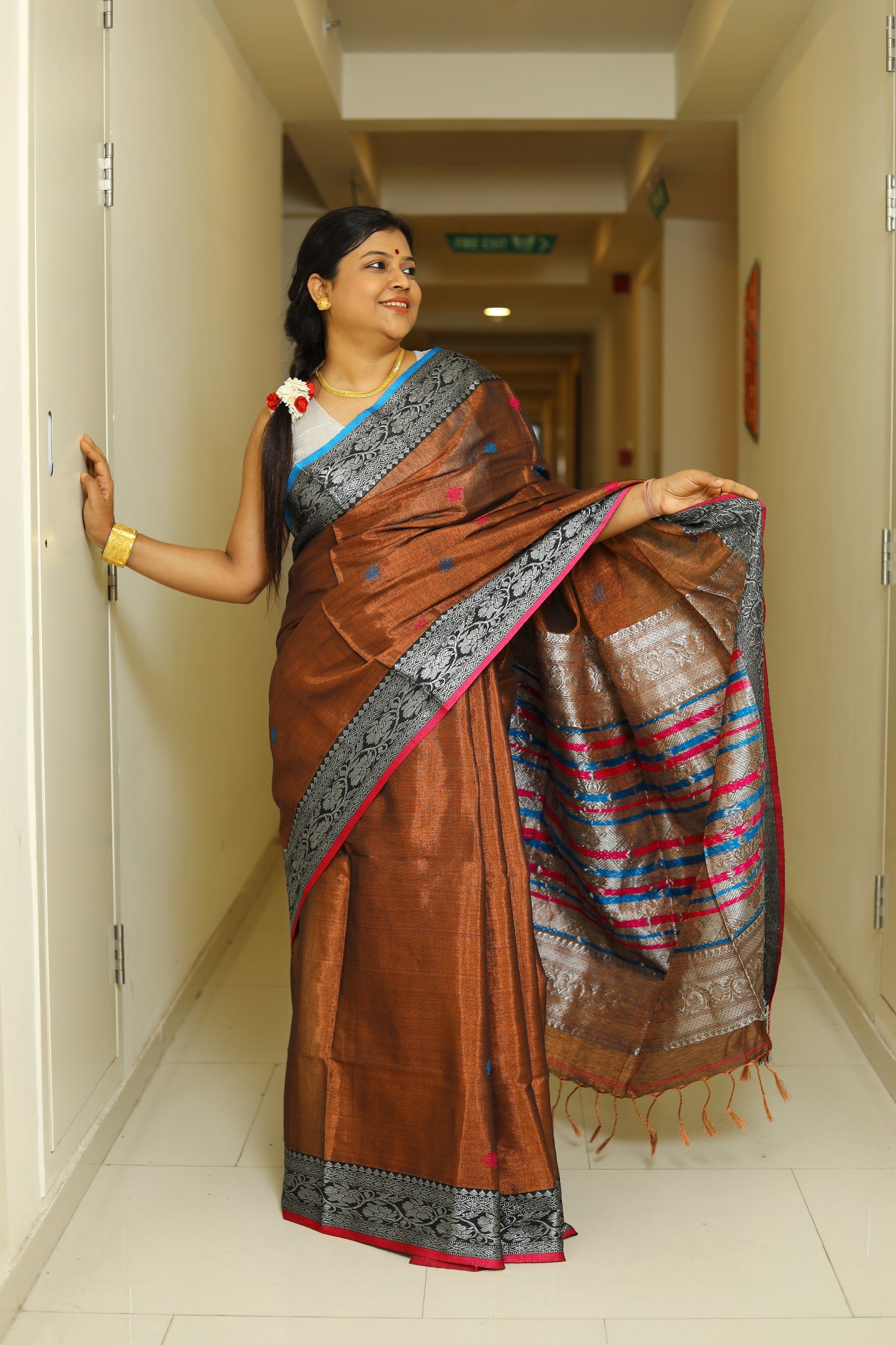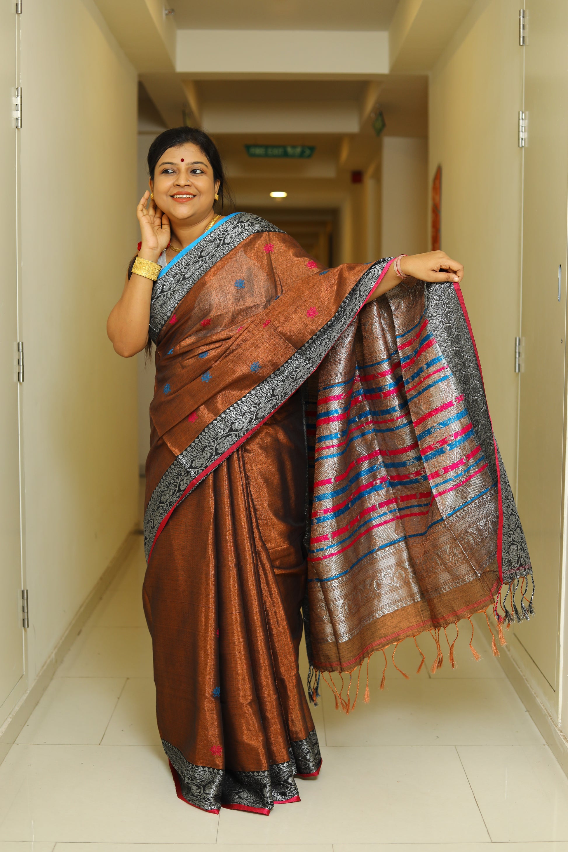 Embrace the spirit of the festive season with our stunning tissue linen Benarasi saree. This exquisite piece combines the lightweight elegance of tissue linen with the rich heritage of Benarasi weaving, making it a perfect choice for celebrations. Adorned with intricate designs and a lustrous sheen, the saree drapes beautifully, enhancing your natural grace. Ideal for festive gatherings, family celebrations, or traditional events, this saree offers comfort without compromising on style. Elevate your festive wardrobe and make a statement with this timeless piece that reflects artistry and tradition. Celebrate in style and let your elegance shine!