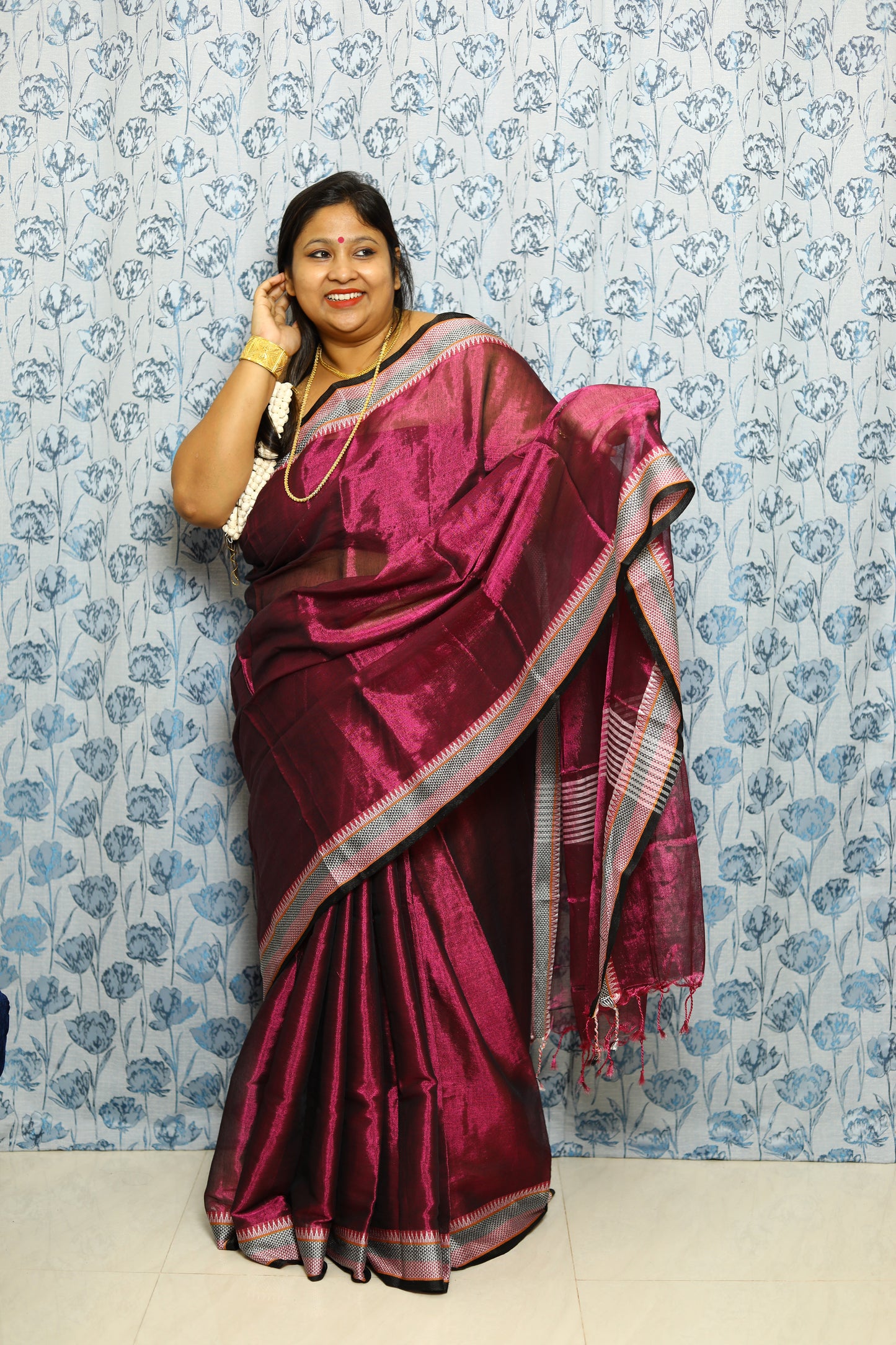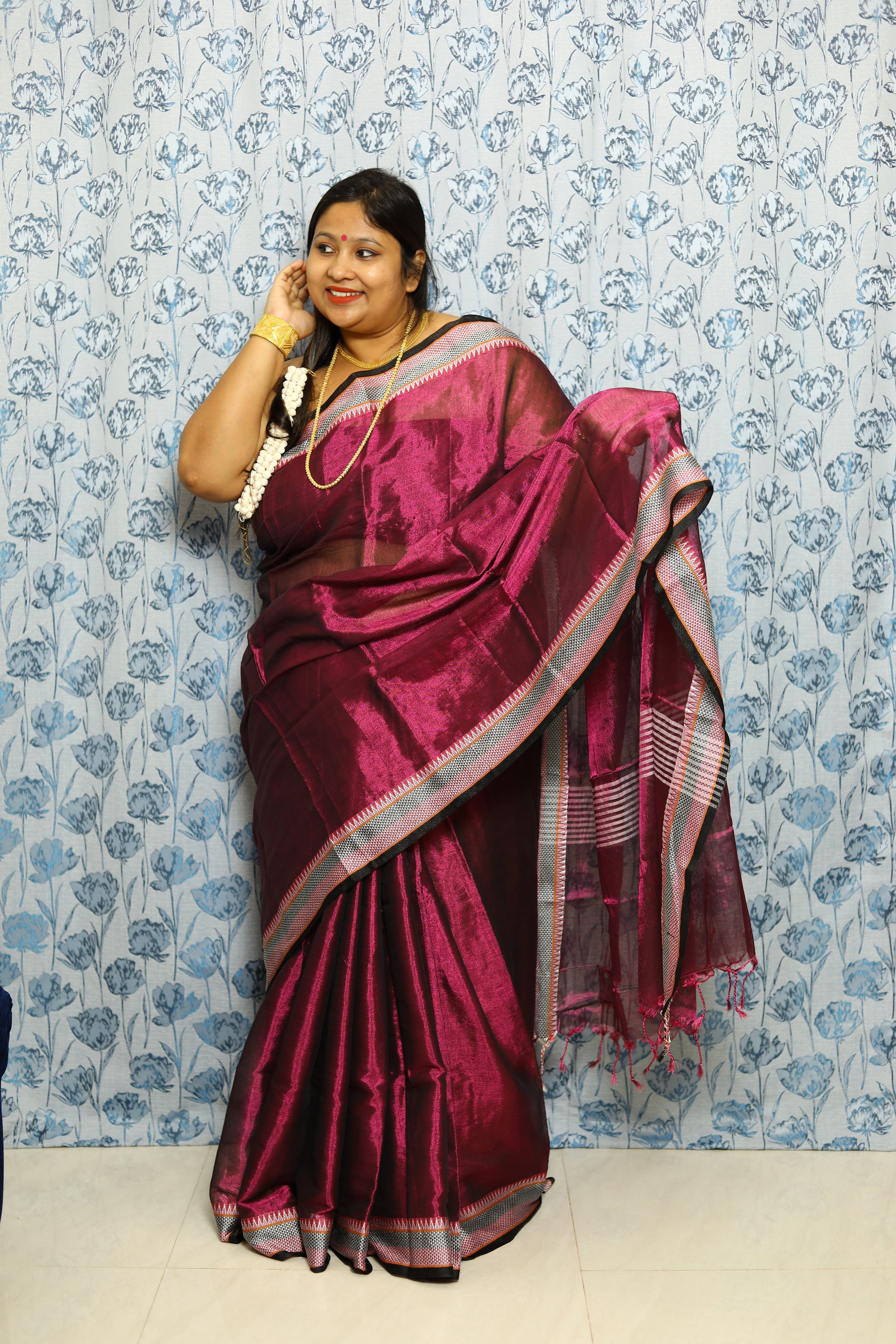 Embrace sophistication with our Tissue Linen Saree—a celebration of tradition and modernity!
