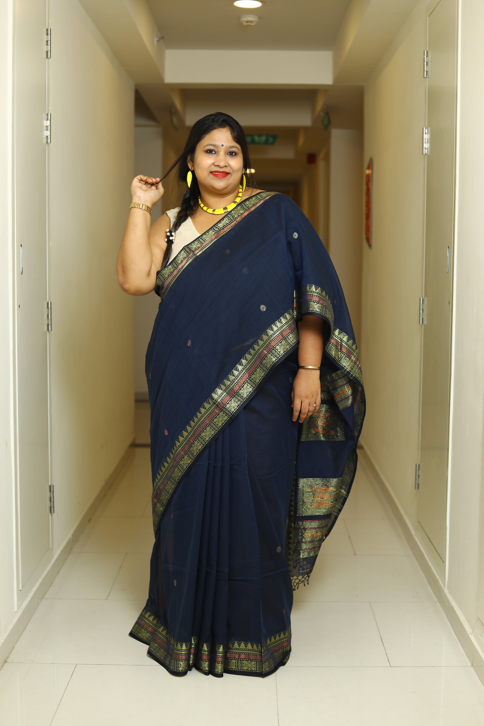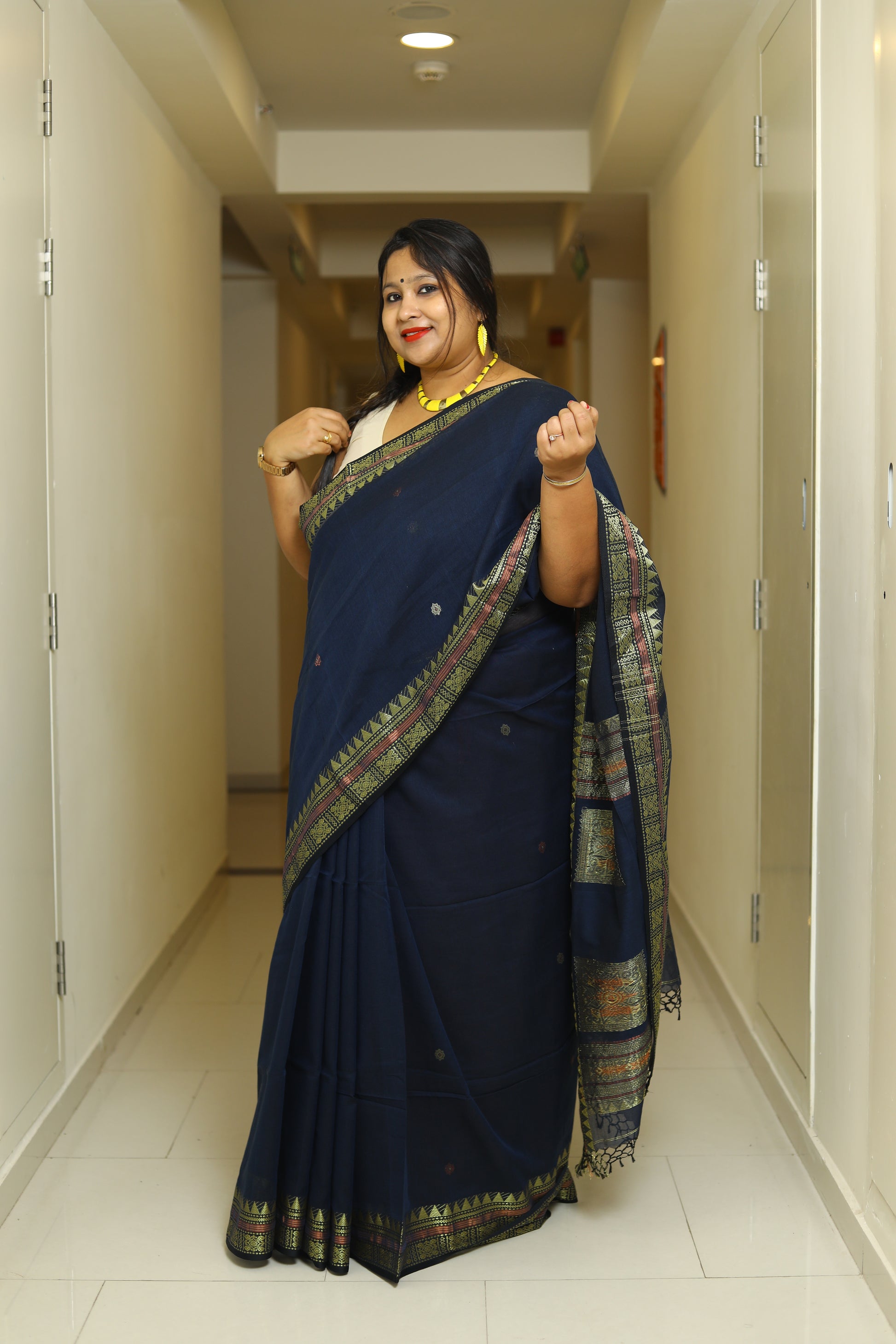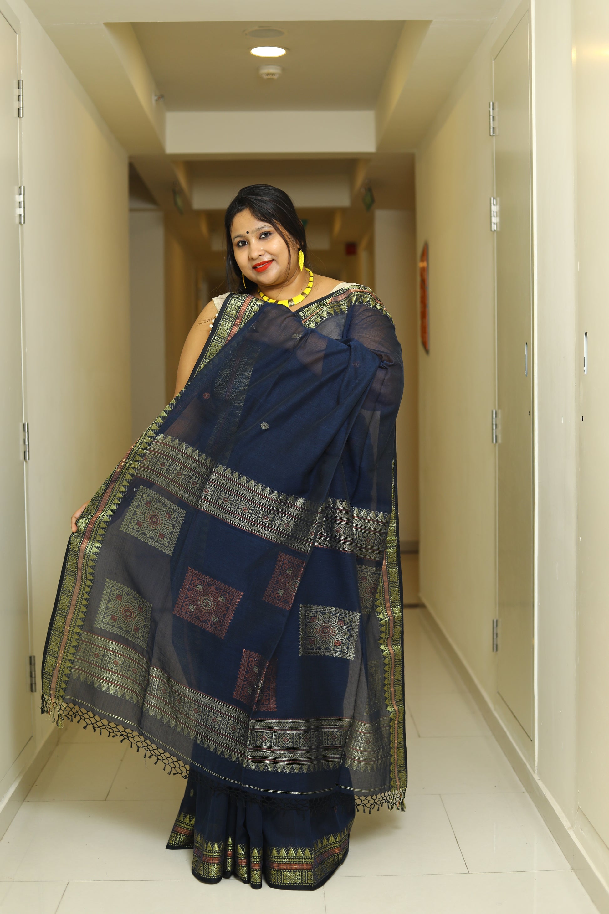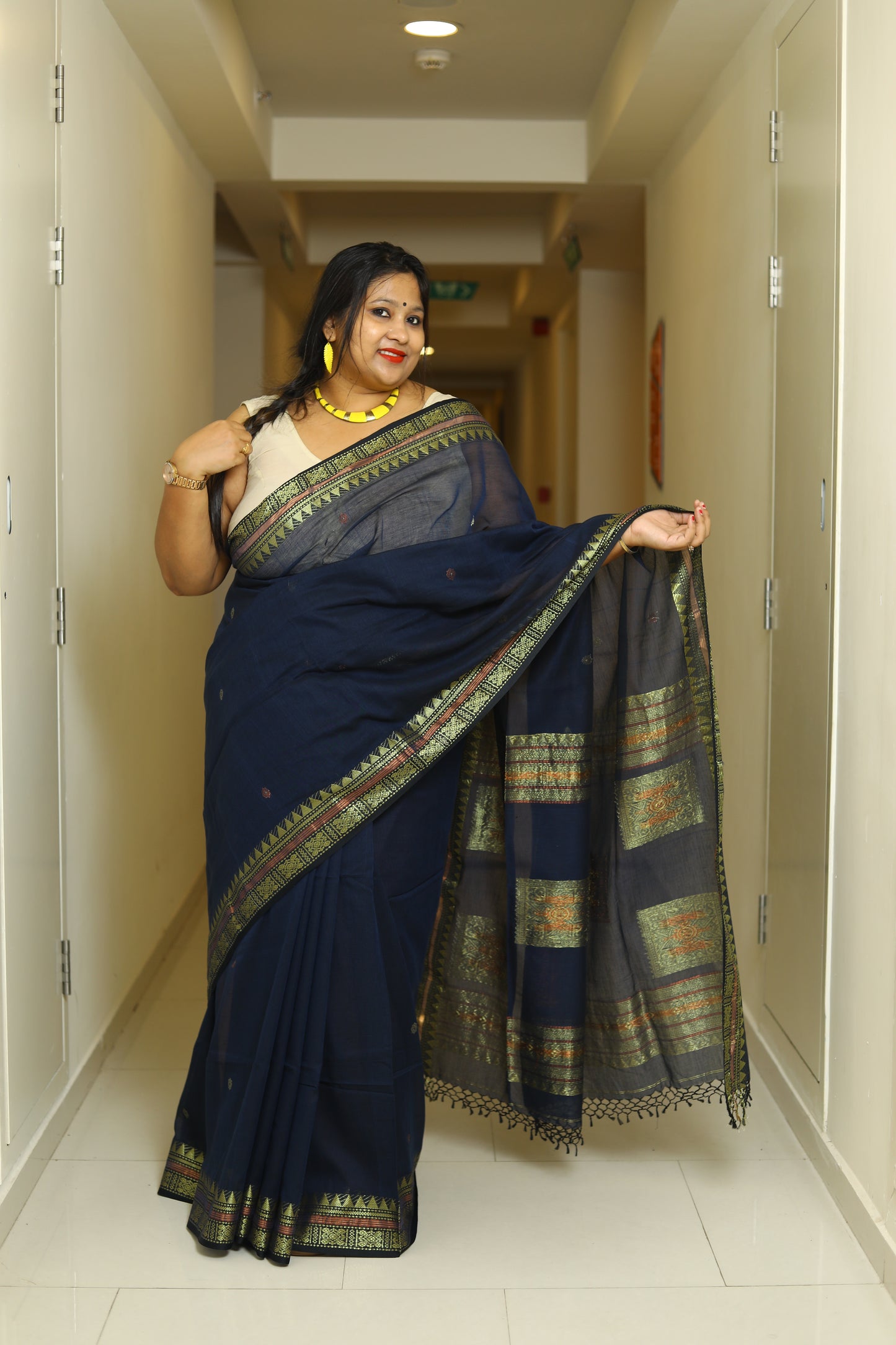 Details - Zari (Tested) work on Pure Cotton Handloomed Saree