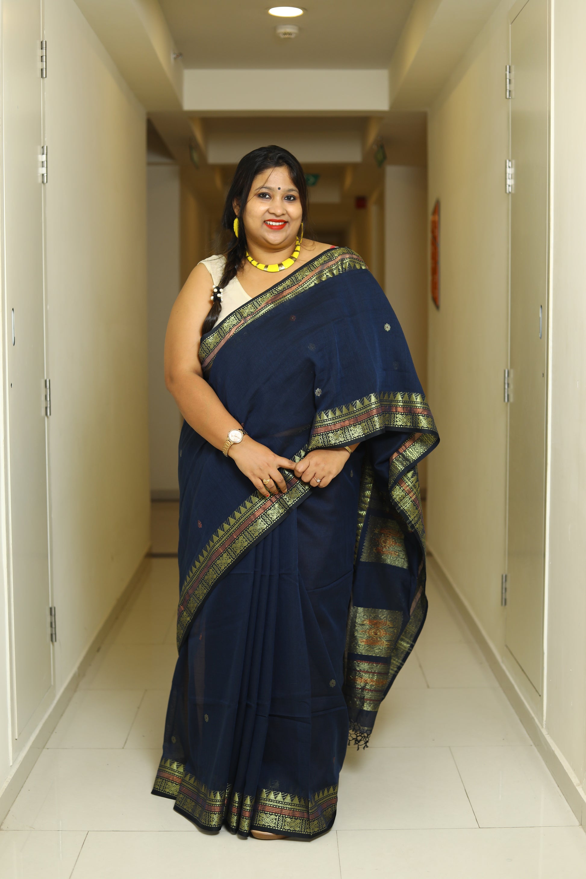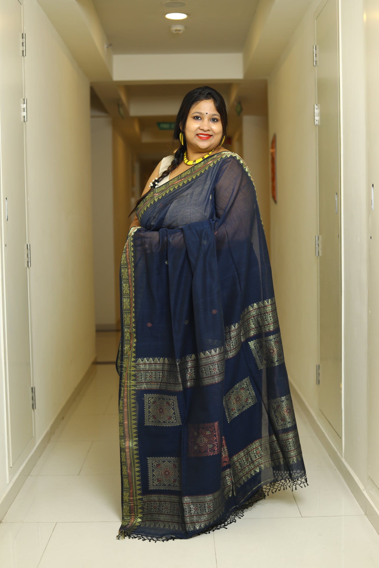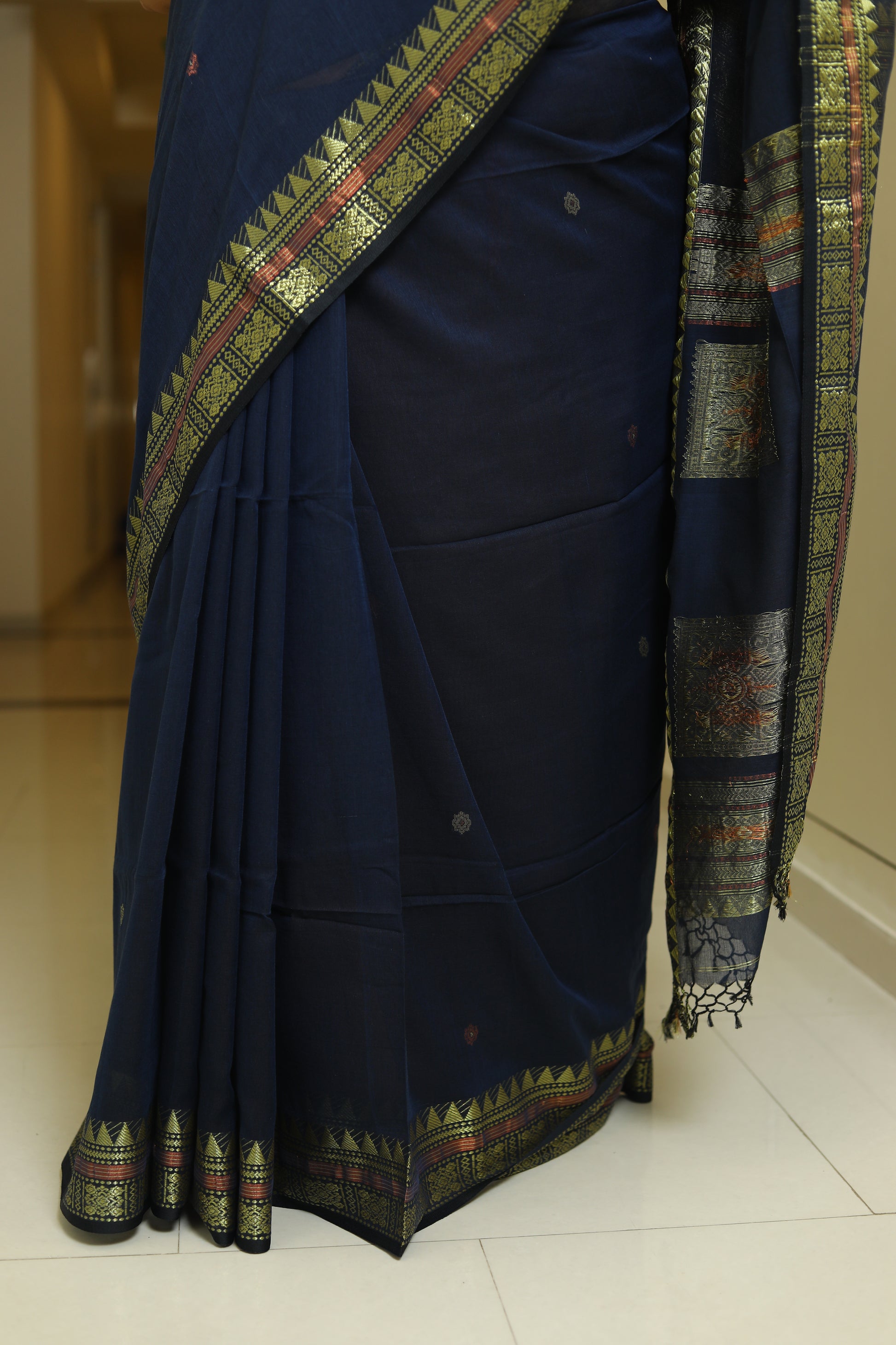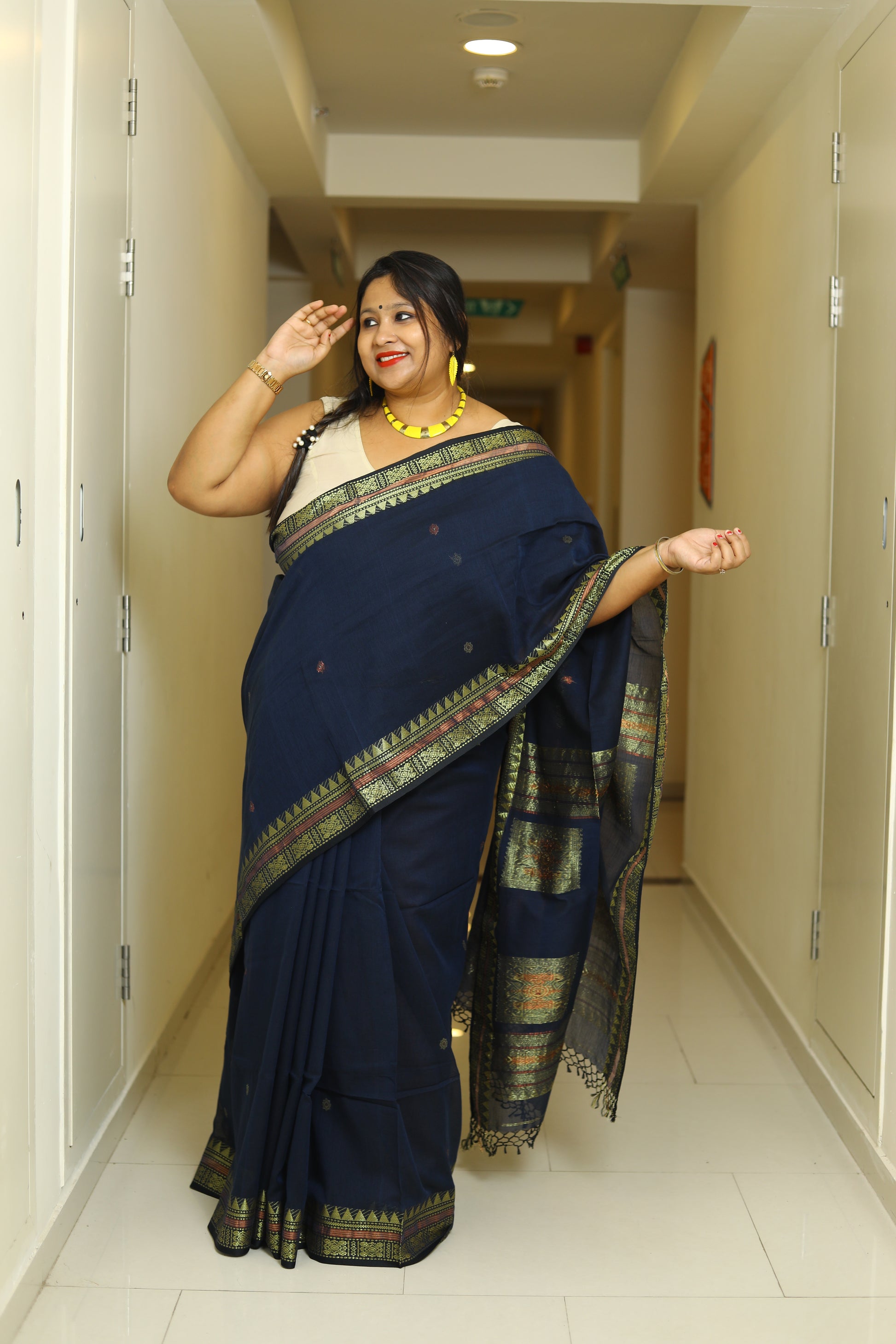 Details - Zari (Tested) work on Pure Cotton Handloomed Saree