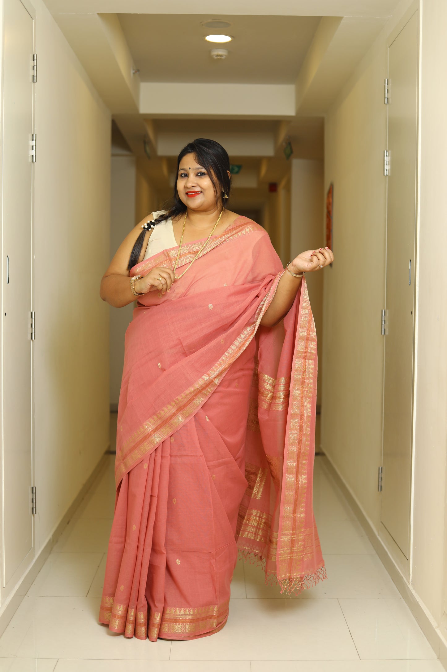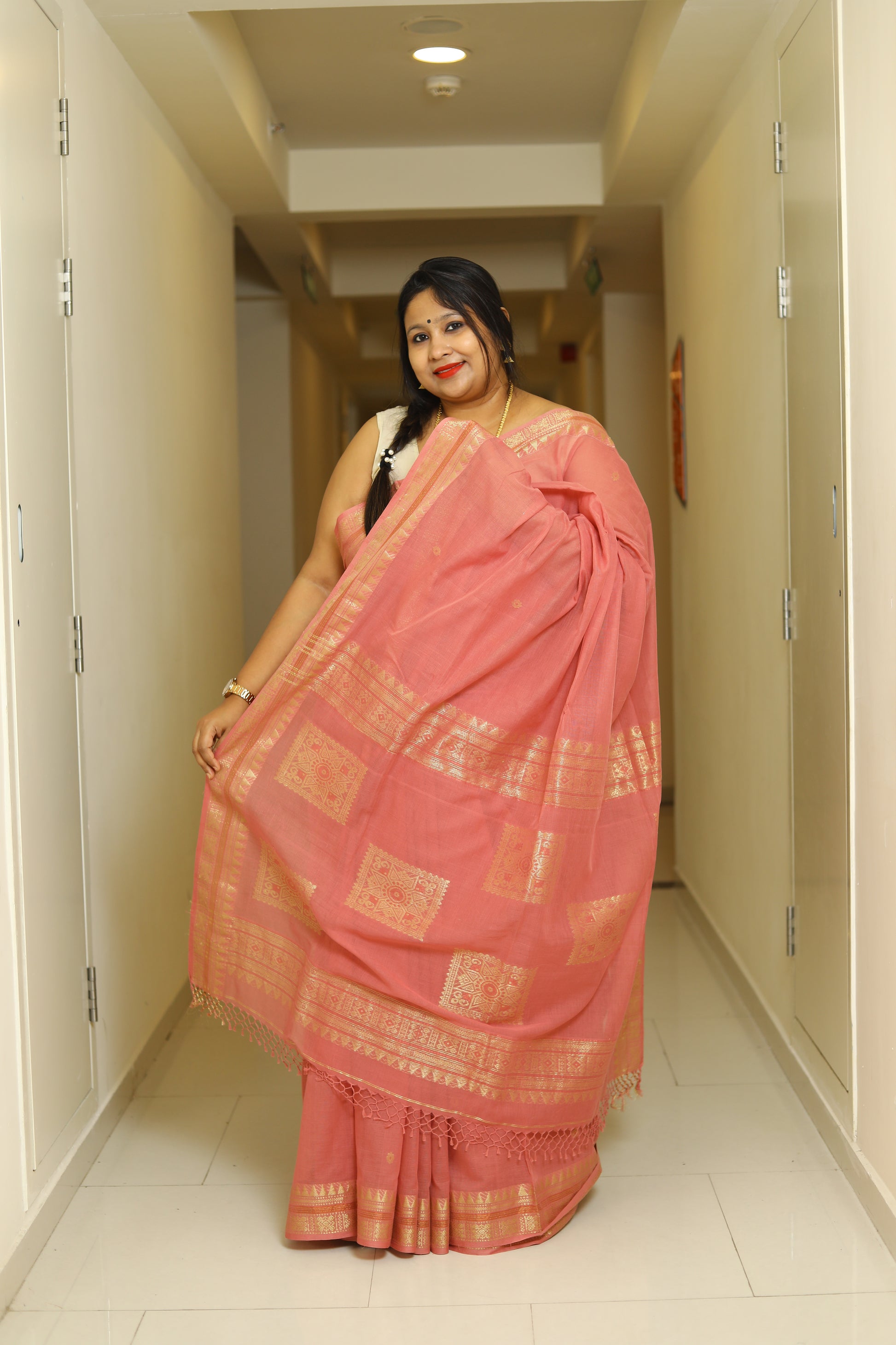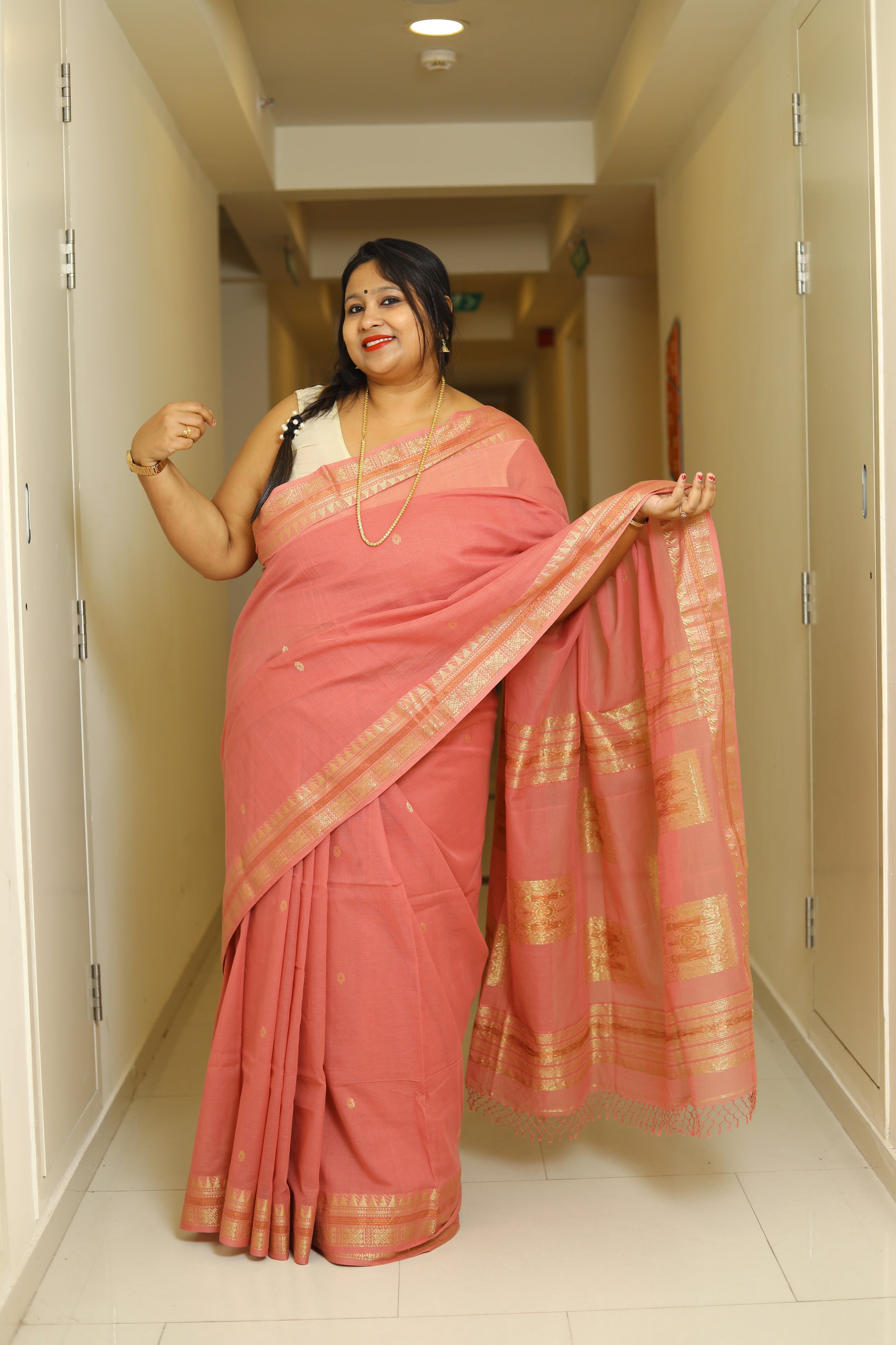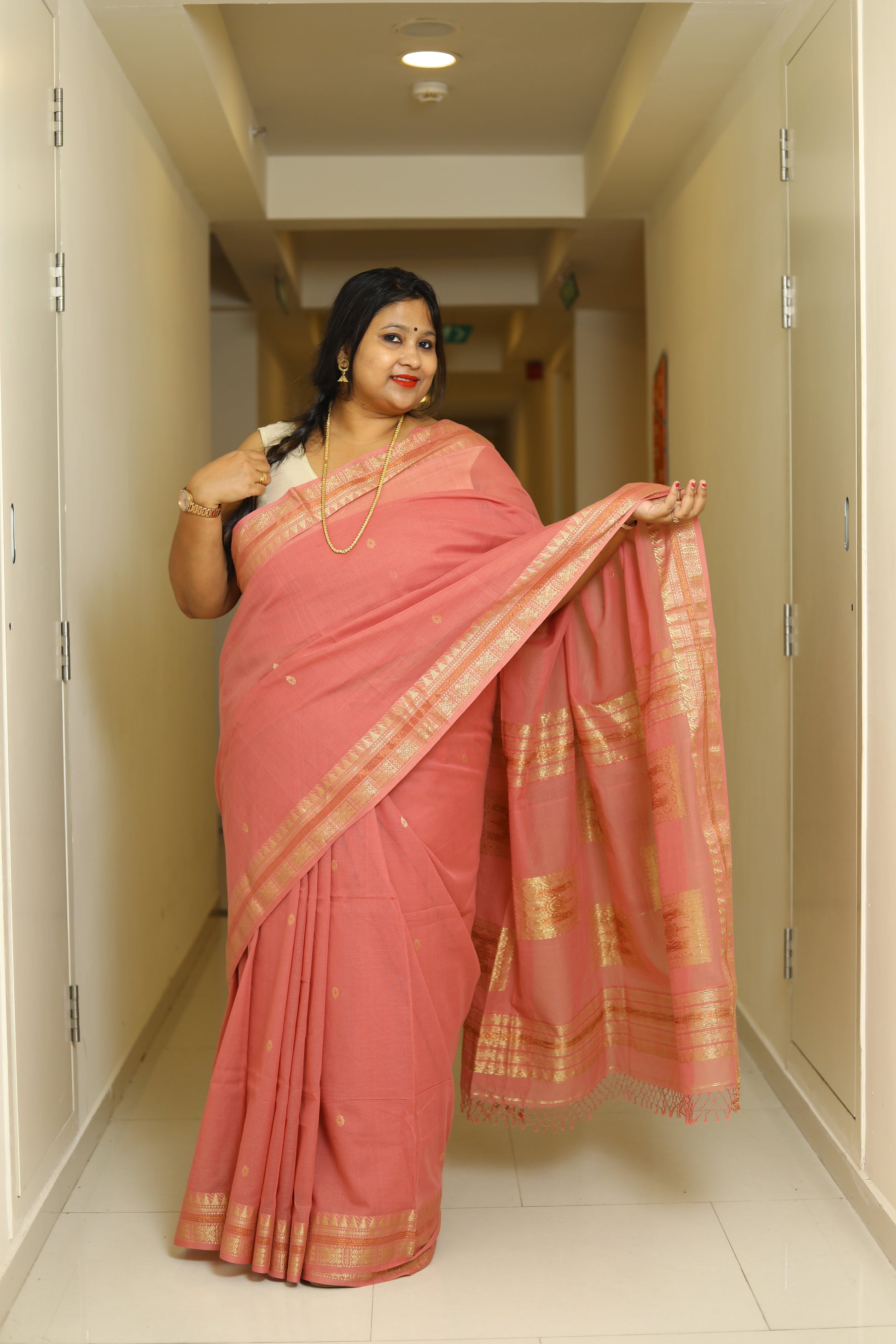 Details - Zari (Tested) work on Pure Cotton Handloomed Saree