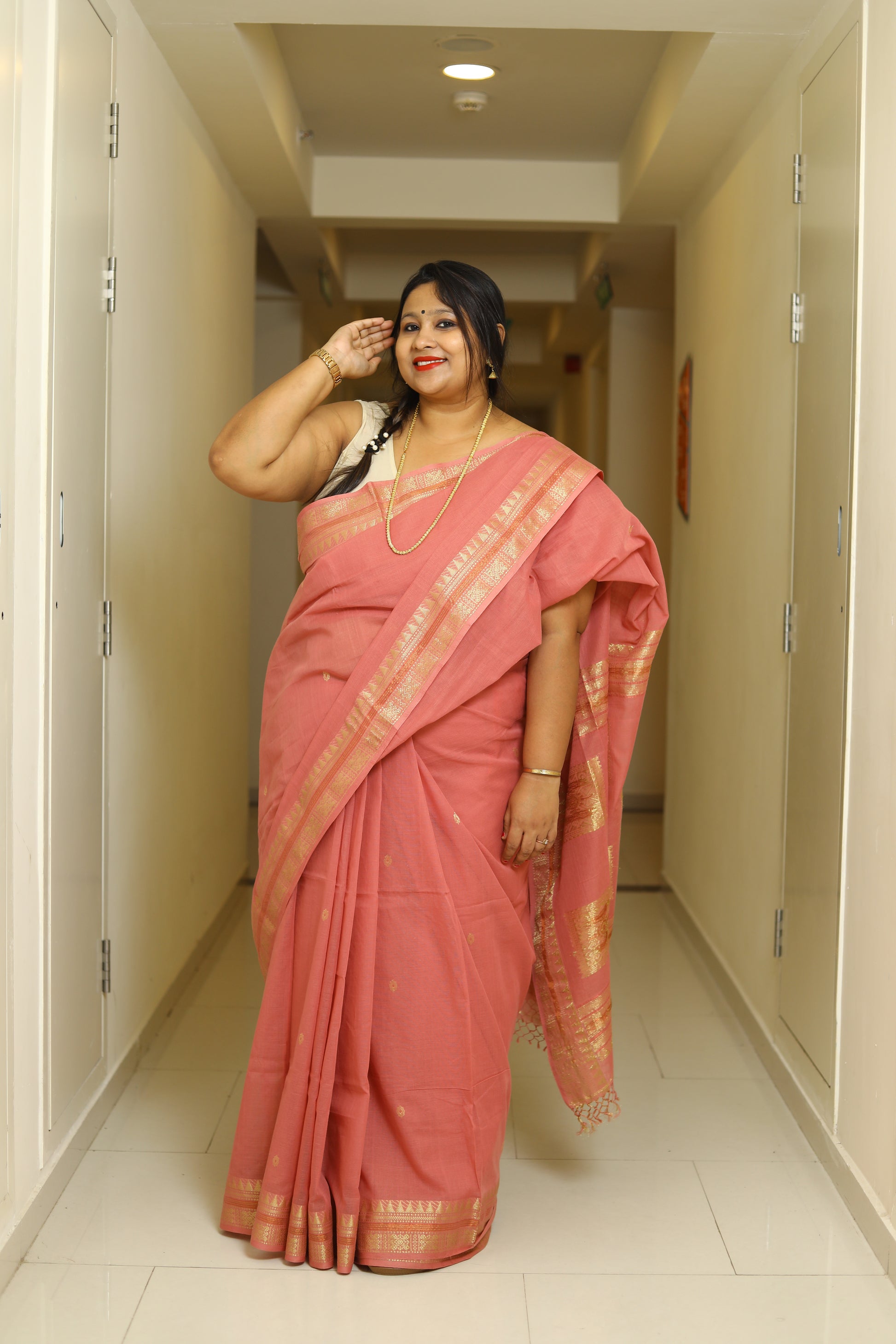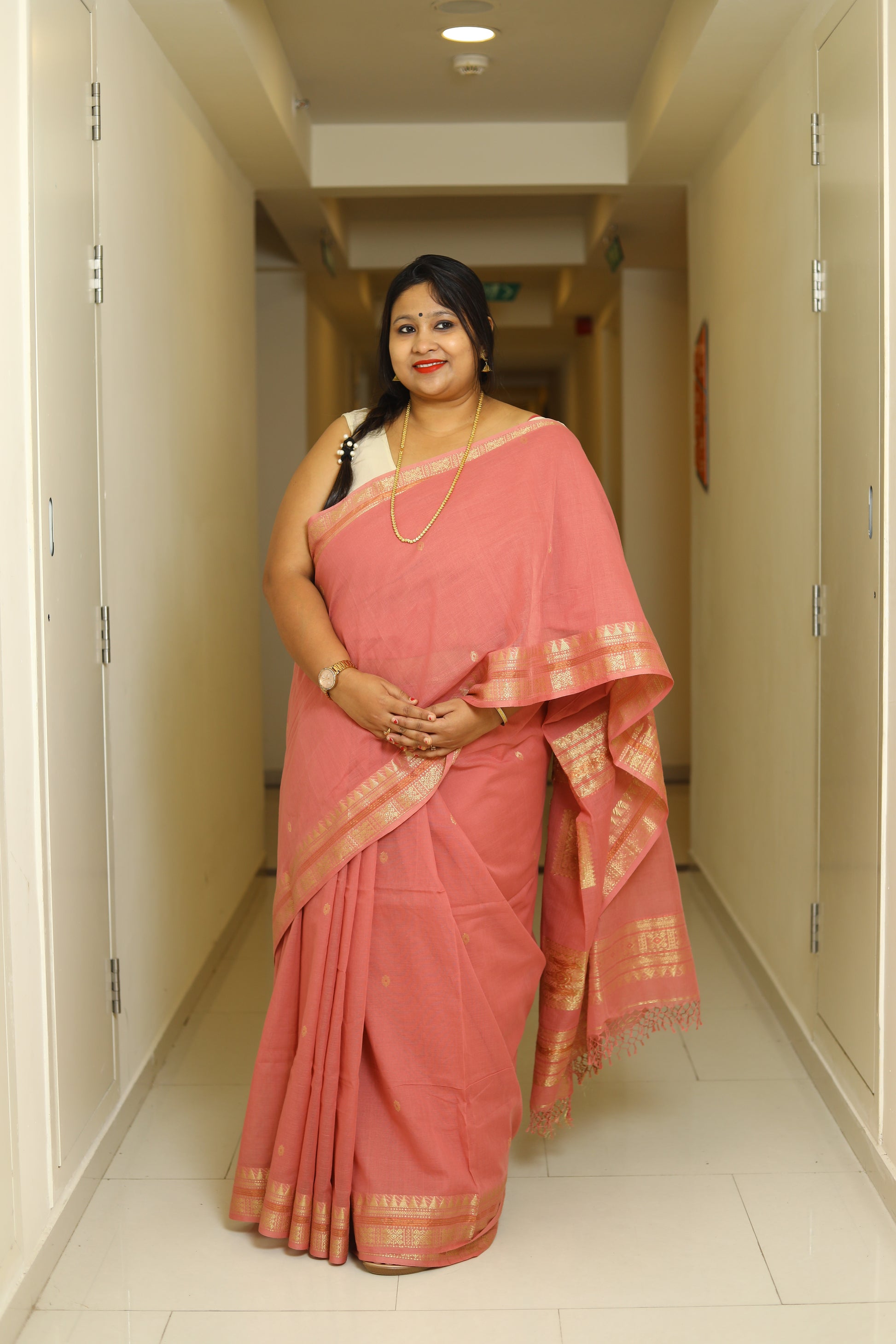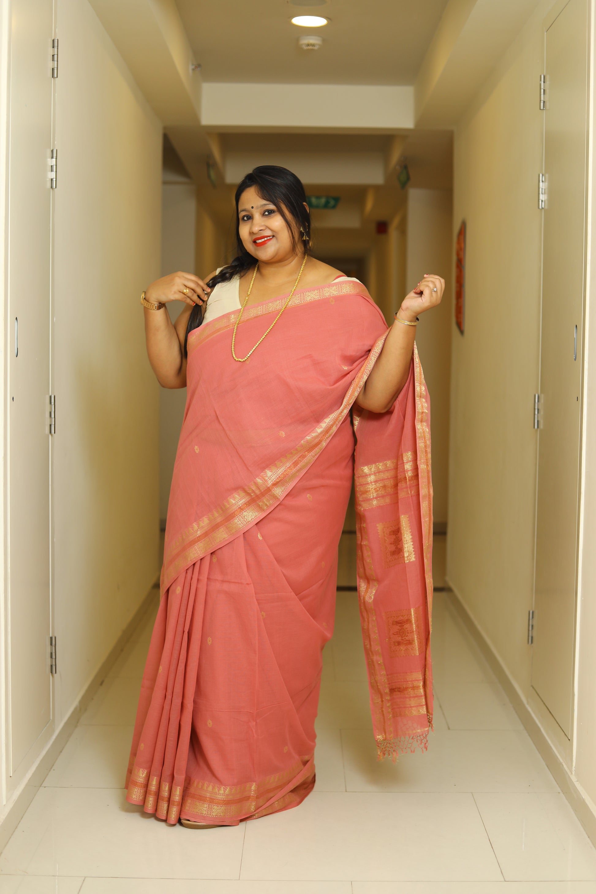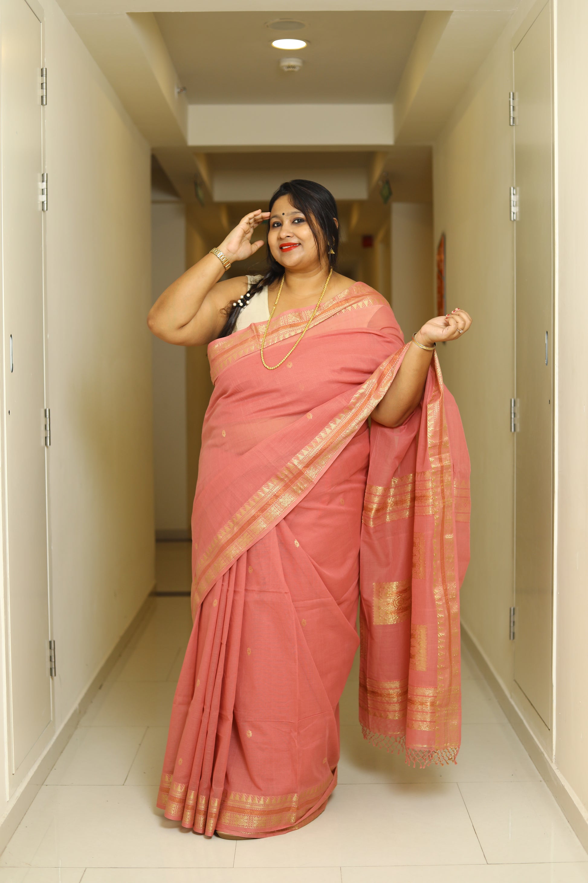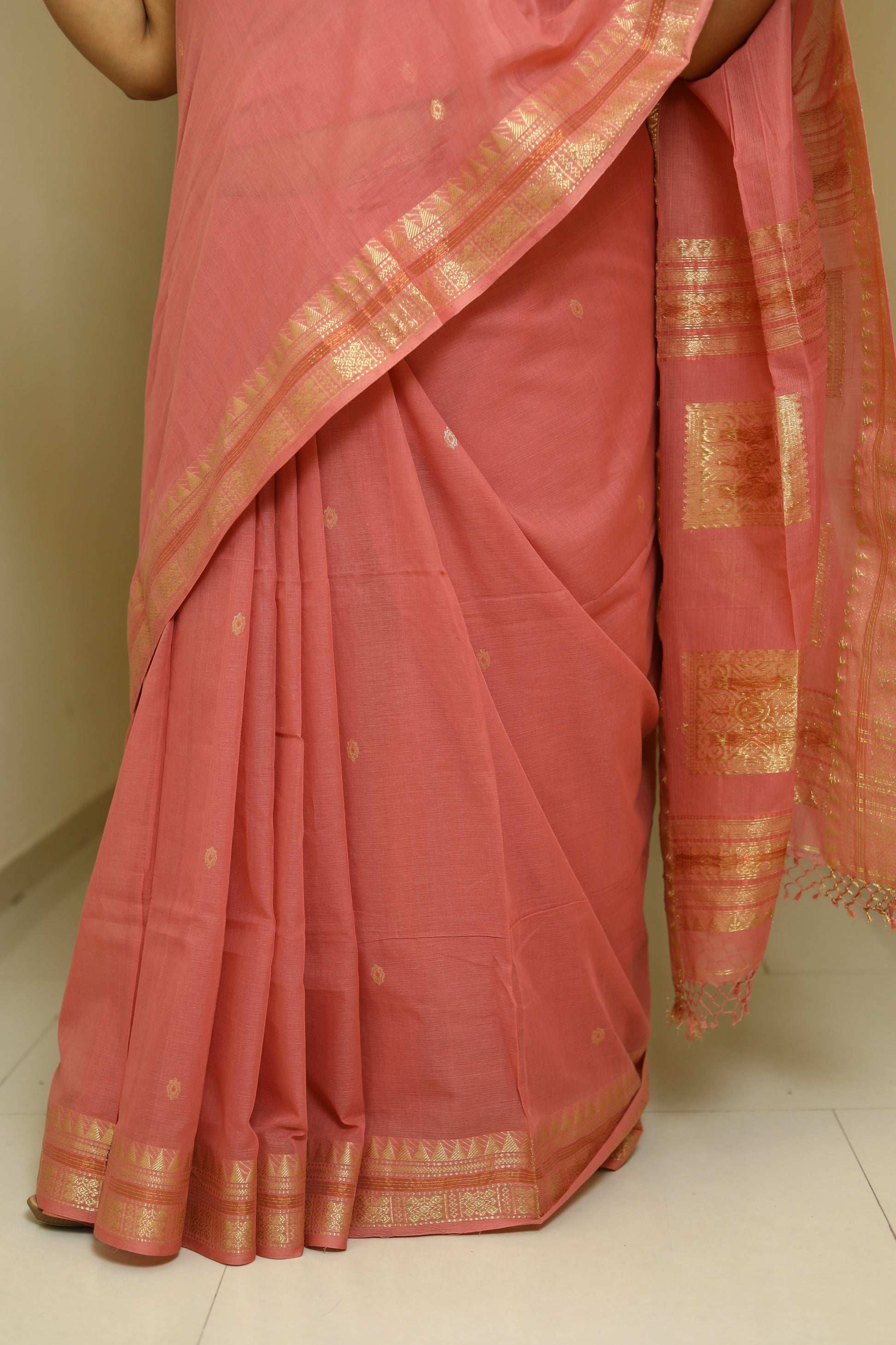 Details - Zari (Tested) work on Pure Cotton Handloomed Saree